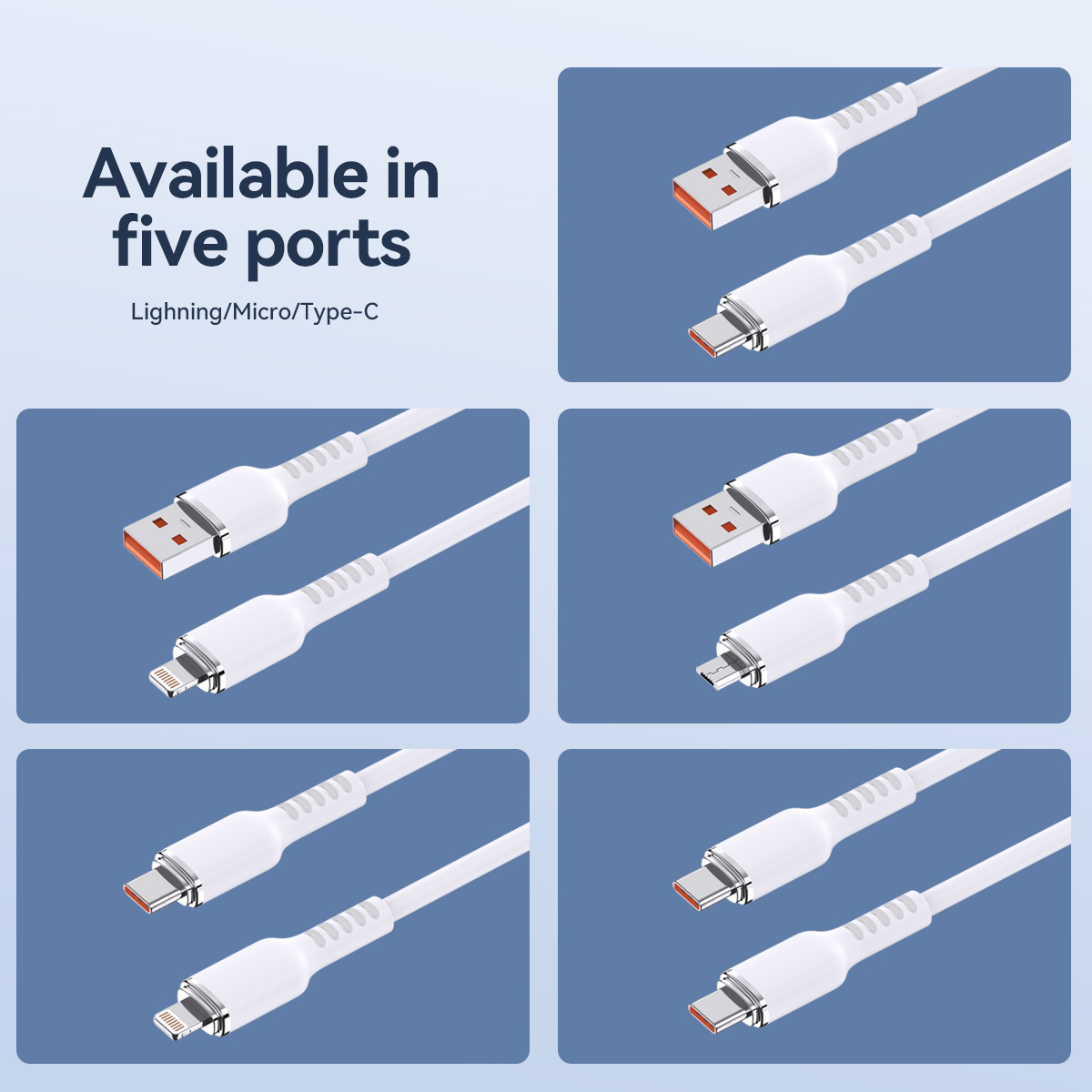 De kabel is vervaardigd uit hoogwaardig zacht siliconenmateriaal, wat zorgt voor uitstekende flexibiliteit en een comfortabele grip. Dankzij de soepele structuur raakt de kabel niet in de knoop, ideaal voor onderweg, op je bureau of in de auto. De siliconen buitenlaag is bovendien vuilafstotend, waardoor de kabel schoon blijft en er als nieuw uitziet, zelfs bij regelmatig gebruik.