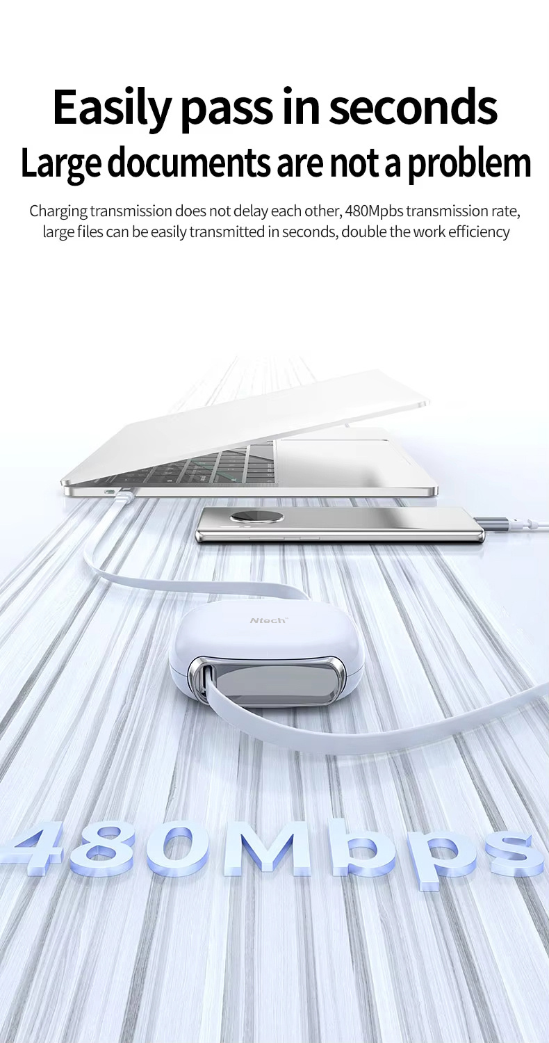 Met de Ntech 100W Intrekbare USB-C naar USB-C Kabel kies je voor snelheid, gemak en betrouwbaarheid – altijd en overal.