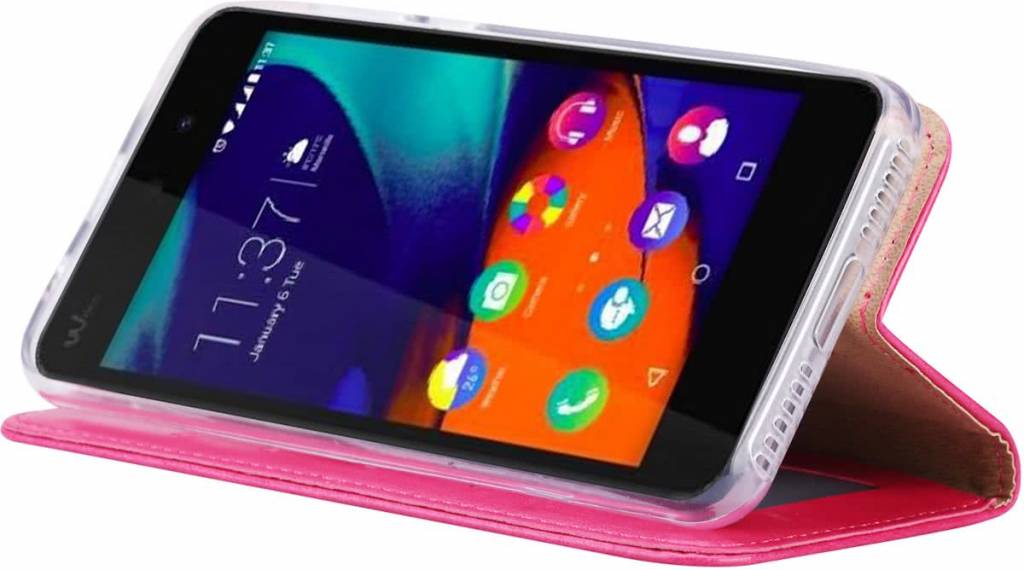 Je kunt bijvoorbeeld pasjes of briefgeld bewaren in dit boek hoesje. Dankzij de specifieke uitsparingen in dit boek hoesje (voor de camera, opladen, zijknopjes) kan je van jouw Wiko Lenny 4 blijven genieten zonder dat de toestel uit het boek hoesje gehaald hoeft te worden. Dit boek hoesje maakt het mogelijk om jouw v in horizontale stand neer te leggen om bijvoorbeeld een filmpje te kunnen kijken. Doordat er openingen aan de voorzijde in dit boek hoesje book case van jouw Wiko Lenny 4 zitten, kan je met het hoesje gesloten bellen als je het gesprek hebt aangenomen.