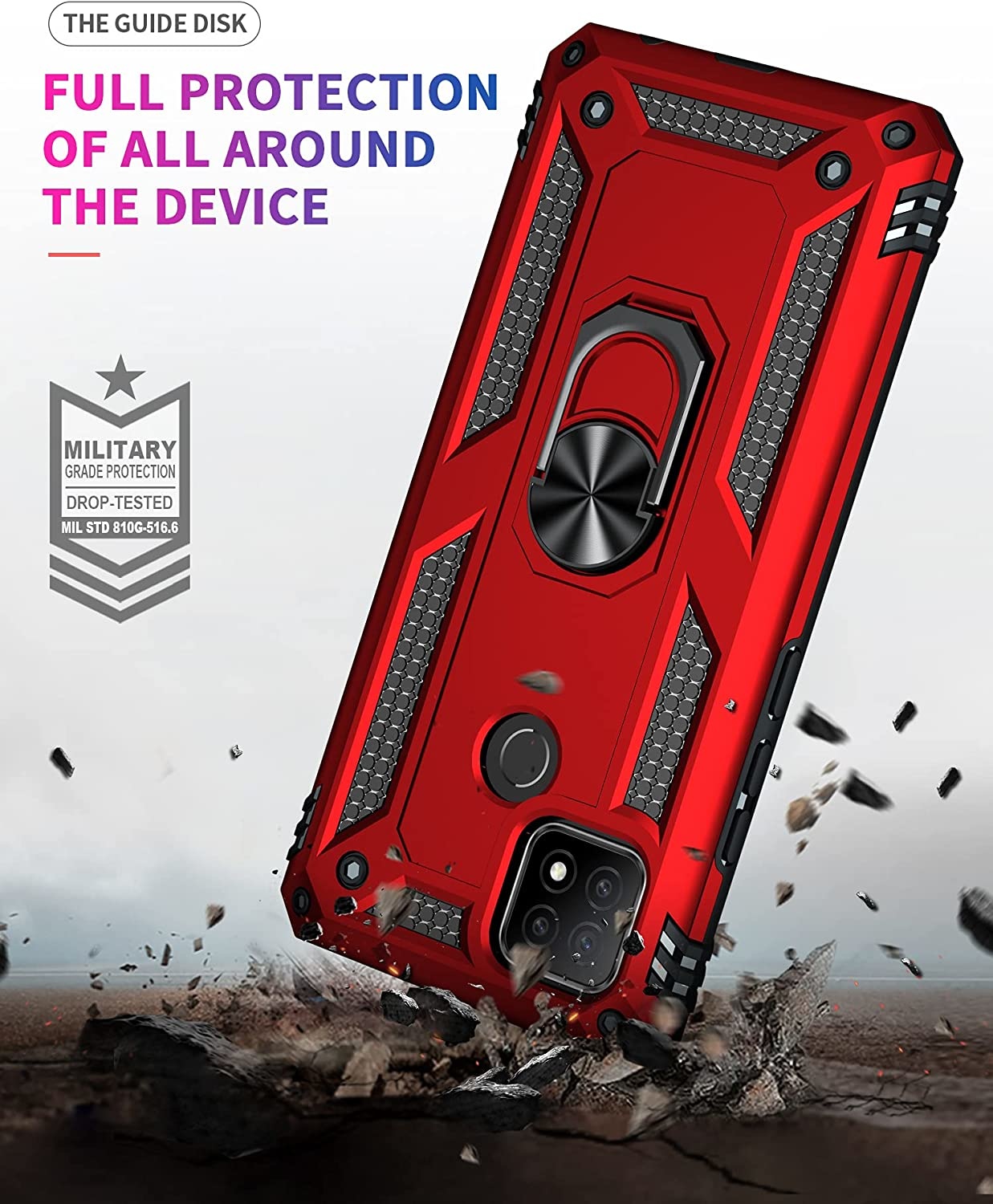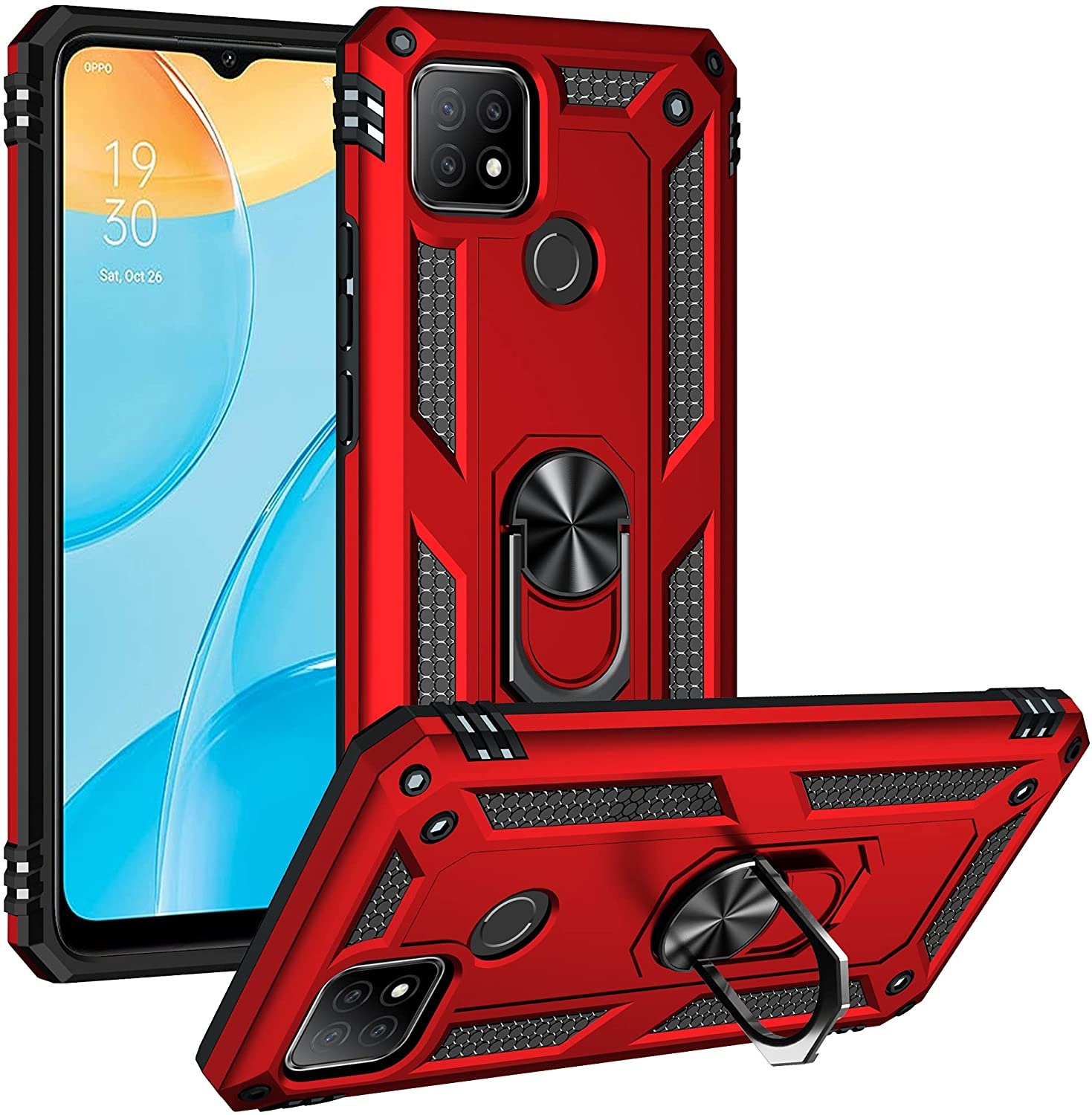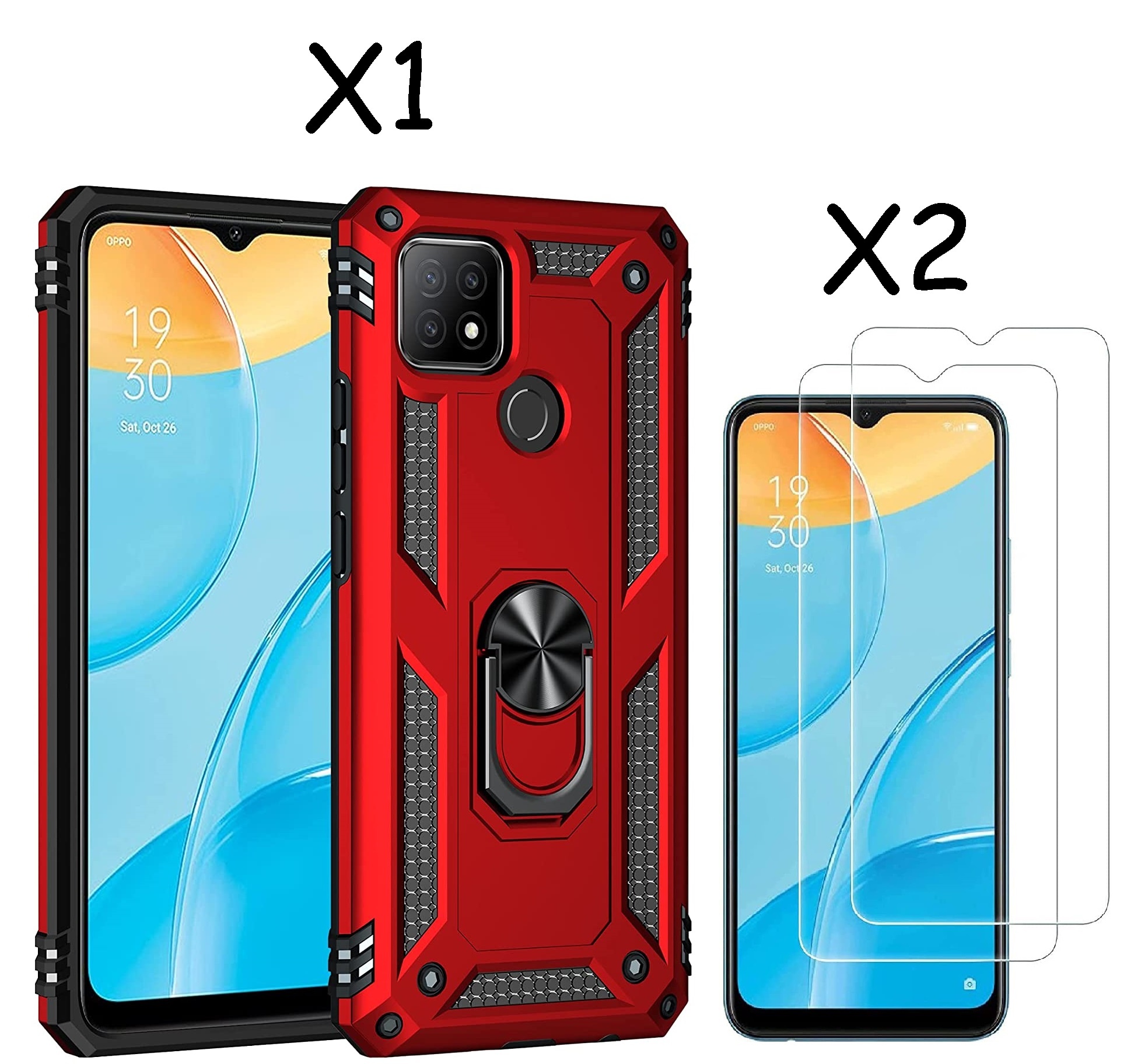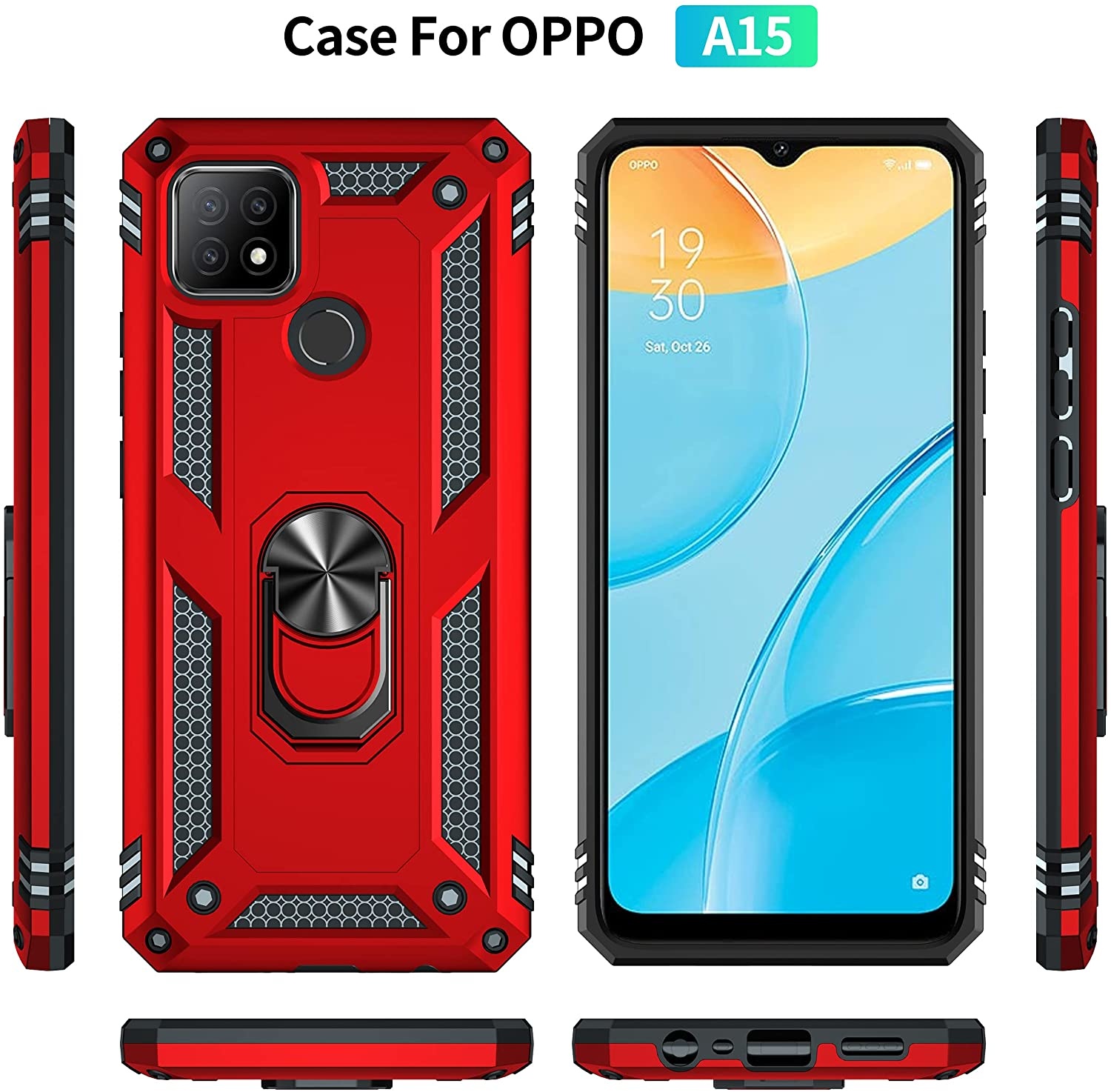 Oppo A15 Hoesje armor Met ring houder Rood - Oppo A15s hoesje / Oppo A35 2021 hoesje met Kickstand TPU backcover hoesje - Oppo A15 / A15s screenprotector 2 pack