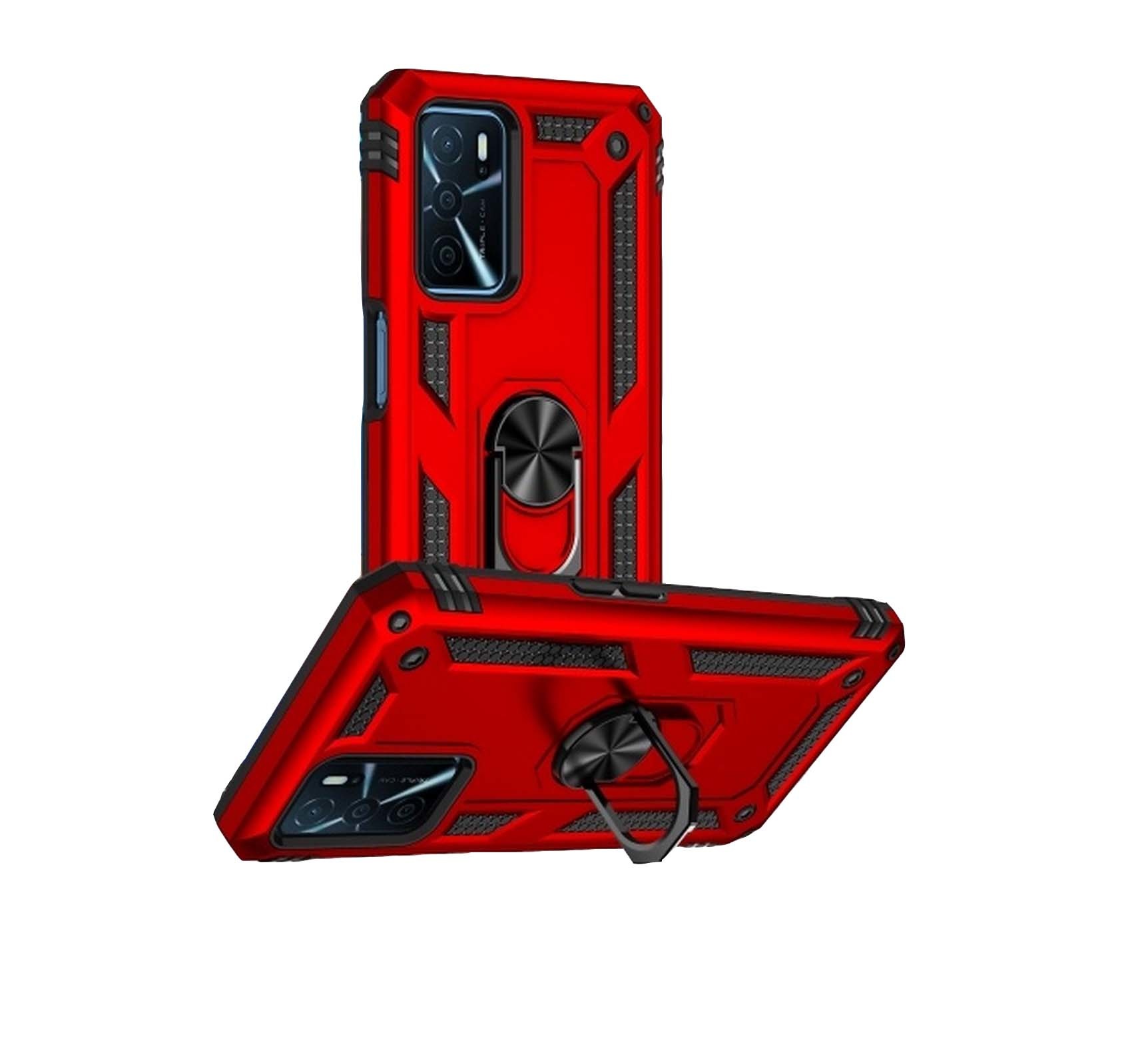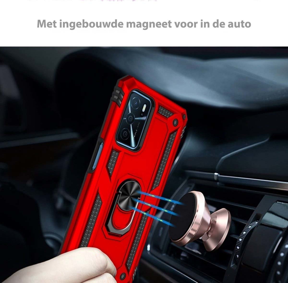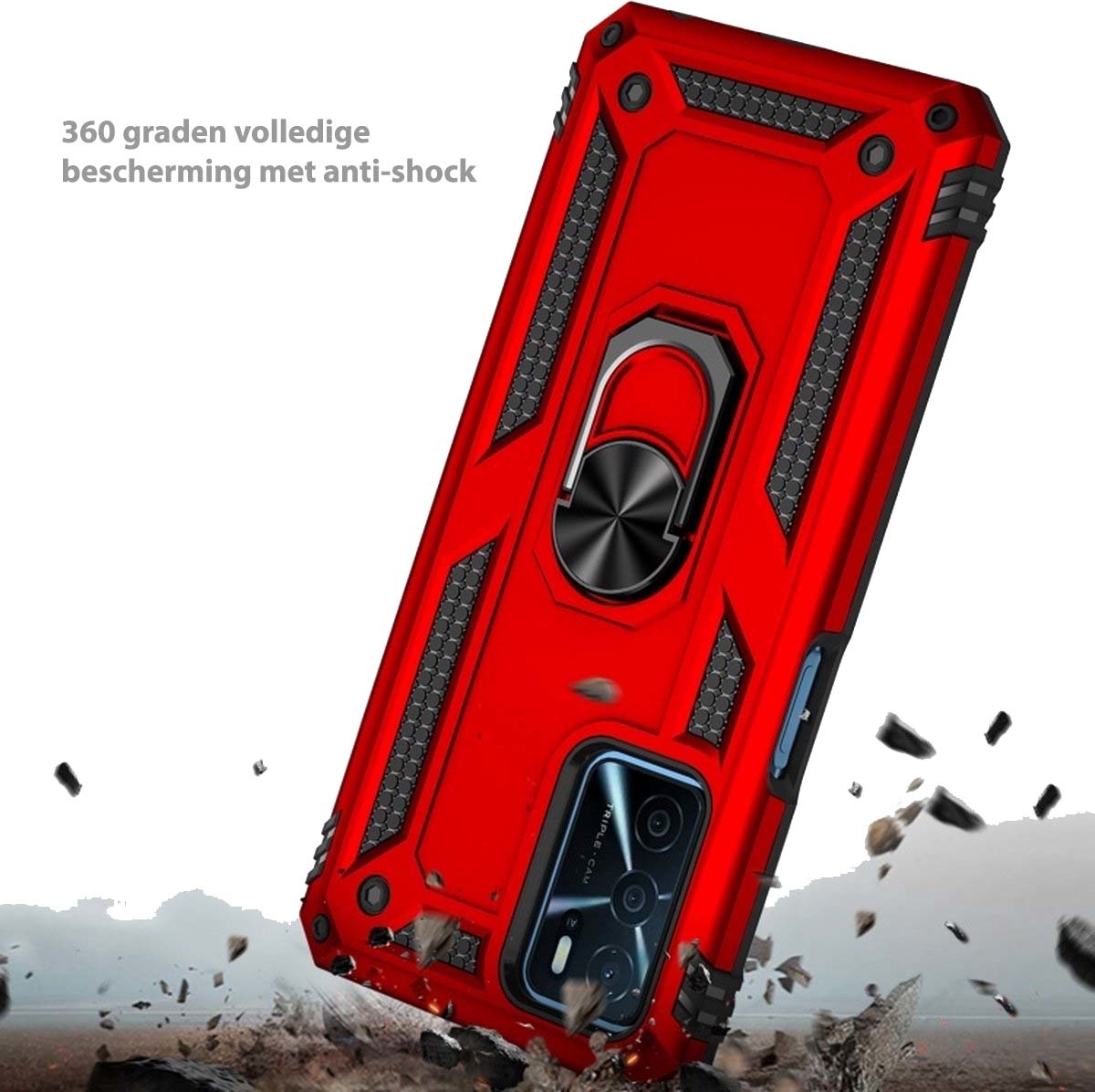 Geschikt Voor Oppo A16 Hoesje Armor Anti-shock Backcover Rood - Geschikt Voor Oppo A16 - A16 Backcover kickstand Ring houder cover TPU backcover oTronica