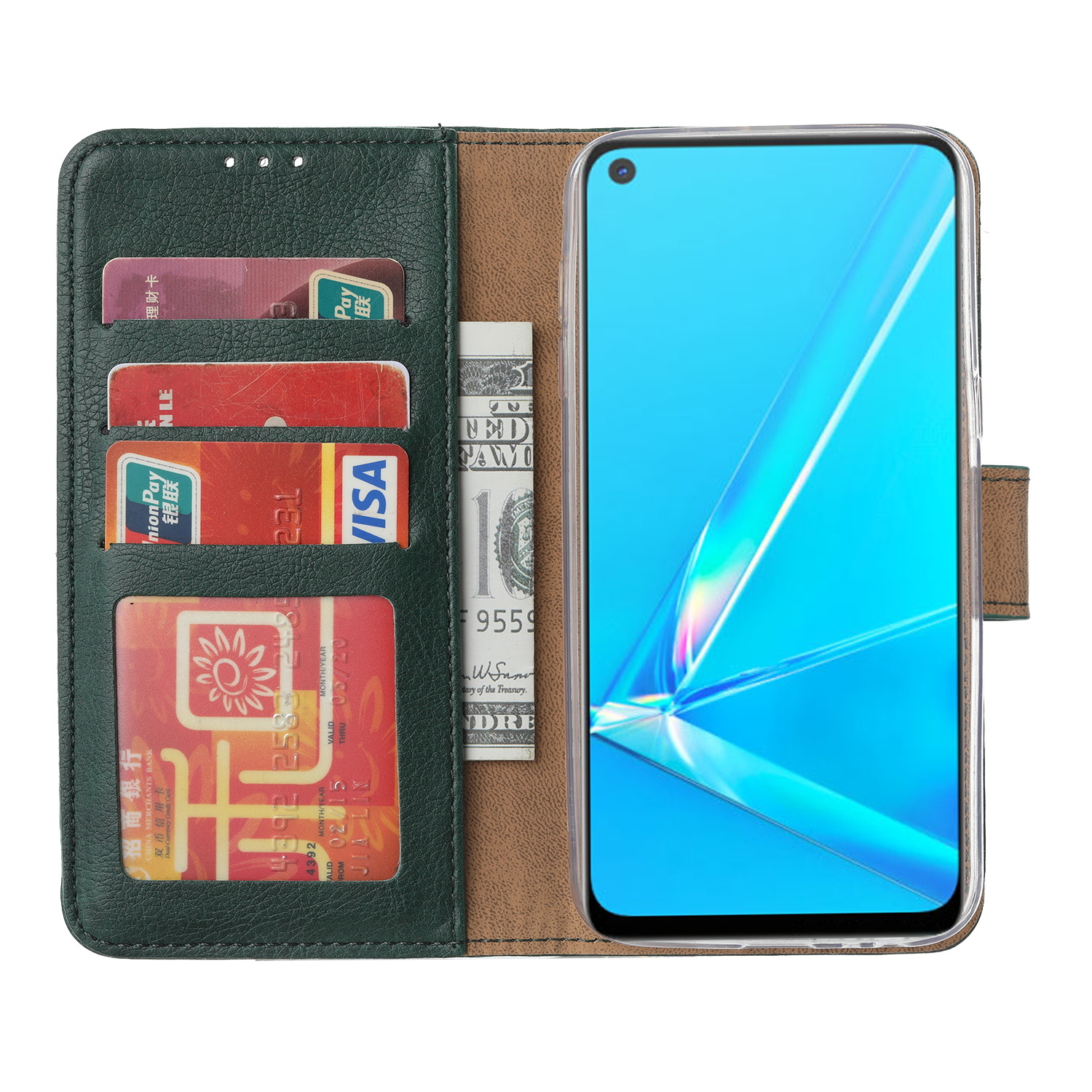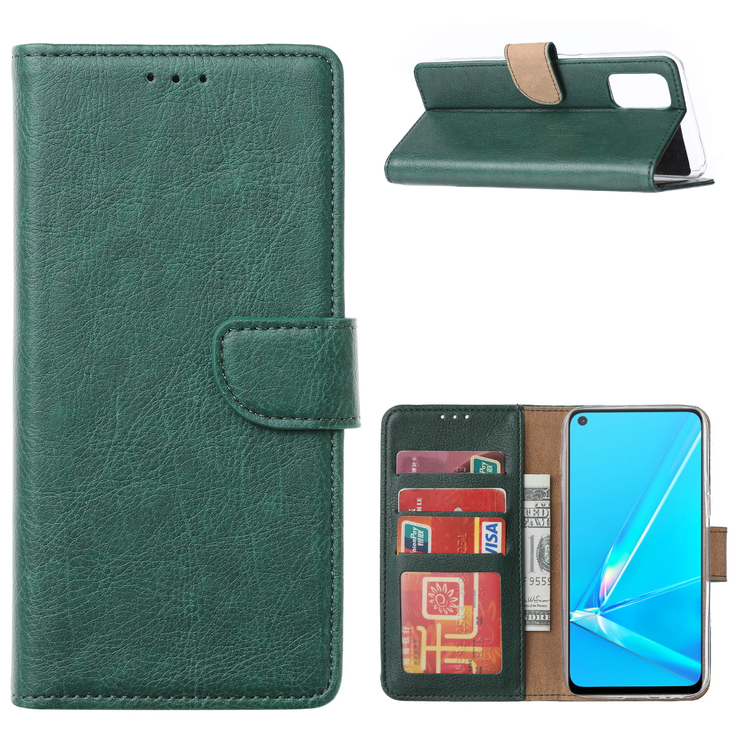Hoesje Geschikt voor Oppo Reno 4 Hoesje met Pasjeshouder booktype case Groen