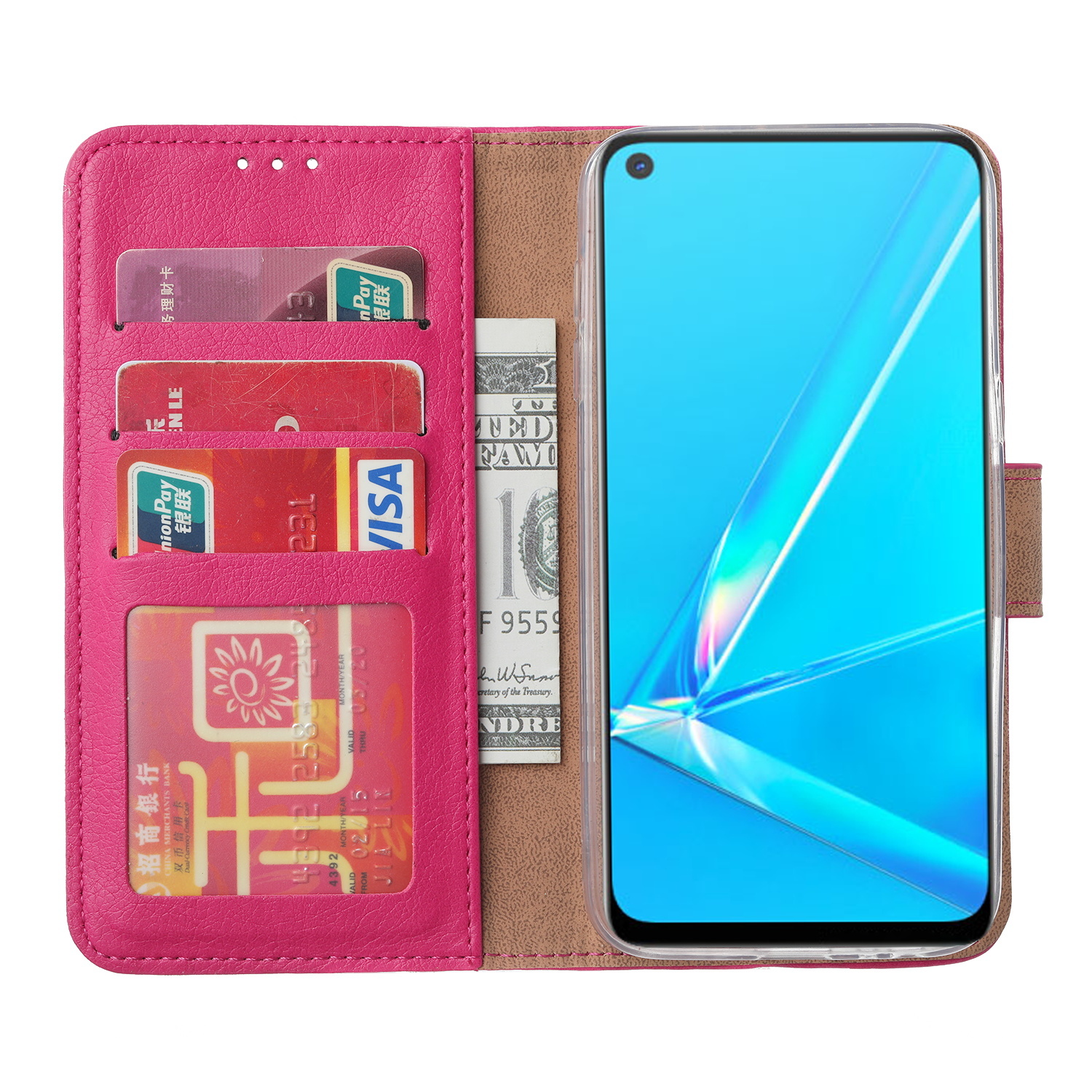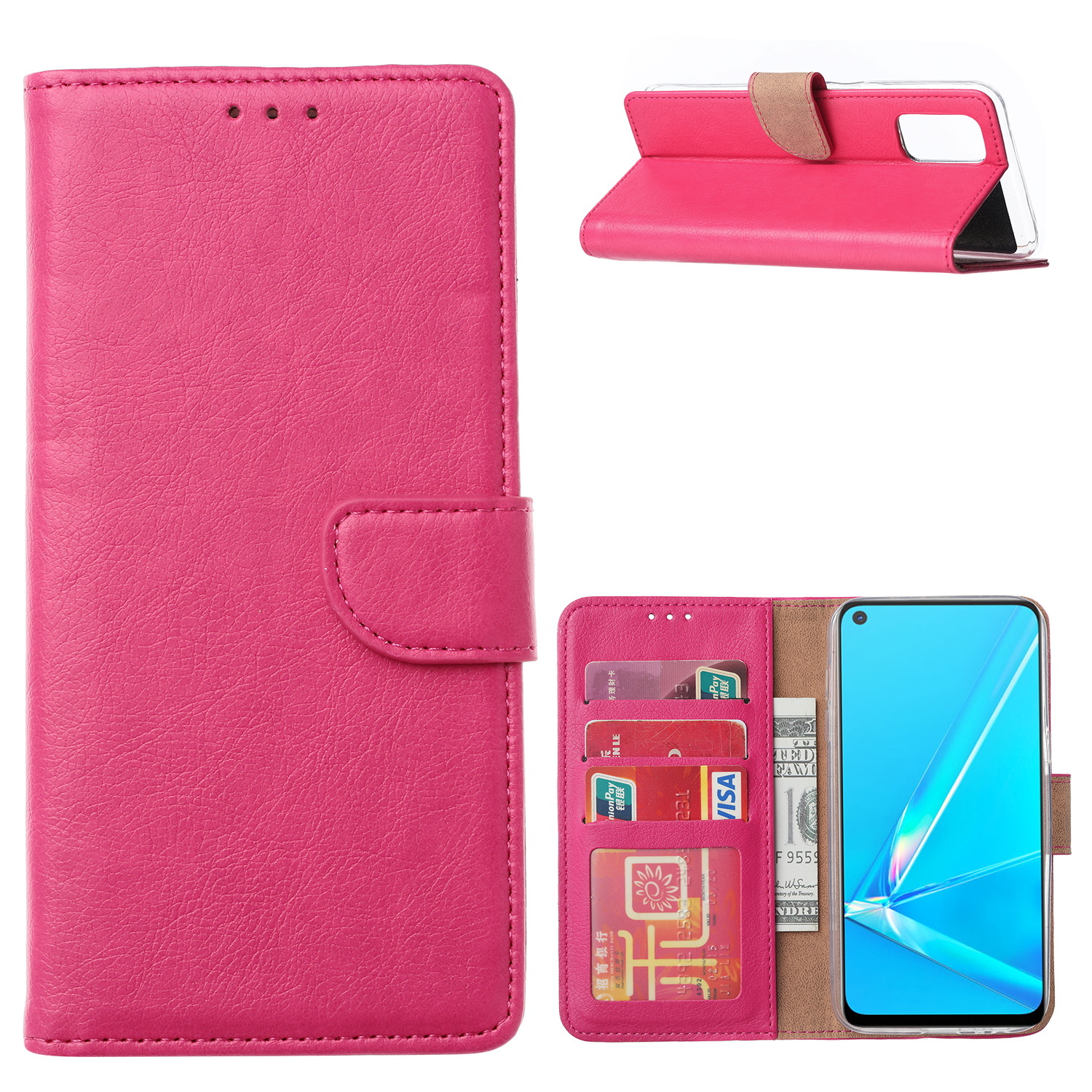 Hoesje Geschikt voor Oppo Reno 4 Hoesje met Pasjeshouder booktype case Pink