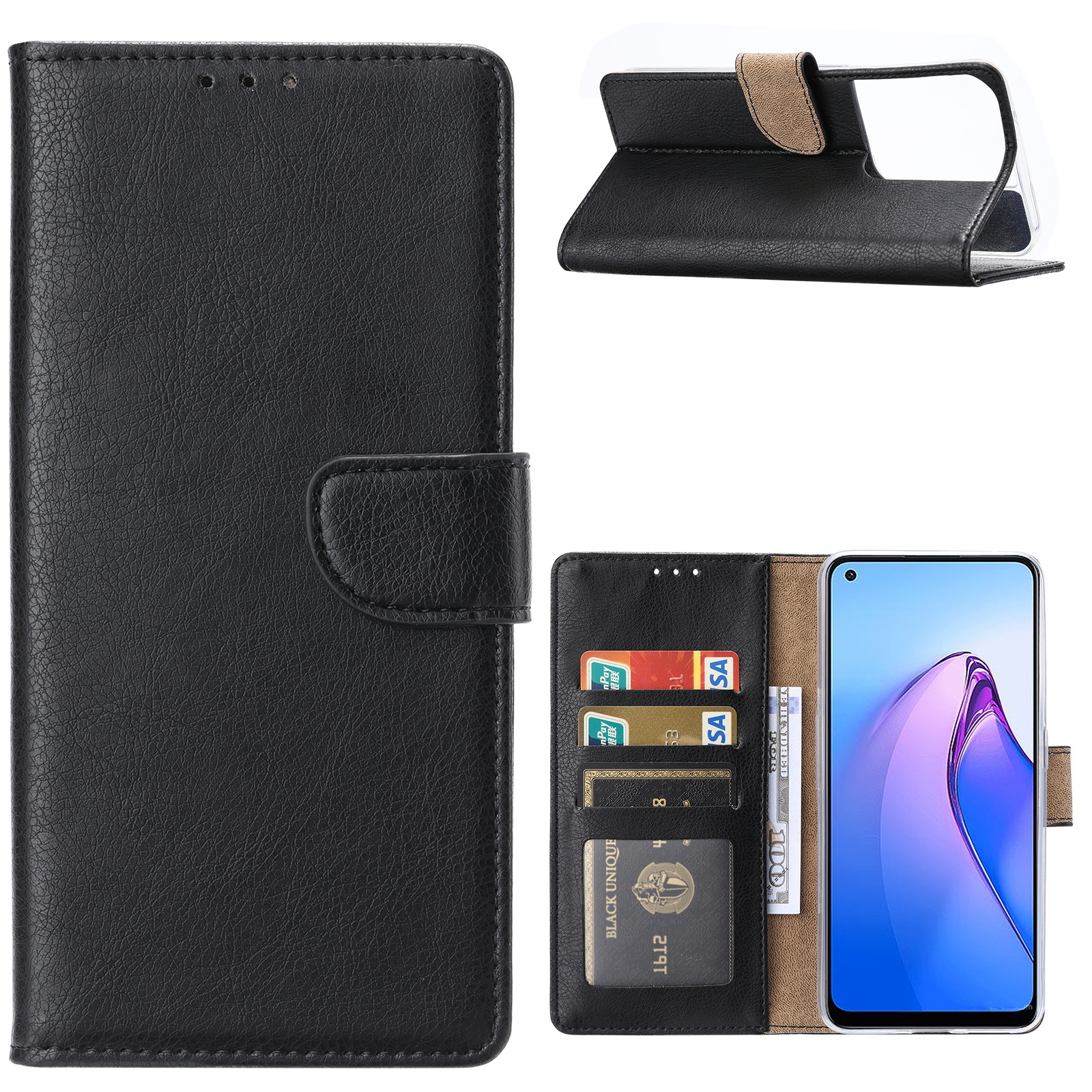 Hoesje Geschikt voor Oppo Reno 8 Hoesje met Pasjeshouder Zwart - Hoesje Geschikt voor Oppo Reno 8 hoesje Luxe Booktype Portemonnee case