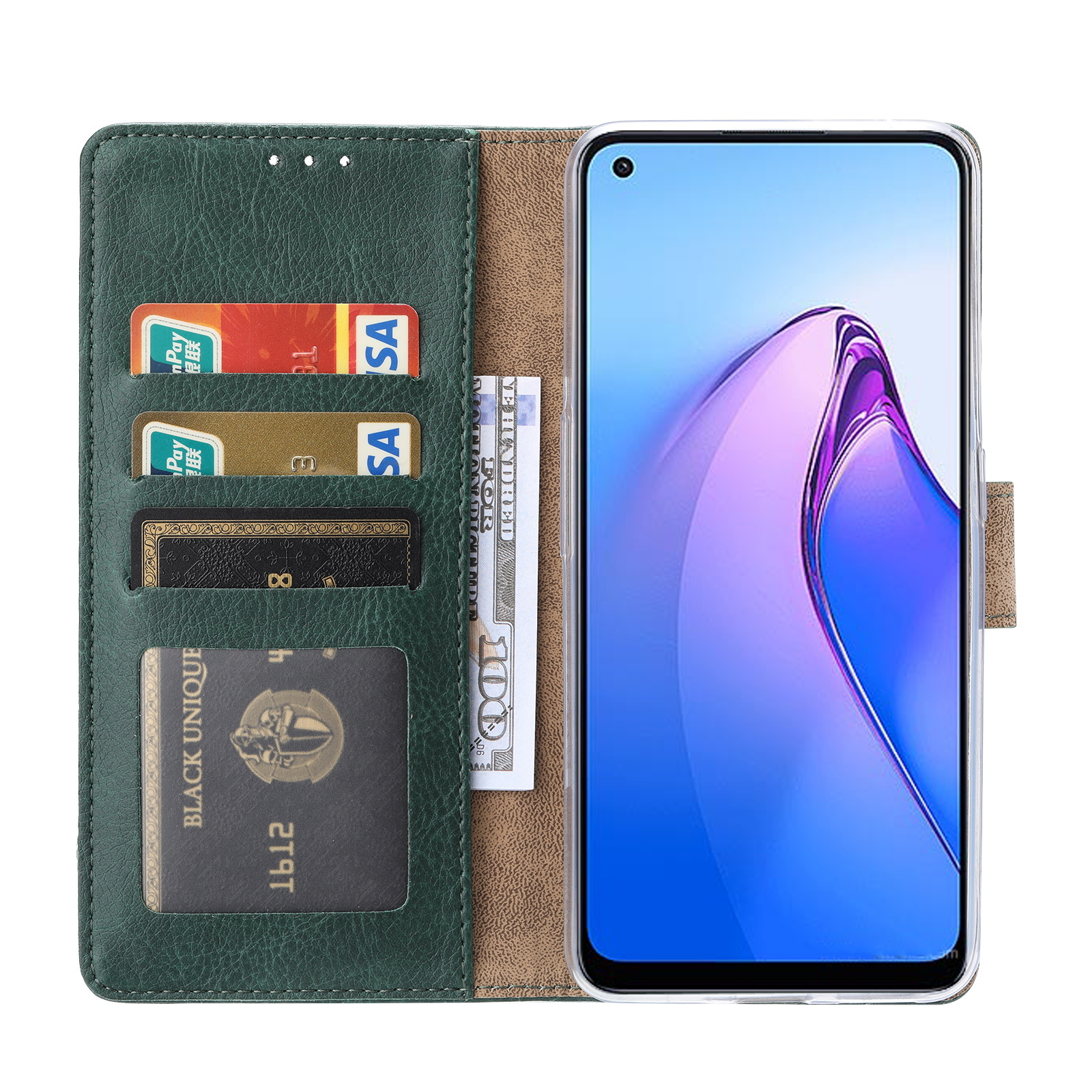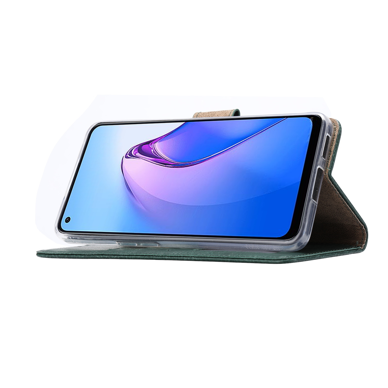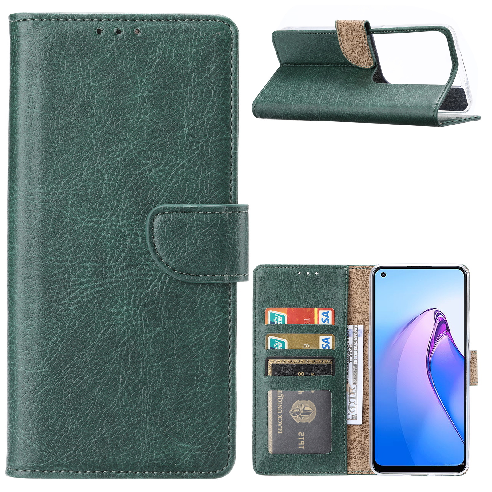 Hoesje Geschikt voor Oppo Reno 8 Pro Plus Hoesje met Pasjeshouder Groen - Hoesje Geschikt voor Oppo Reno 8 Pro+ hoesje Luxe Booktype Portemonnee case