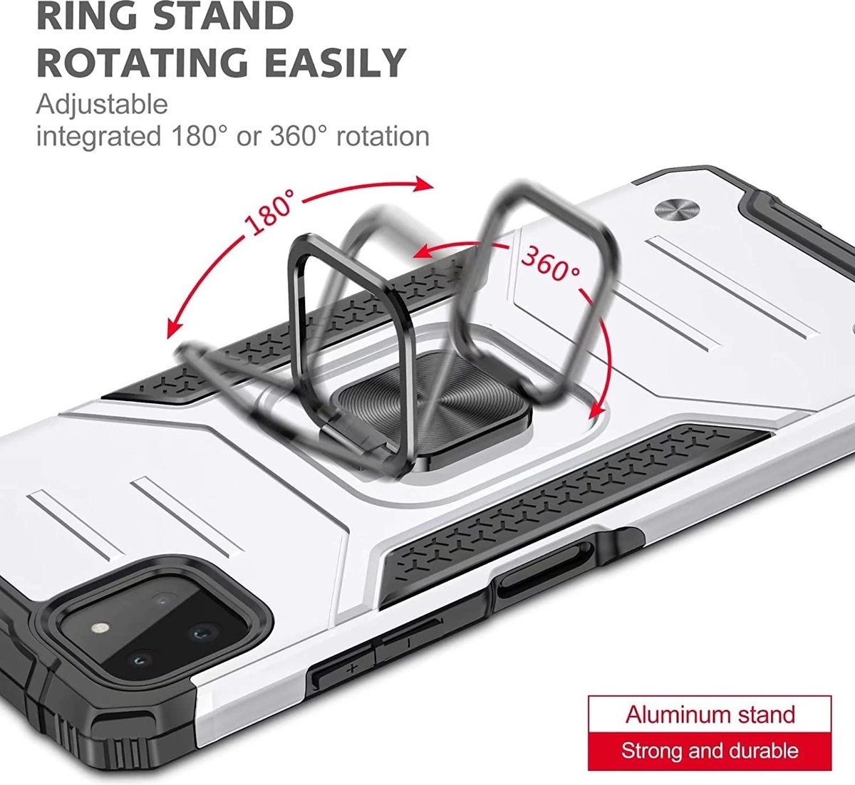 oTronica Armor Backcover Hoesje Geschikt Voor Samsung Galaxy A03S met Ringhouder - Zilver