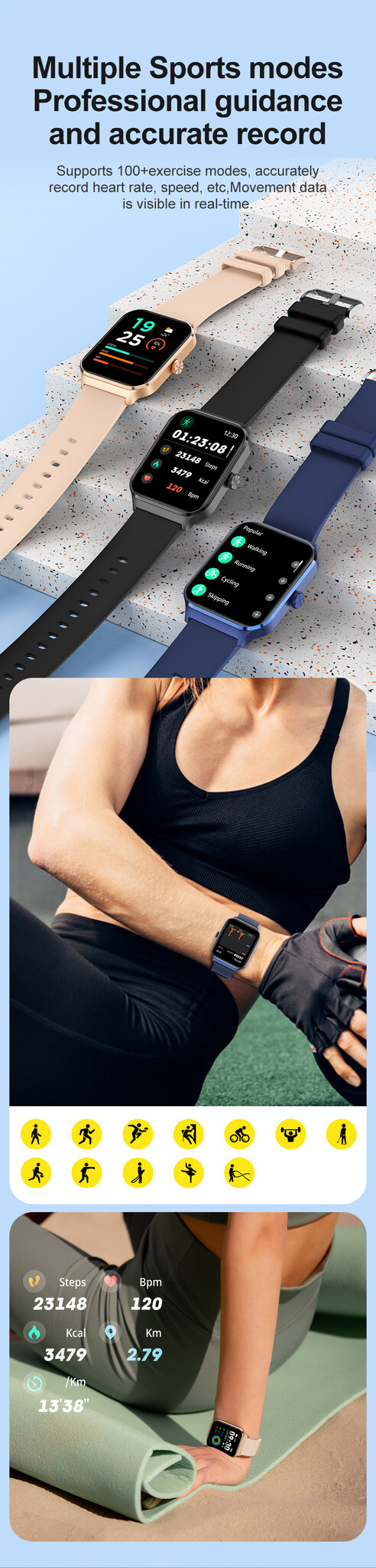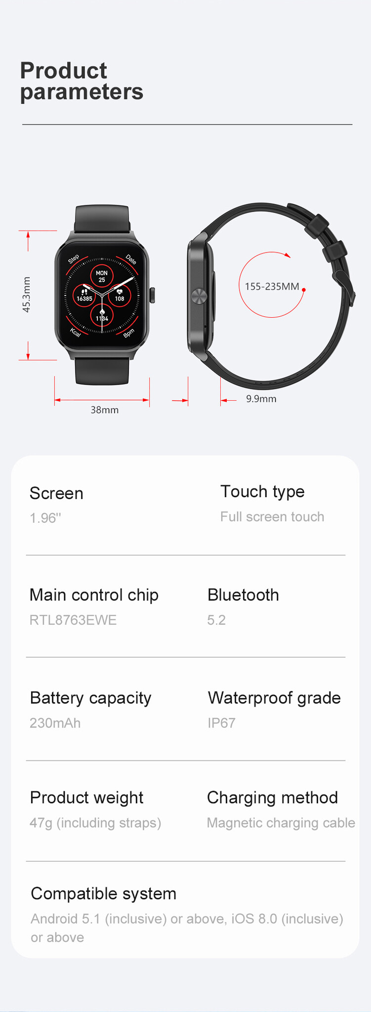 1.96”HD Screen | 100+ Sports Modes | Ultra Slim Design / Waterproof level: IP67