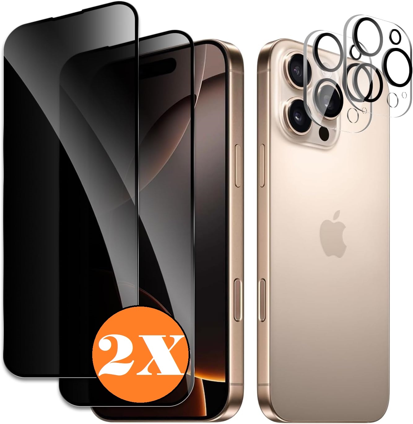 Ntech 2-Pack Privacy Screenprotector + 2 Camera Lens Protectors voor iPhone 16 Pro