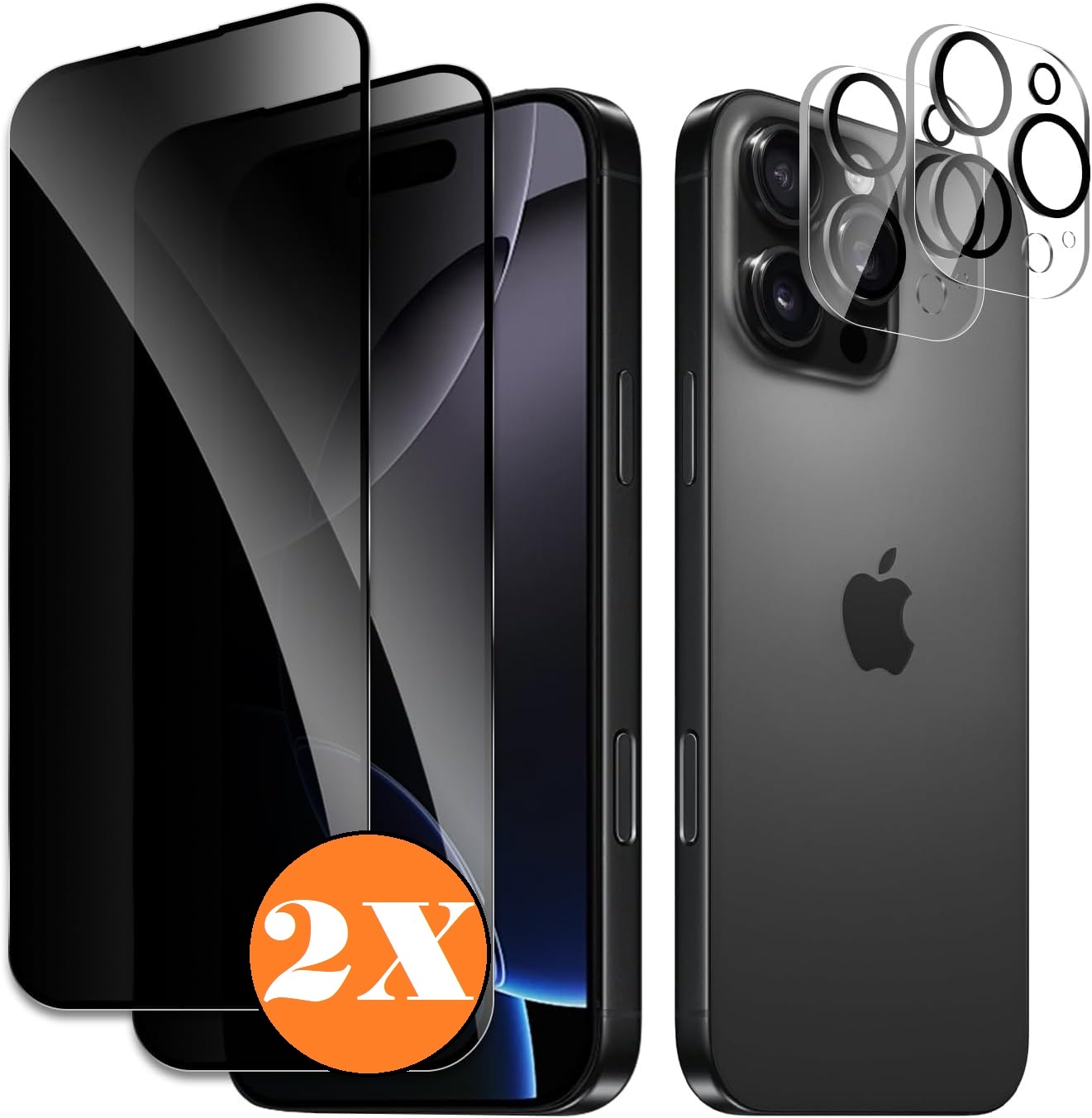 Privacy screenprotector Geschikt voor iPhone 16 Pro Max screenprotector Privacy Met iPhone 16 Pro Max camera lens - Complete bescherming voor iPhone 16 Pro Max – scherm en camera in één set - 2X