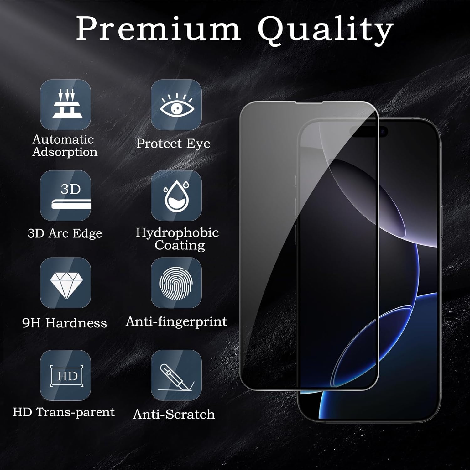 Met de Ntech 2-pack privacy screenprotector en lens protectors voor iPhone 16 Pro Max kies je voor zekerheid, discretie en premium bescherming in één complete set.