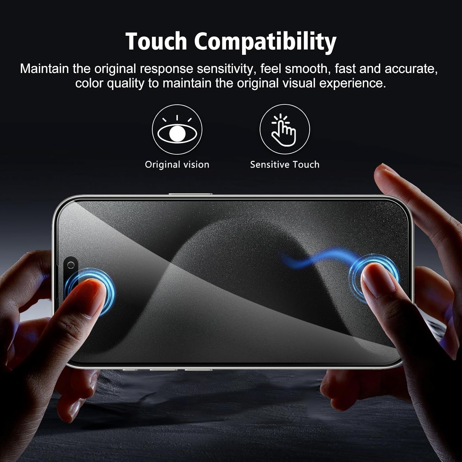 Ondanks de privacylaag blijft de beeldkwaliteit van je iPhone 15 Pro Max haarscherp. Kleuren blijven levendig, en de aanraakgevoeligheid blijft perfect behouden.
