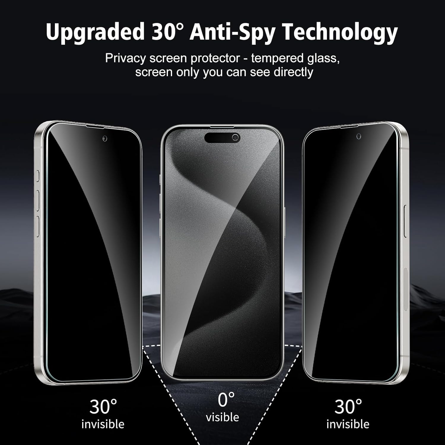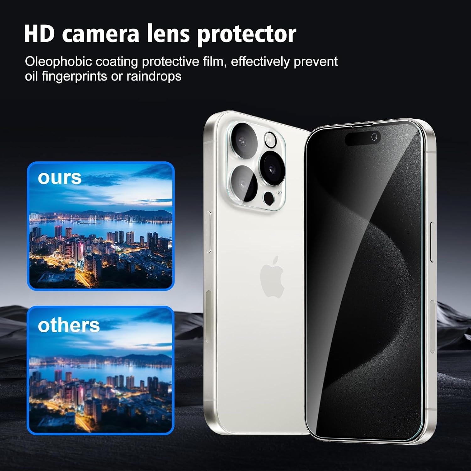 Ntech 2-Pack Privacy Screenprotector + 2 Camera Lens Protectors voor iPhone 15 Pro Max