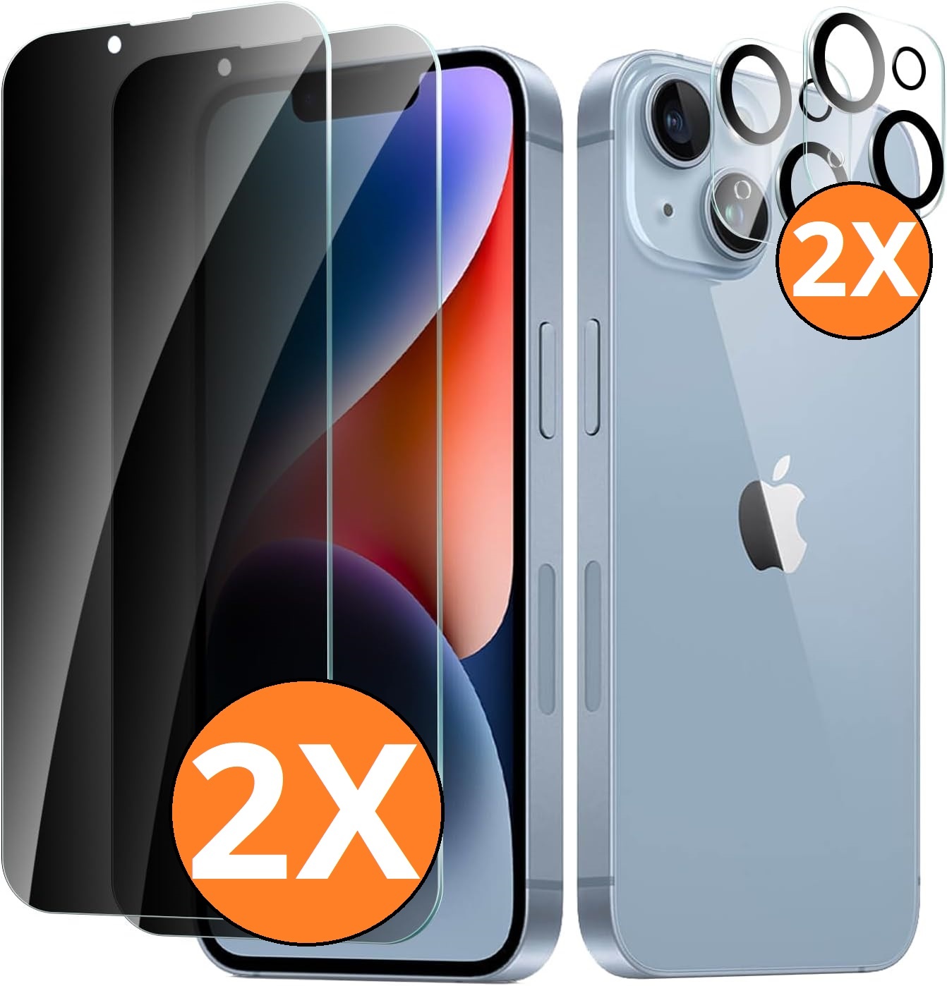 Ntech 2-Pack Privacy Screenprotector + 2 Camera Lens Protectors voor iPhone 14 Plus