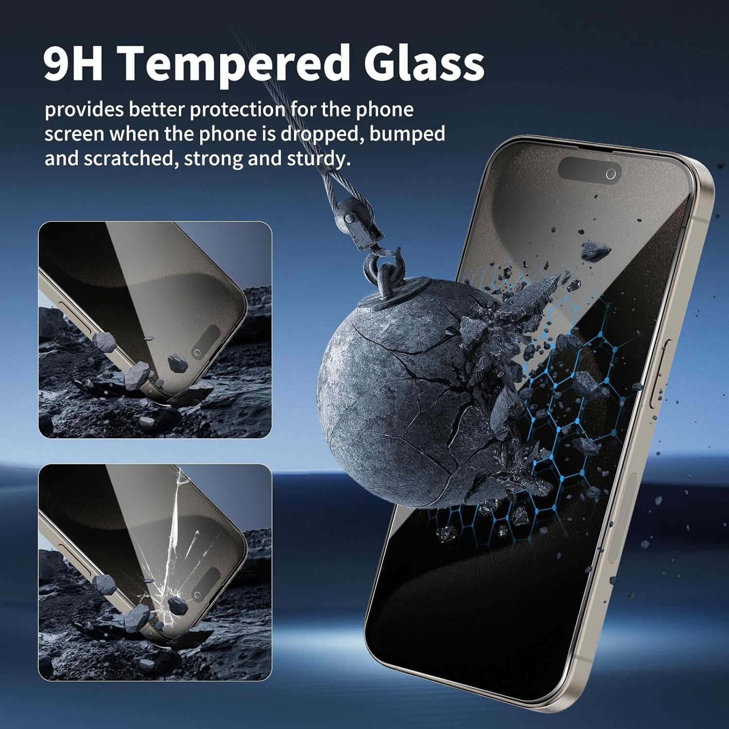 9H gehard glas – bestand tegen krassen, vallen en dagelijkse gebruiksschade.