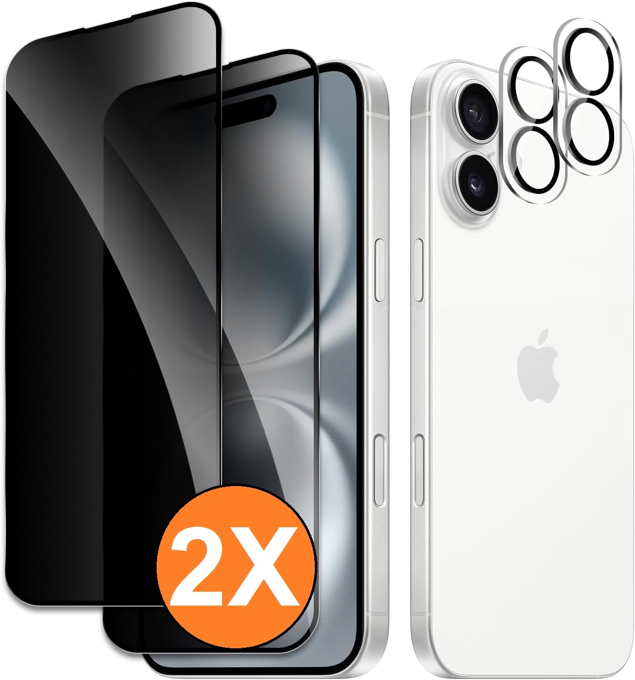 Met de Ntech 2-pack privacy screenprotector en lens protectors voor iPhone 16 kies je voor zekerheid, discretie en premium bescherming in één complete set.