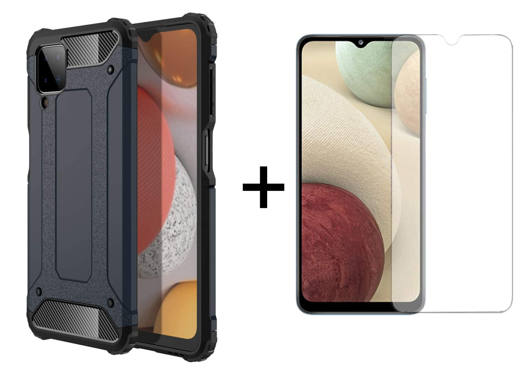 Ntech Hoesje Geschikt Voor Samsung Galaxy A12 hoesje – Met Screenprotector Rugged Armor Hoesje - Shockproof case - Zwart