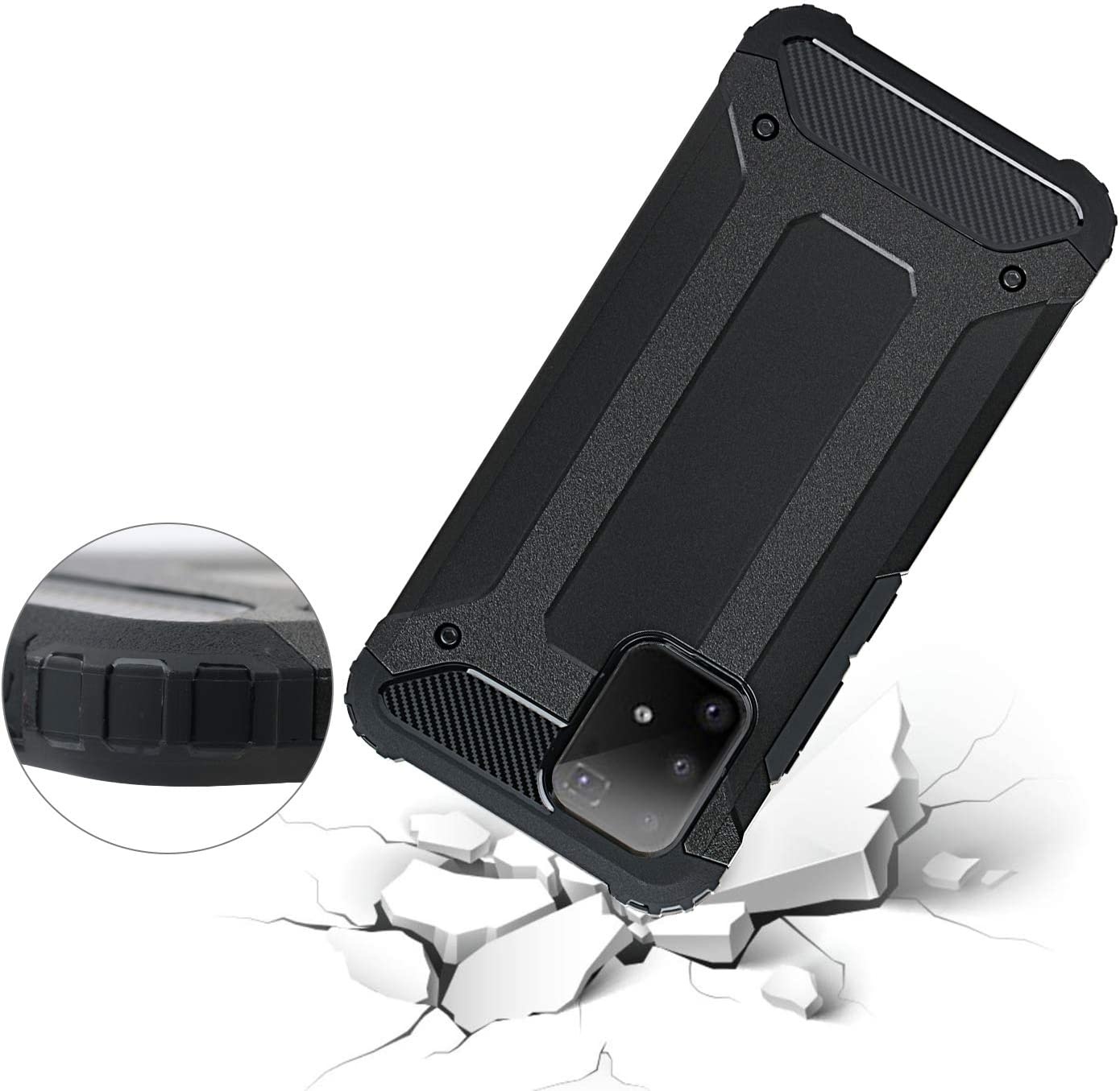 oTronica Hoesje Geschikt Voor Samsung Galaxy A91/ S10Lite hoesje - Extra Stevige Rugged Armor Hoesje - Shockproof Case - Zwart