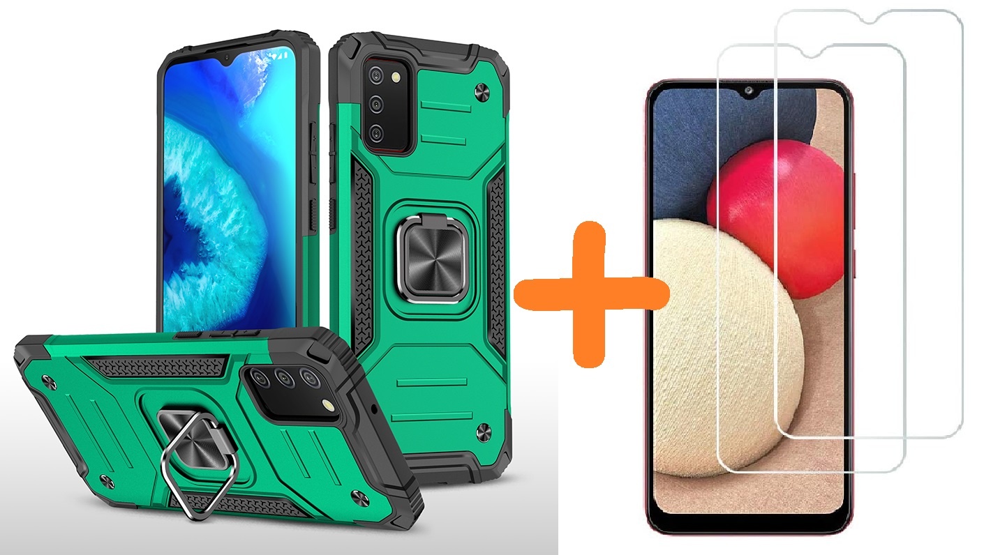 Hoesje Geschikt Voor Samsung Galaxy A02s Hoesje Heavy Duty Armor Hoesje Groen - Galaxy A02s Case Kickstand Ring cover met Magnetisch Auto Mount- Hoesje Geschikt Voor Samsung Galaxy A02s screenprotector 2 pack