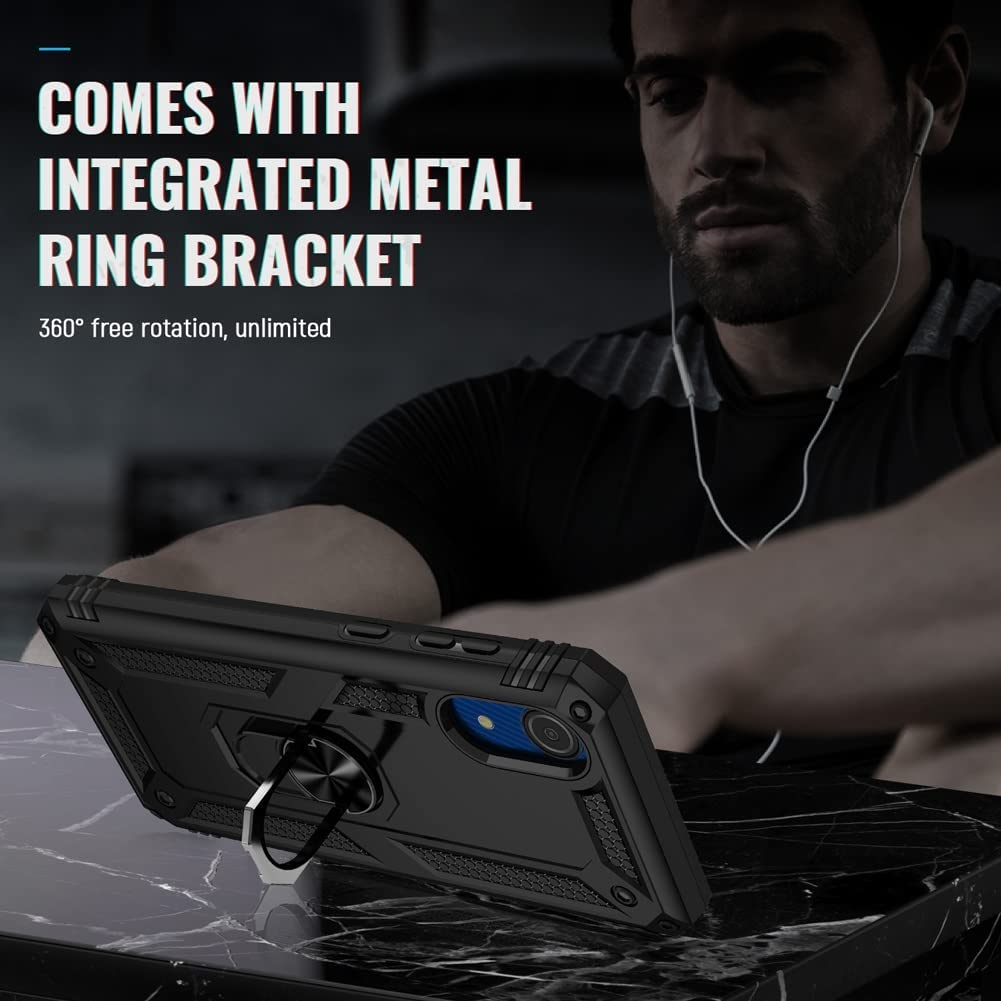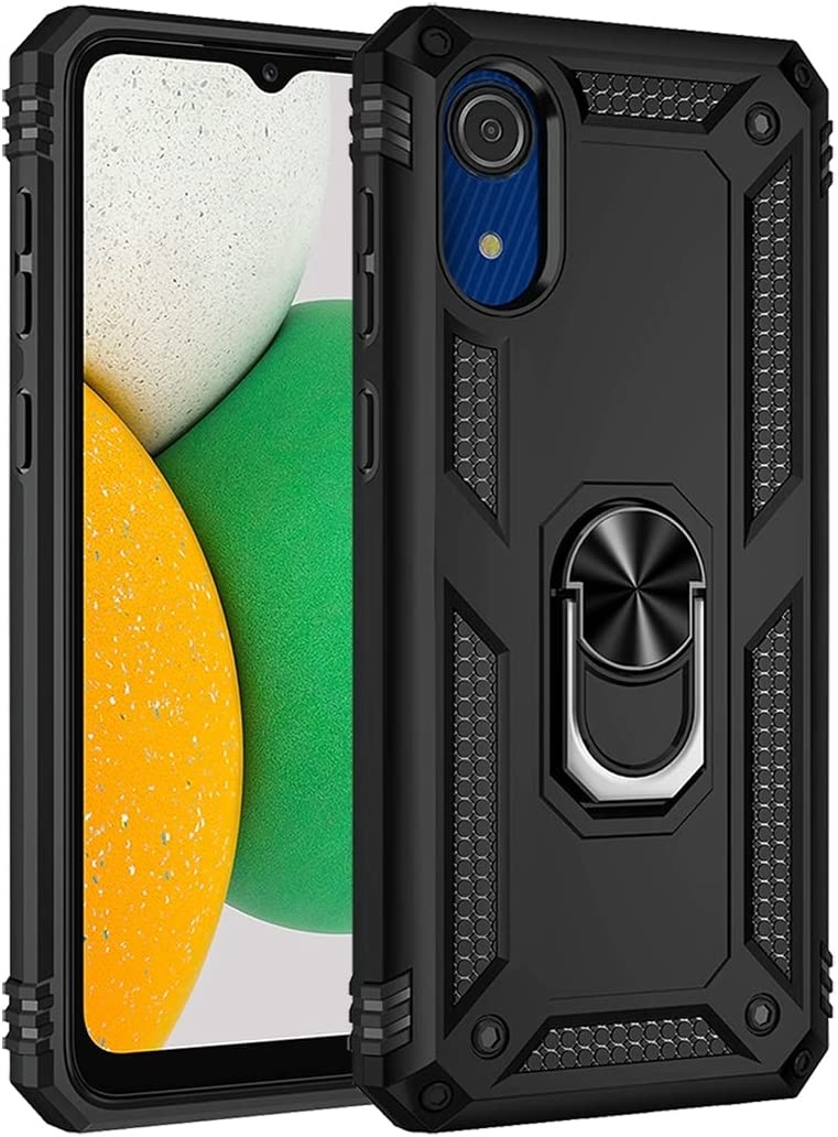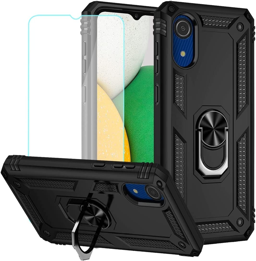 Samsung A03 core Hoesje kickstand Armor case Zwart - Galaxy A03 core Ring houder TPU backcover hoesje - met Galaxy A03 core screenprotector 1 pack