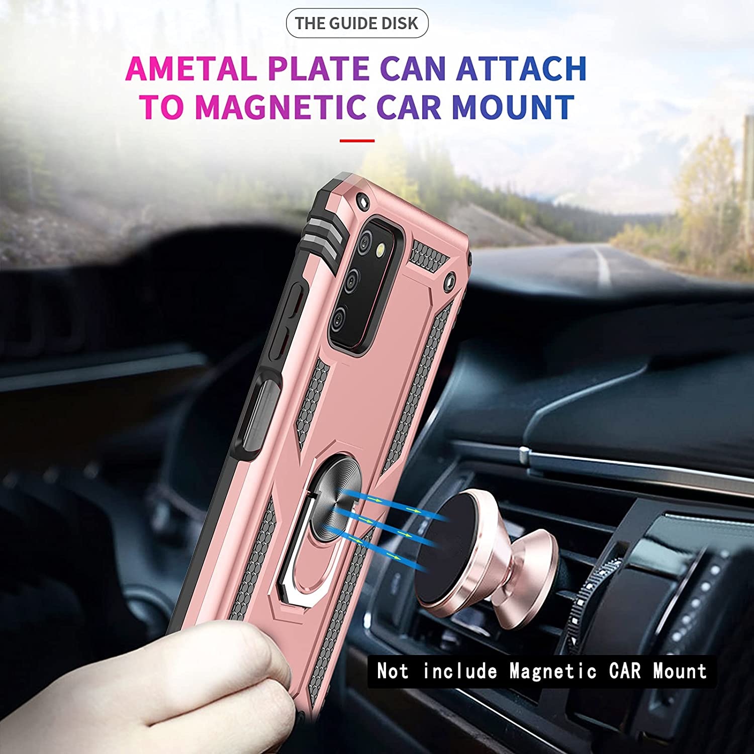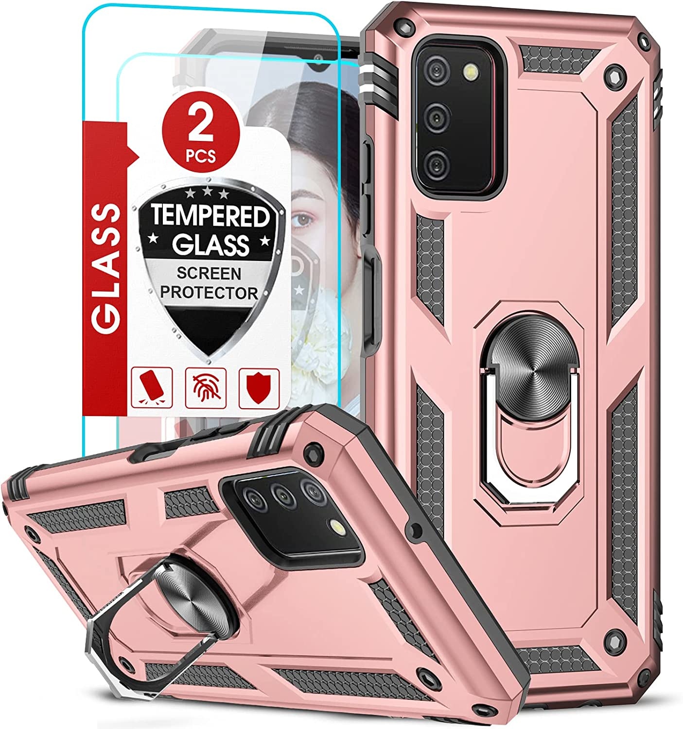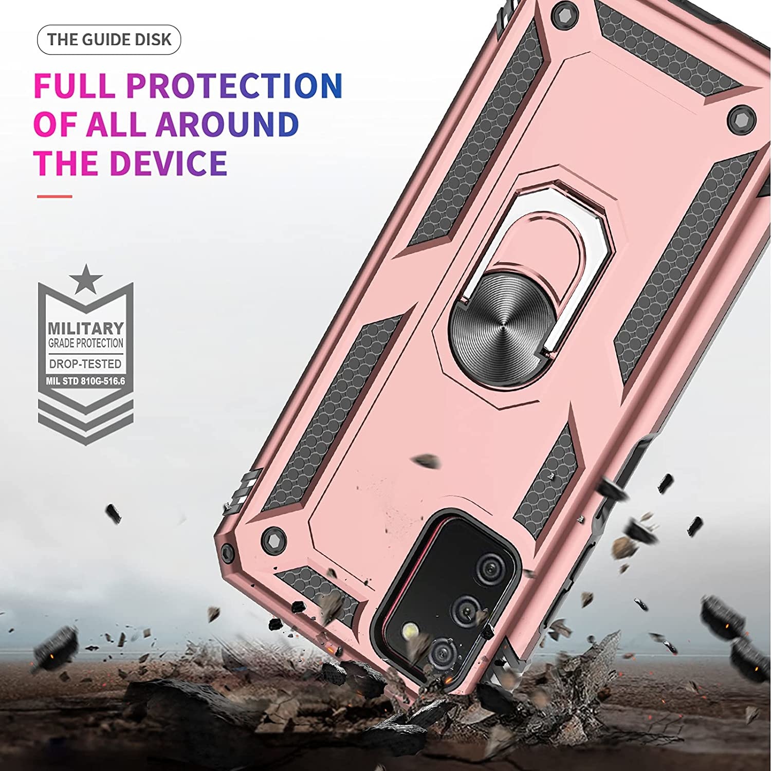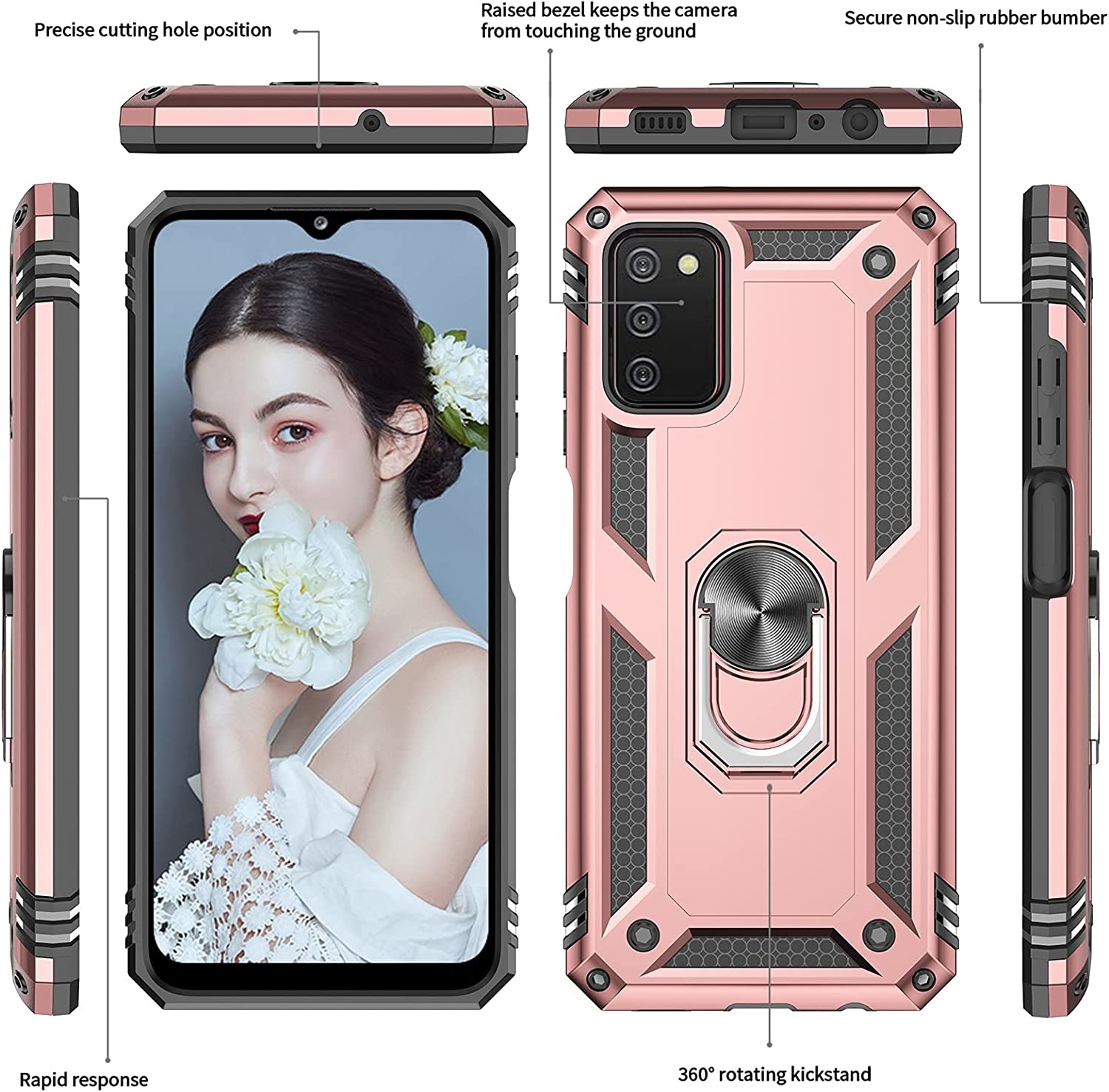 Samsung A03 Hoesje Anti-Shock Hybrid Armor hoesje Rose Goud - Samsung Galaxy A03 kickstand Ring houder TPU backcover hoesje - met screenprotector Galaxy A03 - 2 pack