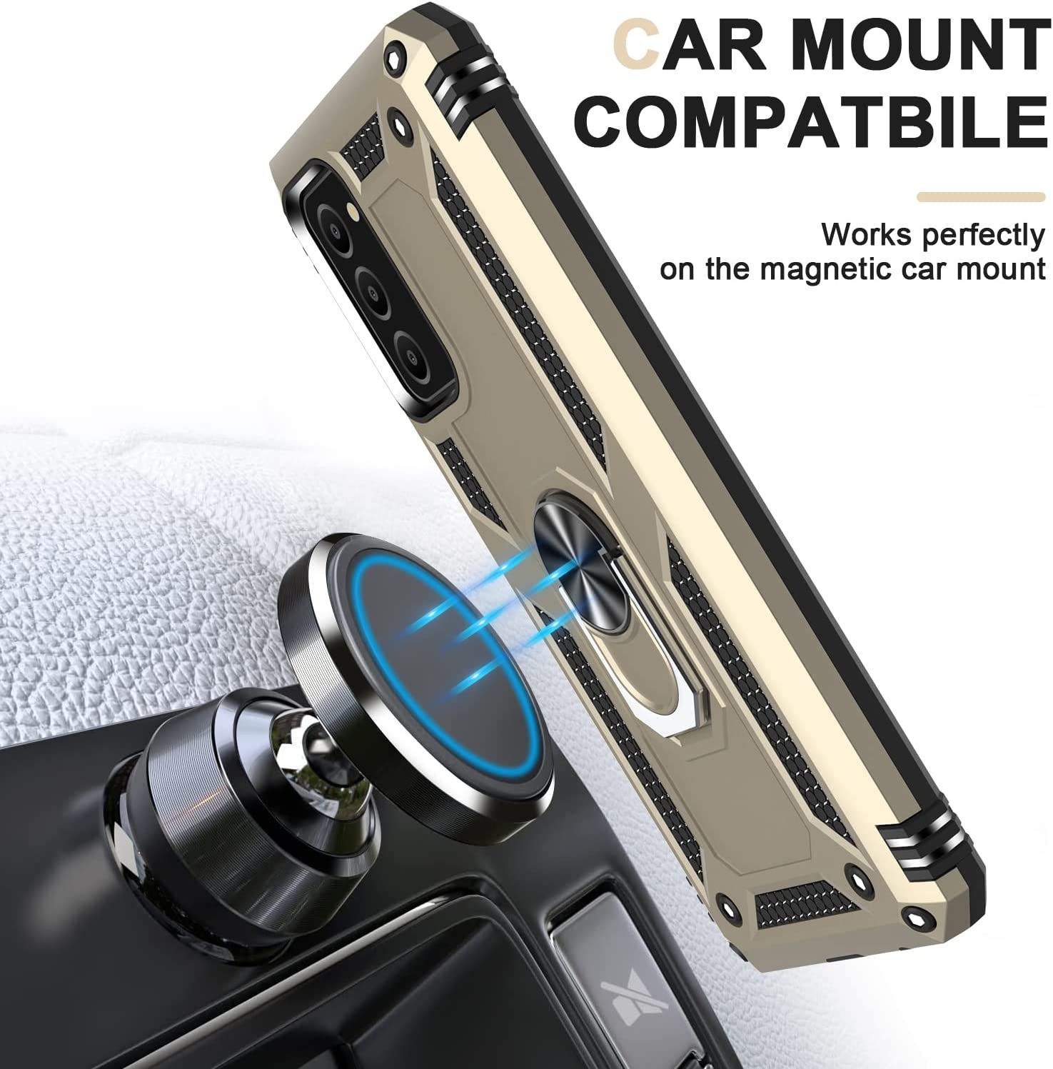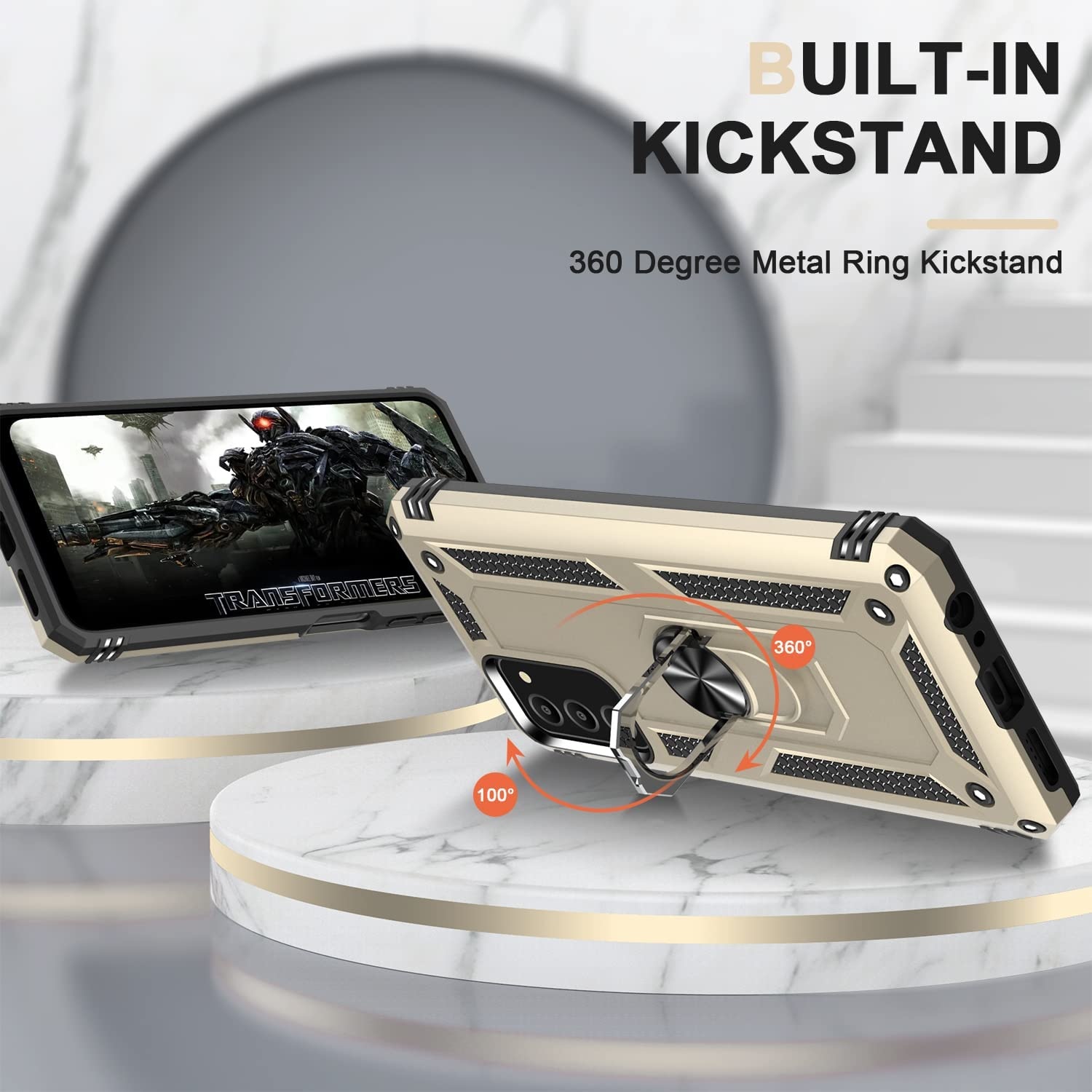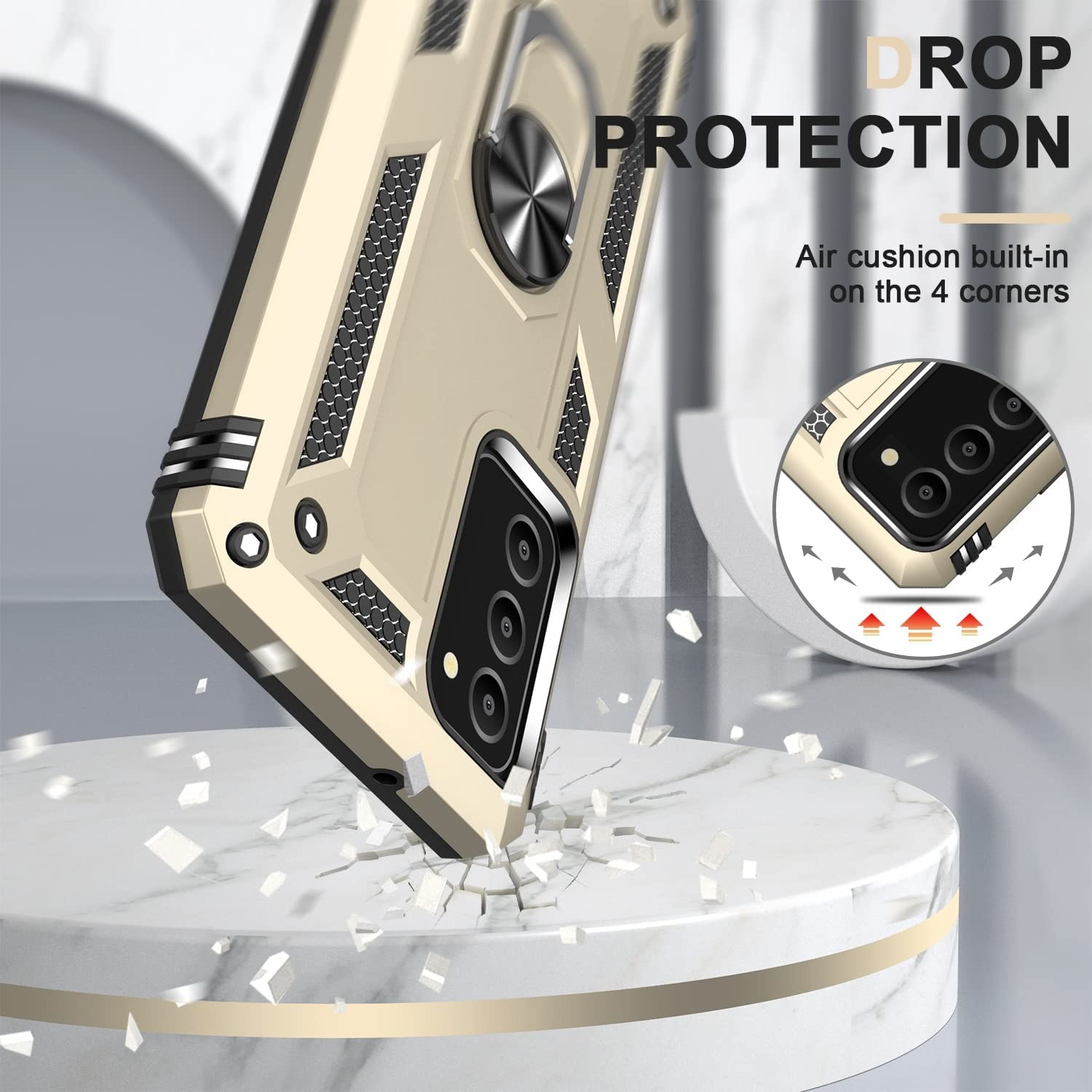 Samsung A03 Hoesje Anti-Shock Hybrid Armor hoesje Goud - Samsung Galaxy A03 kickstand Ring houder TPU backcover hoesje - met screenprotector Galaxy A03 - 2 pack
