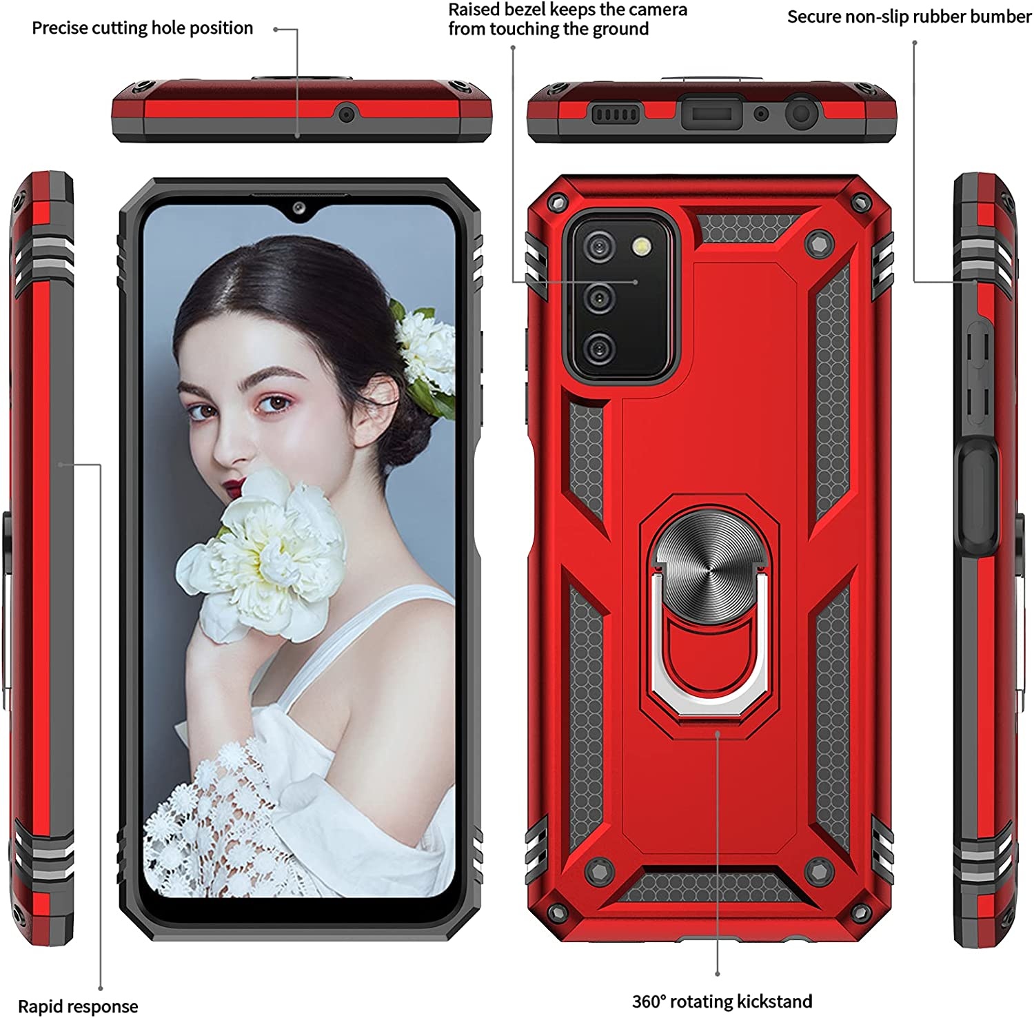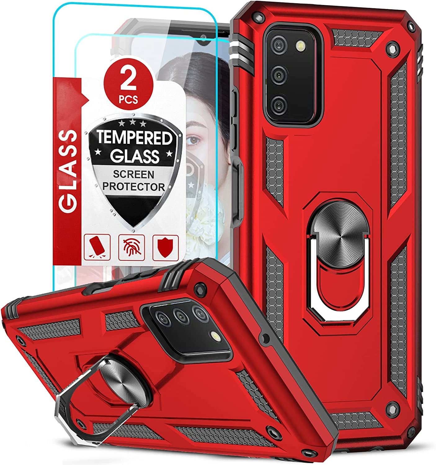 Samsung A03 Hoesje Anti-Shock Hybrid Armor hoesje Rood - Samsung Galaxy A03 kickstand Ring houder TPU backcover hoesje - met screenprotector Galaxy A03 - 2 pack