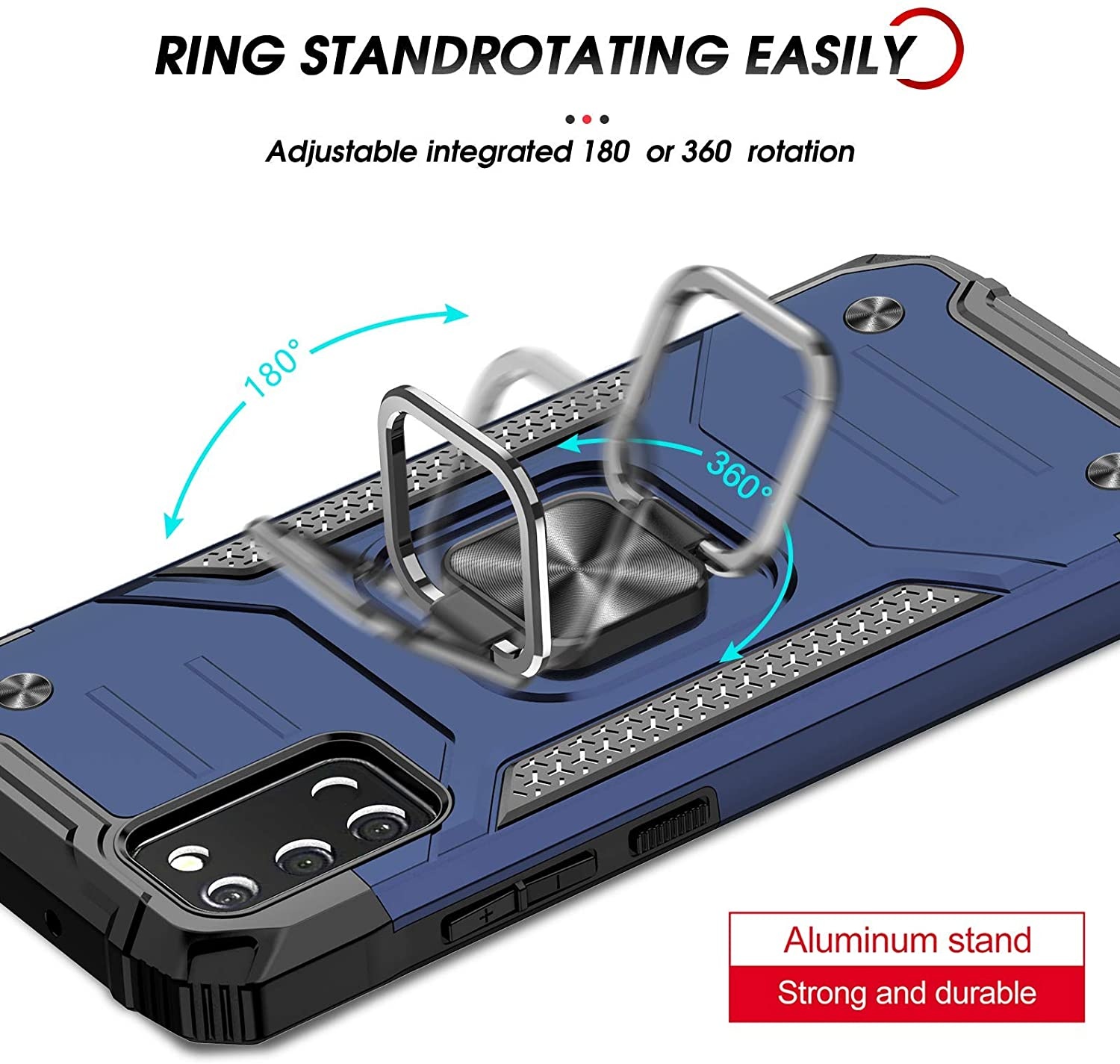 Hoesje Geschikt Voor Samsung Galaxy A03s Hoesje Heavy Duty Armor Hoesje Blauw - Galaxy A03S Case Kickstand Ring cover met Magnetisch Auto Mount- Hoesje Geschikt Voor Samsung Galaxy A03S screenprotector 2 pack