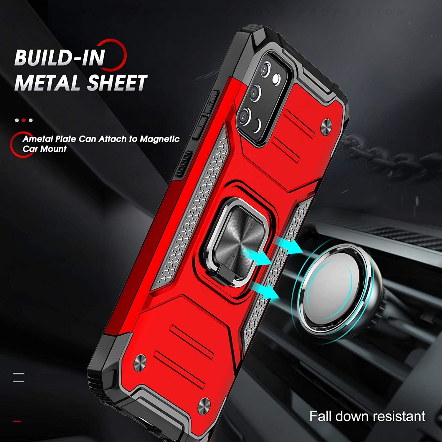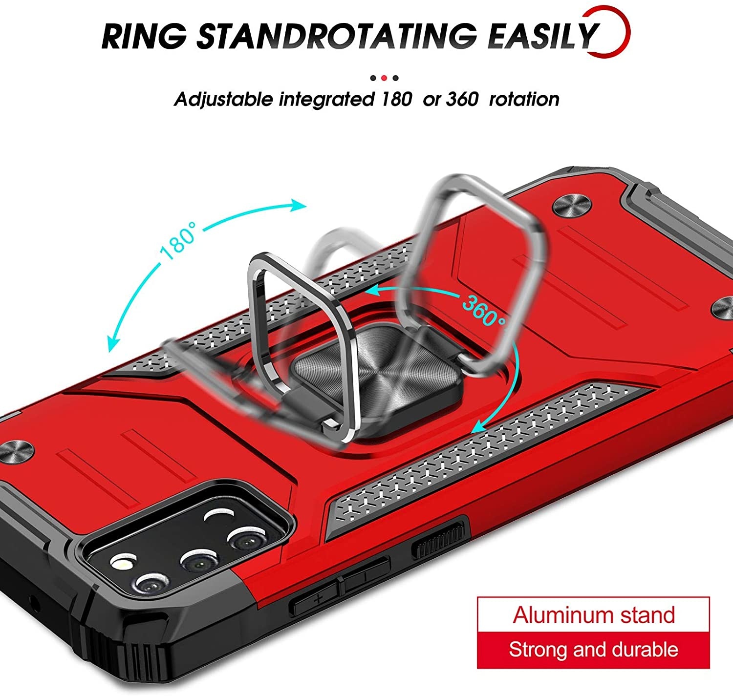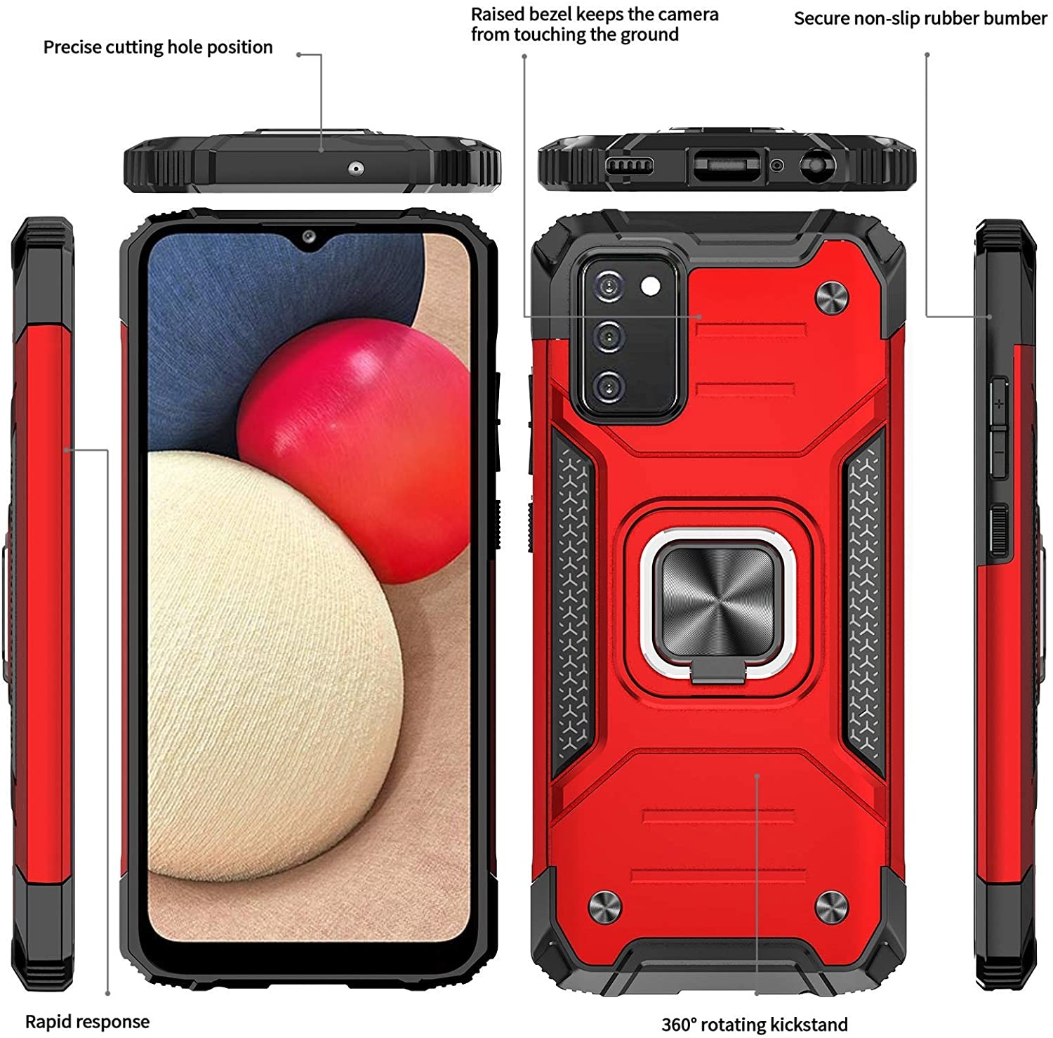 Hoesje Geschikt Voor Samsung Galaxy A03s Hoesje Heavy Duty Armor Hoesje Rood - Galaxy A03S Case Kickstand Ring cover met Magnetisch Auto Mount- Hoesje Geschikt Voor Samsung Galaxy A03S screenprotector 2 pack