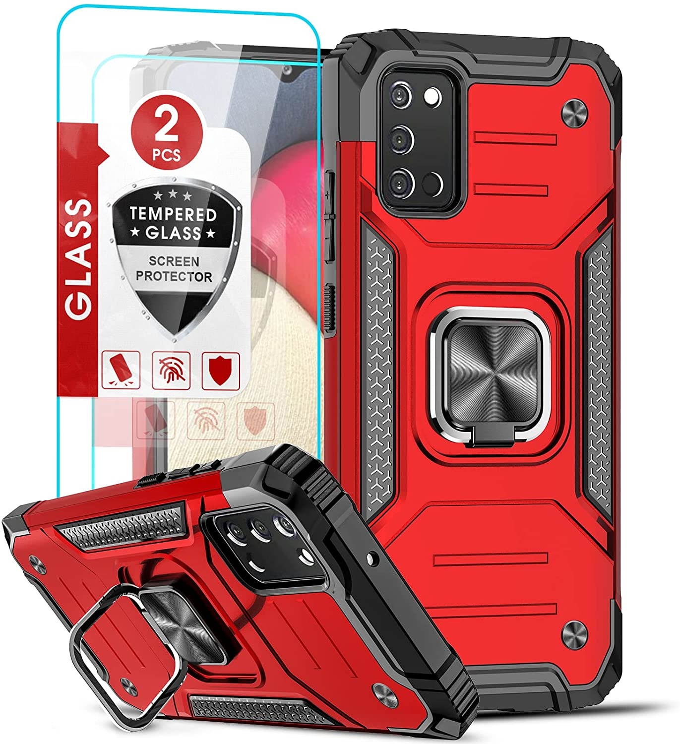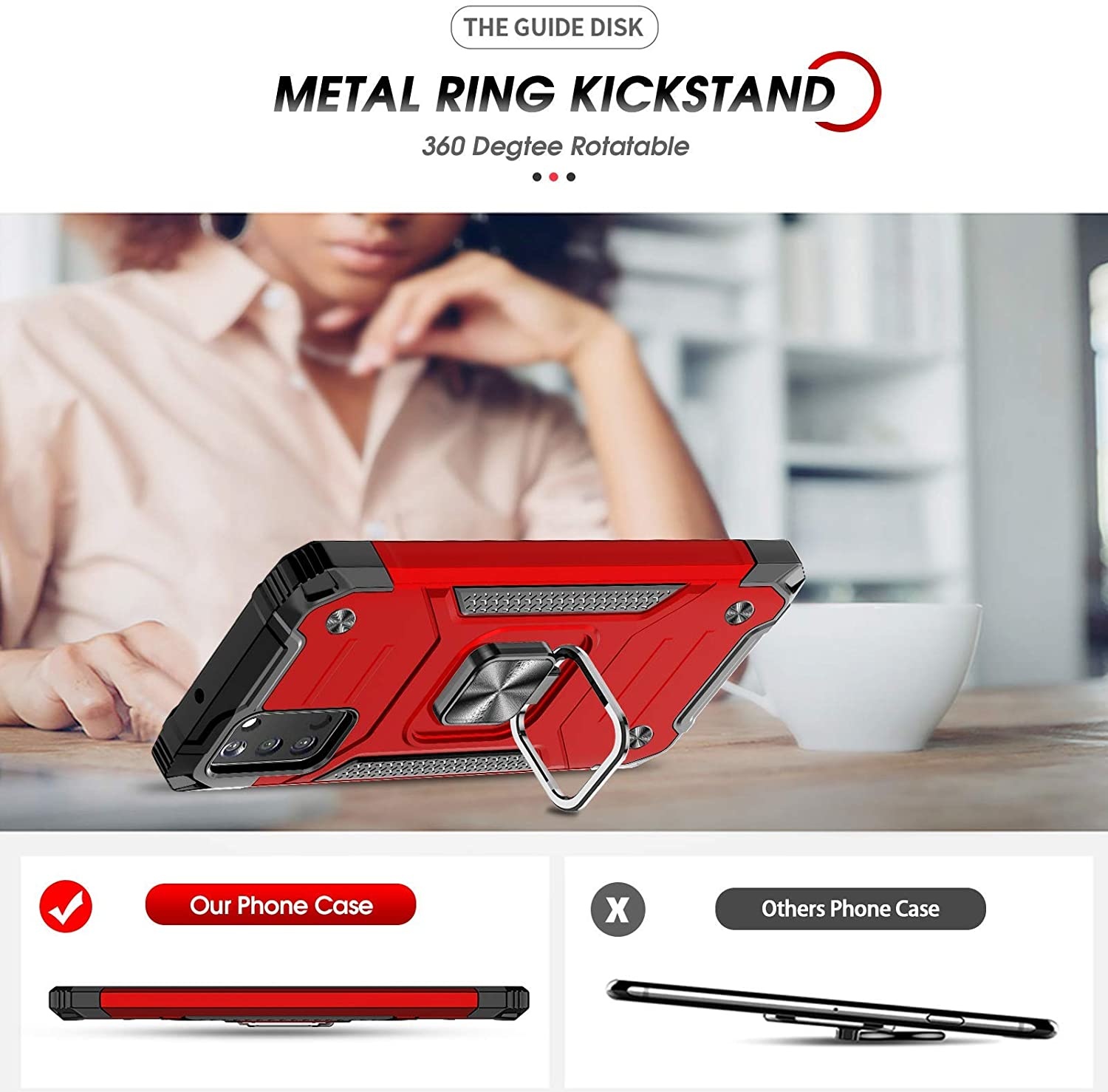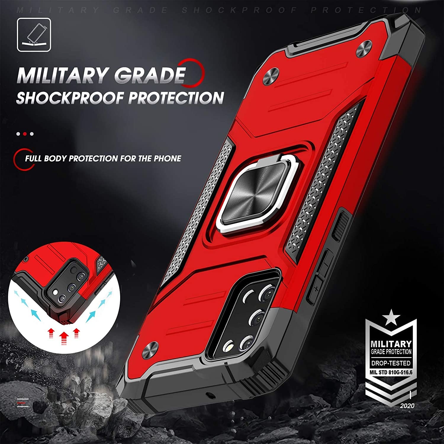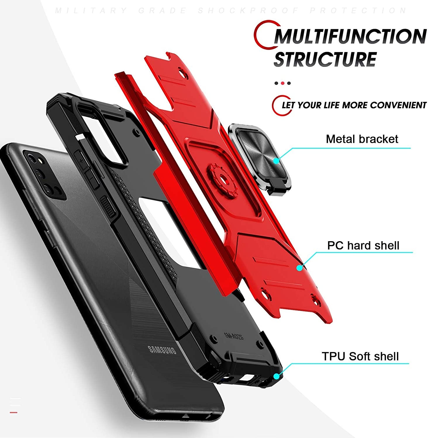 Hoesje Geschikt Voor Samsung Galaxy A03s Hoesje Heavy Duty Armor Hoesje Rood - Galaxy A03S Case Kickstand Ring cover met Magnetisch Auto Mount- Hoesje Geschikt Voor Samsung Galaxy A03S screenprotector 2 pack