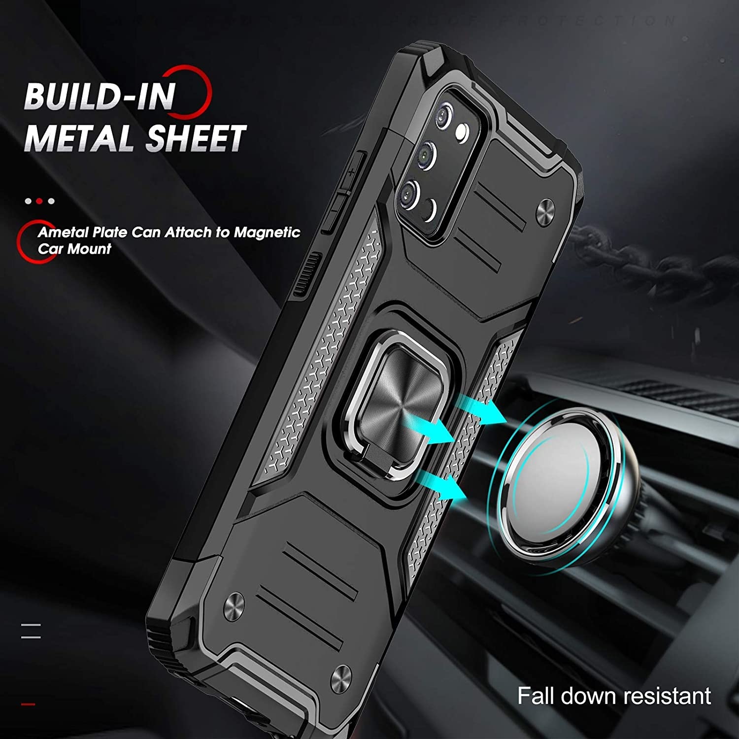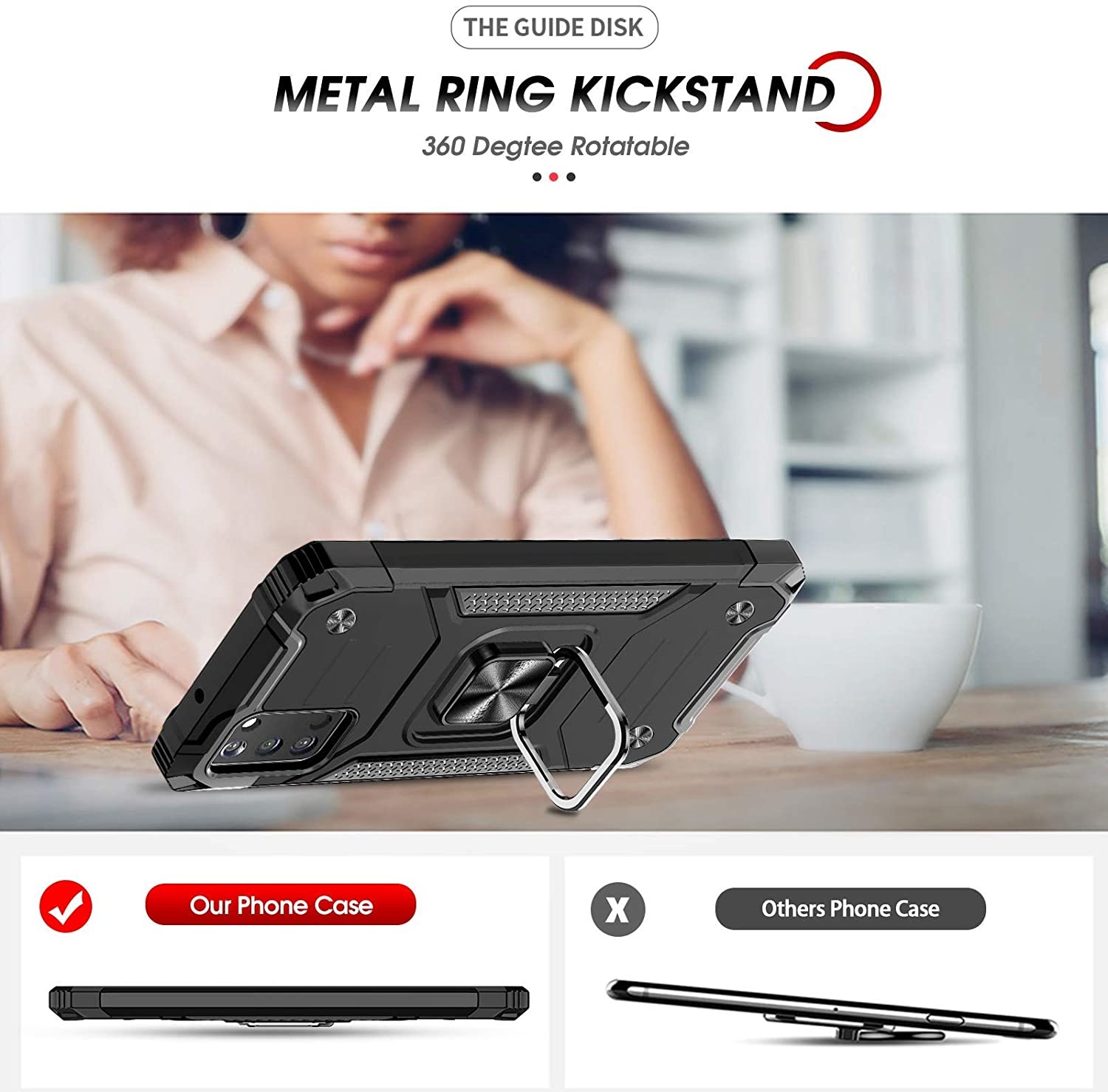 360° draaibaar standaardontwerp: Ntech Galaxy A03S Metalen standaard kan 360° draaien, is gemakkelijk te draaien en stevig op de behuizing. De ingebouwde standaard biedt u het gemak om handsfree video's en films te bekijken met het gewenste comfort en de gewenste stabiliteit. Trouwens, ingebouwde metalen magnetische plaat voor stabiele adsorptie, die direct kan worden geadsorbeerd aan de magnetische houder voor autohouder. (Niet inclusief de magnetische houder voor autohouder).