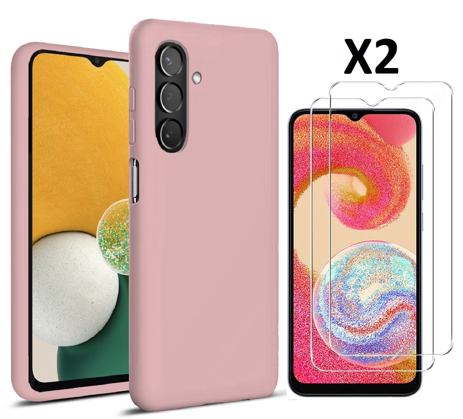 Hoesje Geschikt Voor Samsung Galaxy A04E Hoesje siliconen Licht Roze zacht siliconen hoesje TPU backcover - Met Screenprotector - 2 stuks