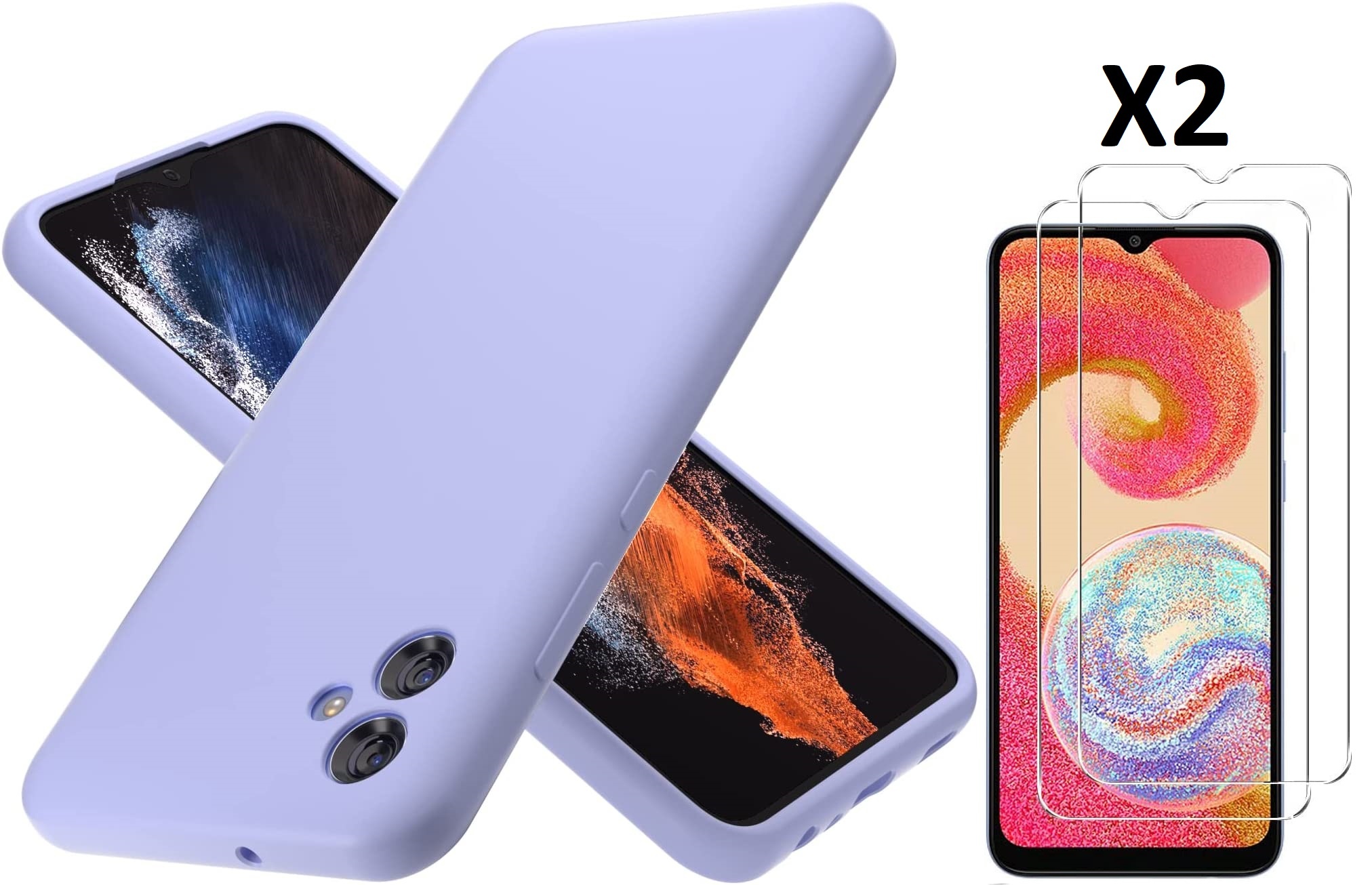 Hoesje Geschikt Voor Samsung Galaxy A04E Hoesje siliconen Lila zacht siliconen hoesje TPU backcover - Met Screenprotector - 2 stuks