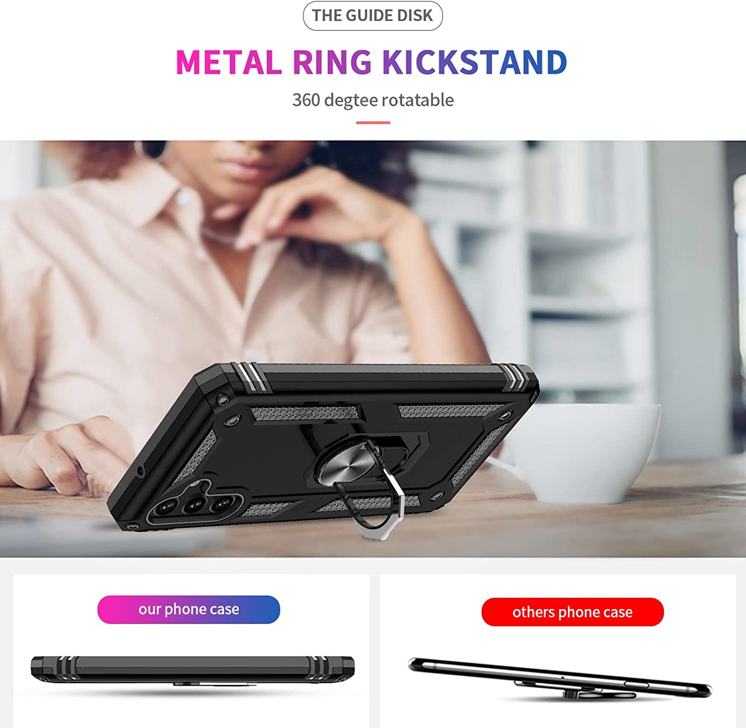 Samsung Galaxy A04S Armor TPU Back Cover Met Metalen Ring houder & standaard. Bescherming tegen stof, stoot & vuil en makkelijk in gebruik. De Samsung Galaxy A04S / Galaxy A13 5G ring houder kan je op verschillende manieren gebruiken, bijvoorbeeld als een handige standaard om je favoriete filmpjes en video's te bekijken.