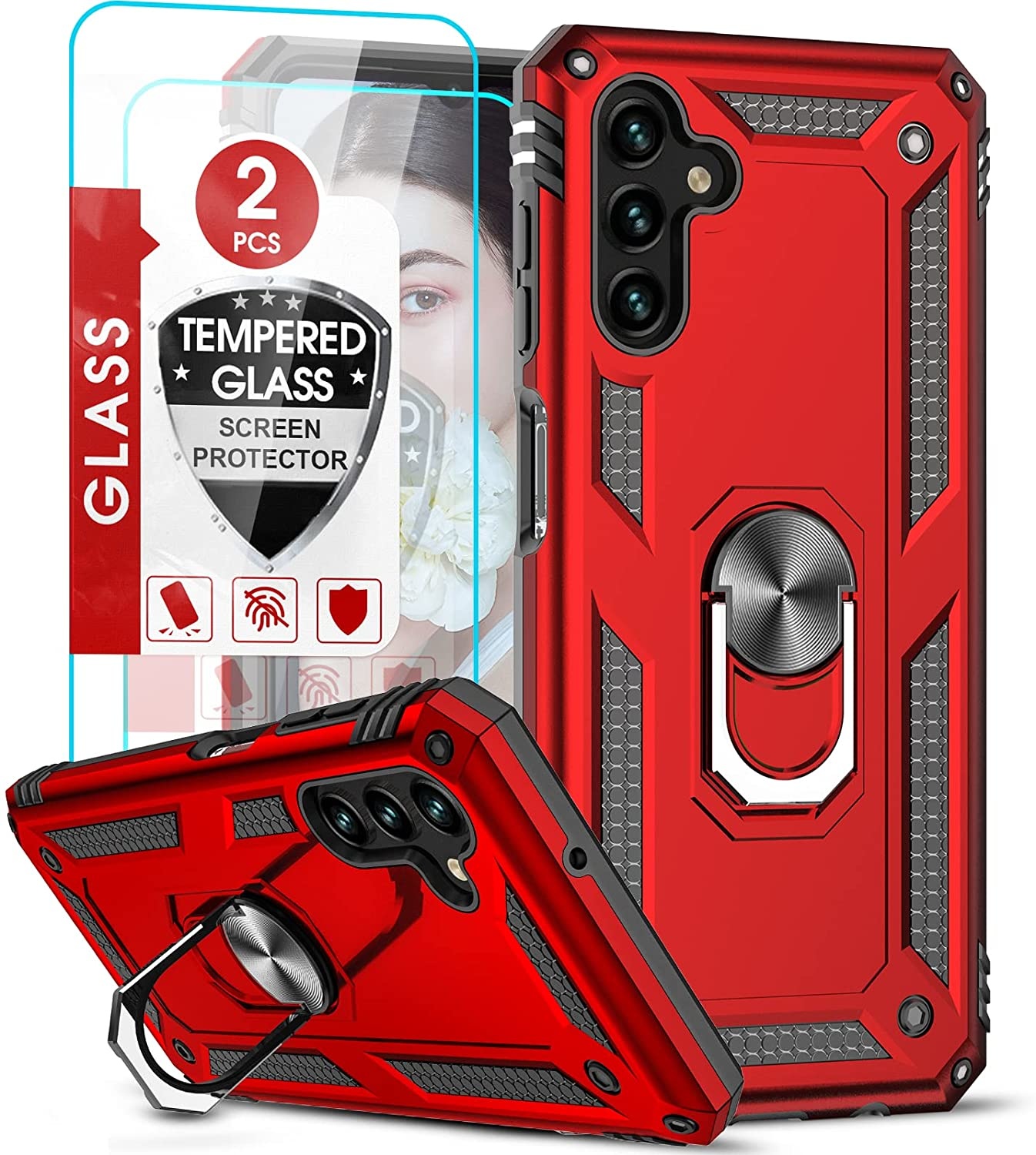 Hoesje Geschikt Voor Samsung Galaxy A04S Hoesje Anti-Shock Hybrid Armor hoesje Rood - Hoesje Geschikt Voor Samsung Galaxy A04s / A13 5G ring houder TPU backcover hoesje - screenprotector Galaxy A04S - 2 pack
