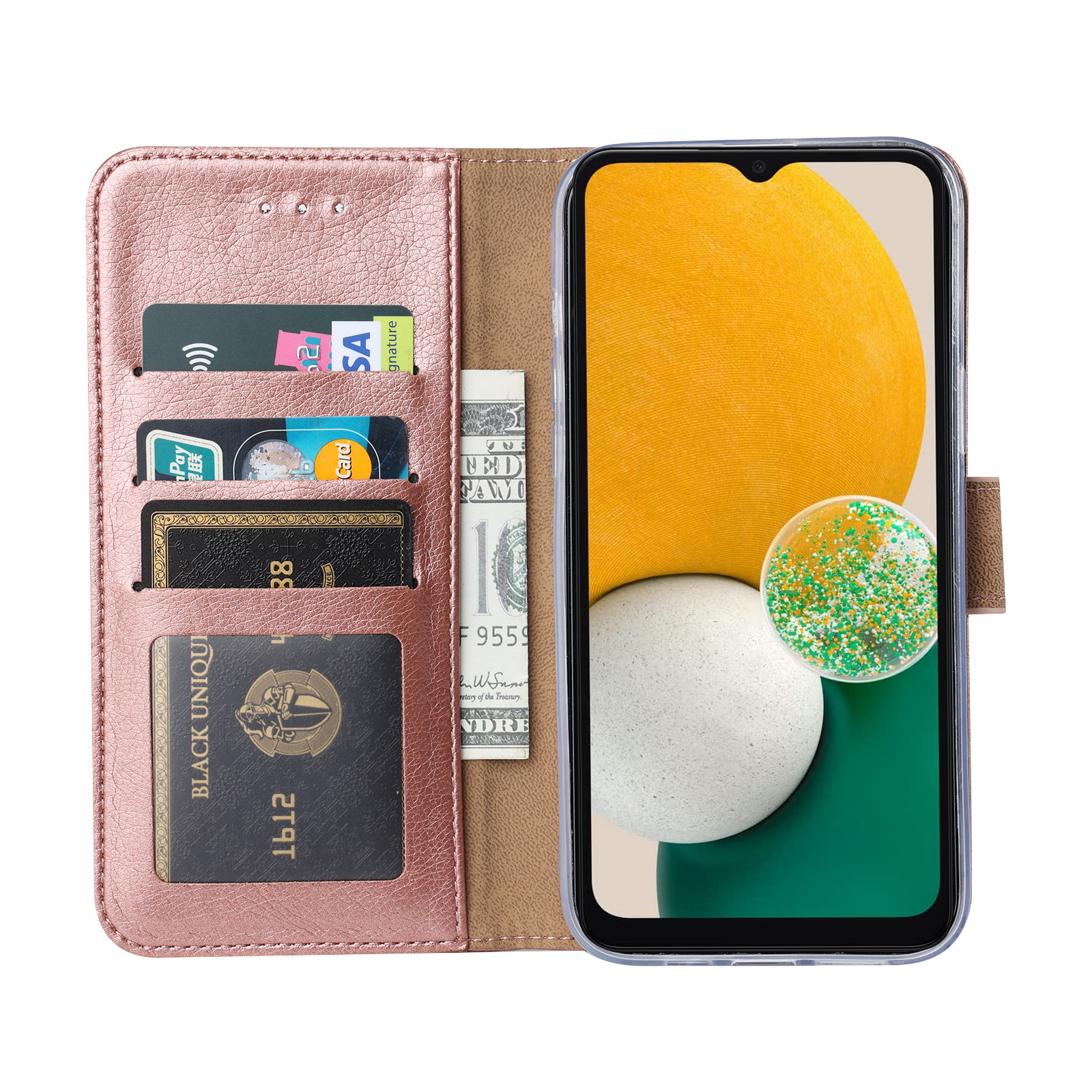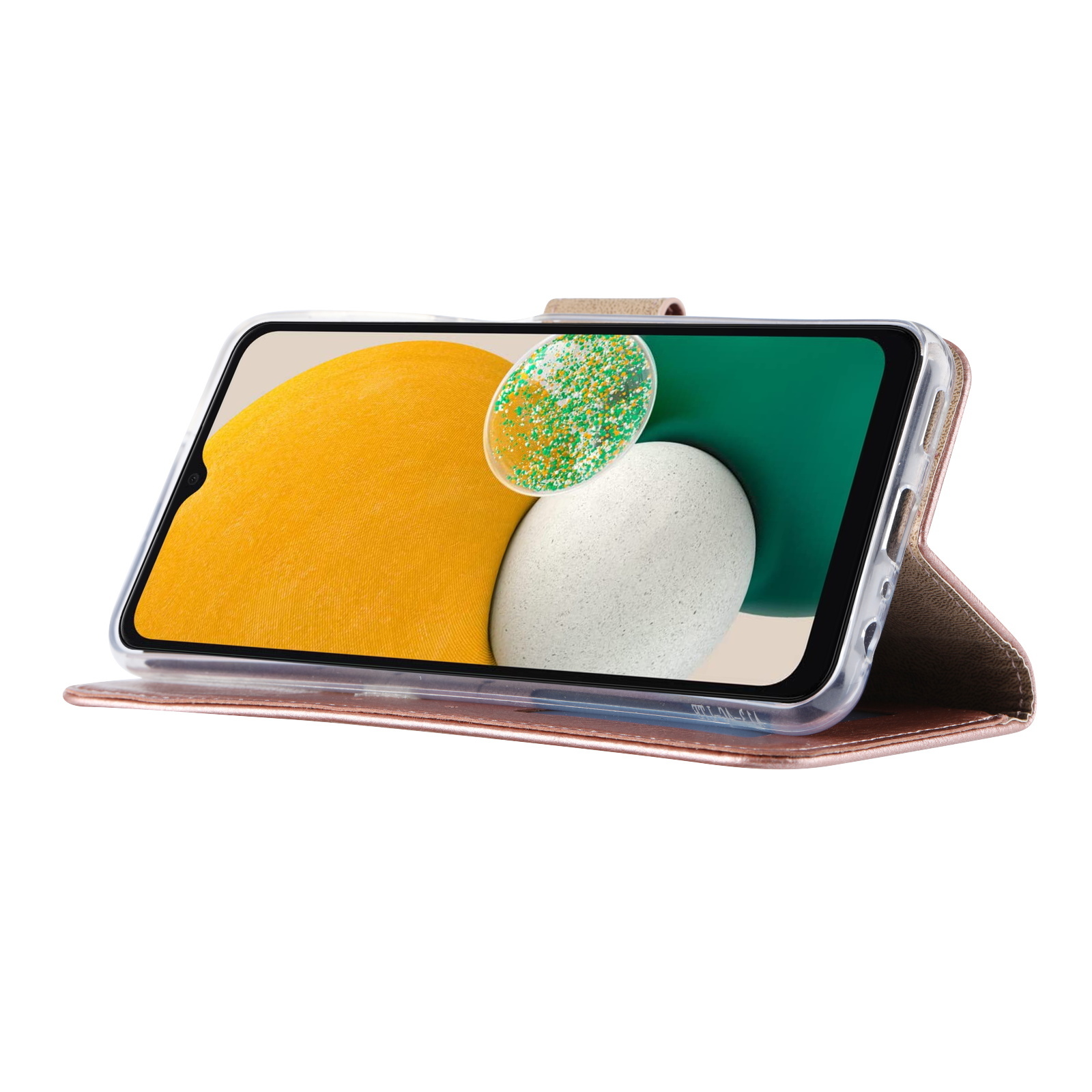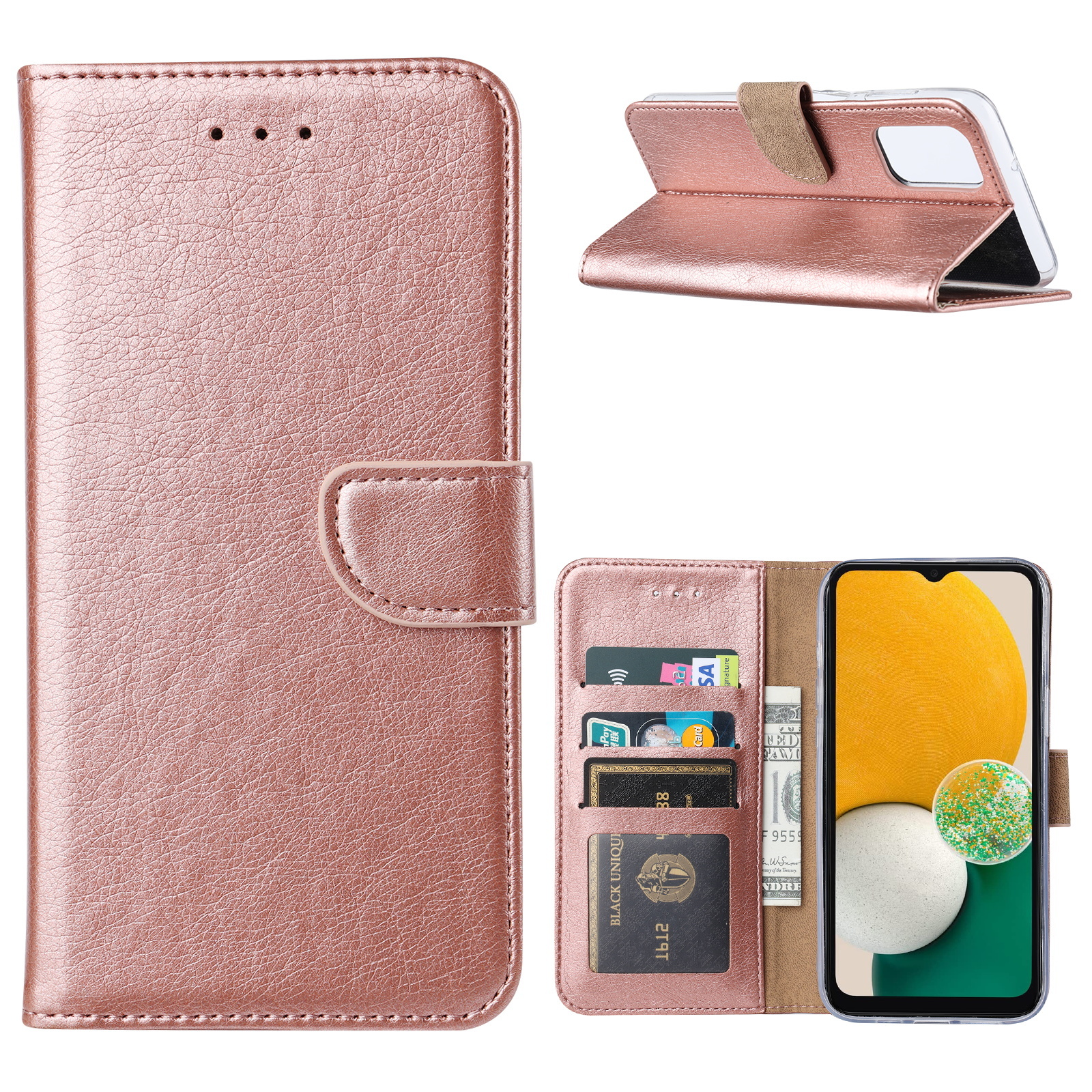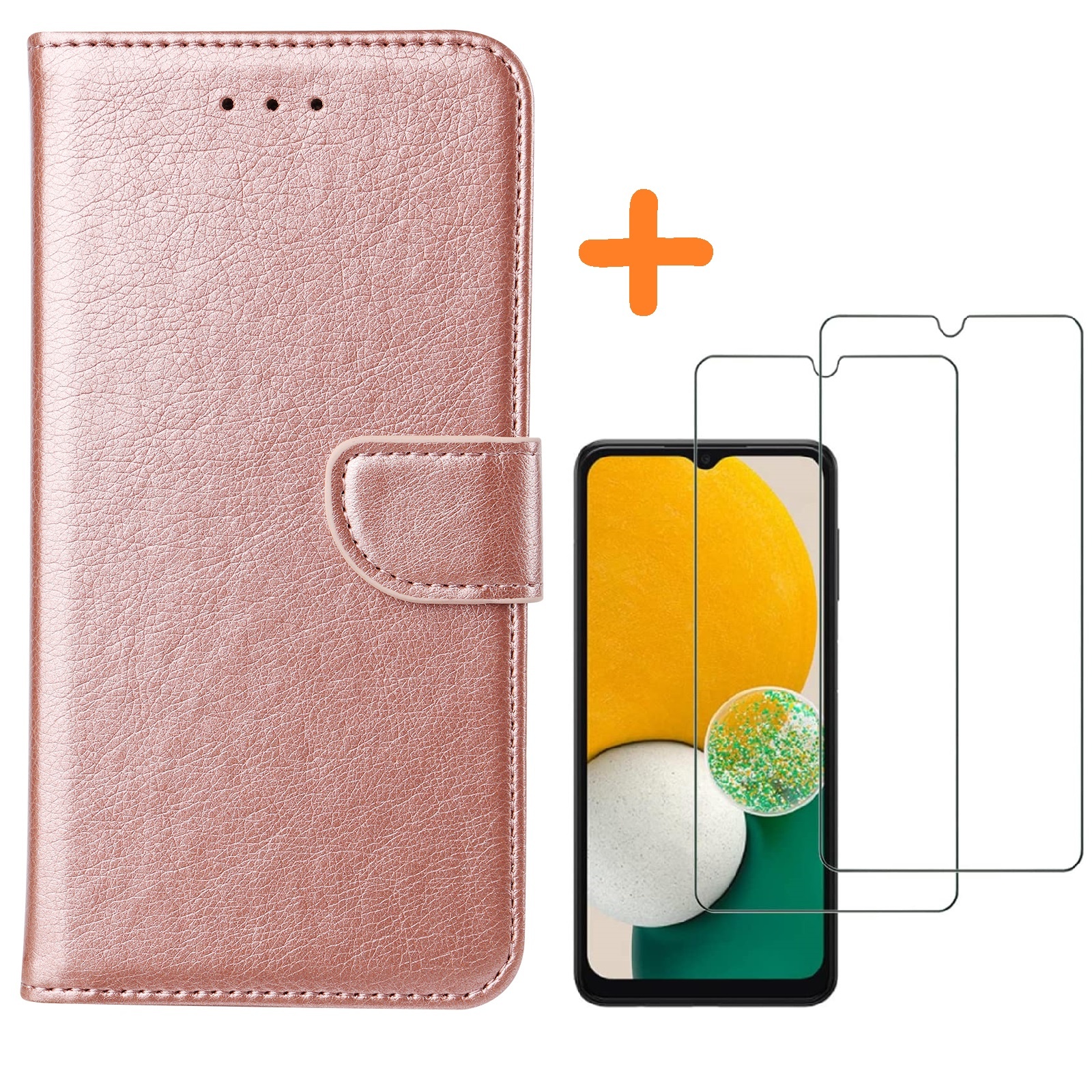 Hoesje Geschikt Voor Samsung Galaxy A04S / A13 5G hoesje bookcase Met 2x Screenprotector - tempered glass – Rosegoud