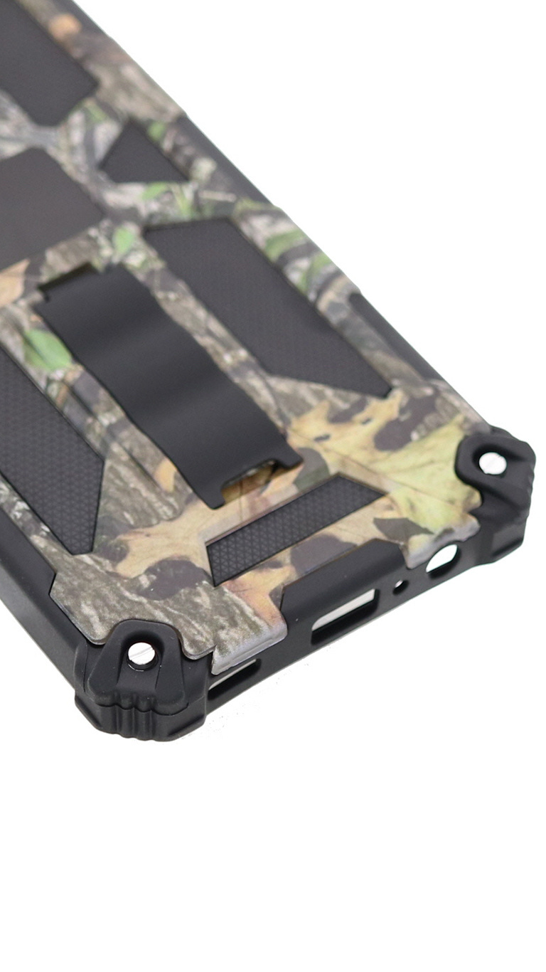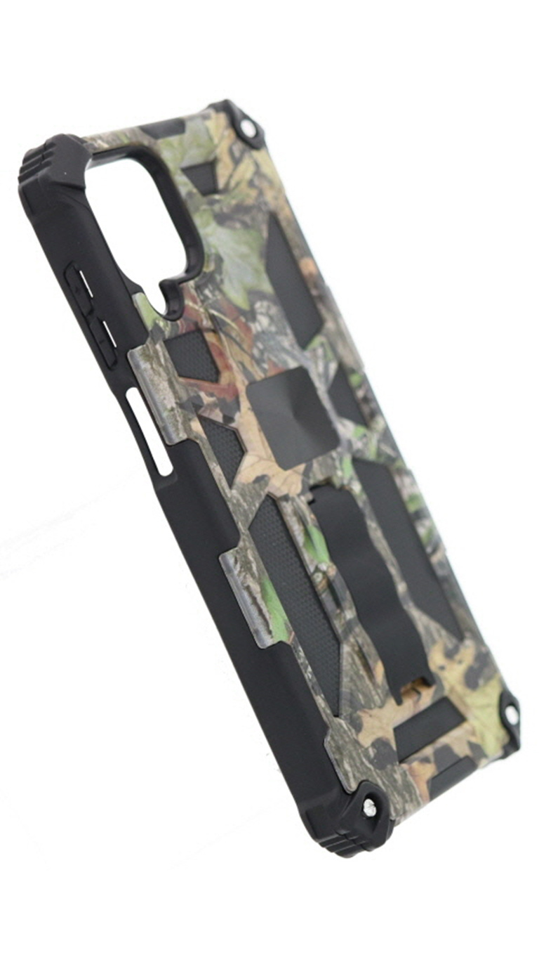 Hoesje Geschikt Voor Samsung Galaxy A12 (5G) Hoesje - Rugged Extreme Backcover Blaadjes Camouflage met Kickstand – Groen