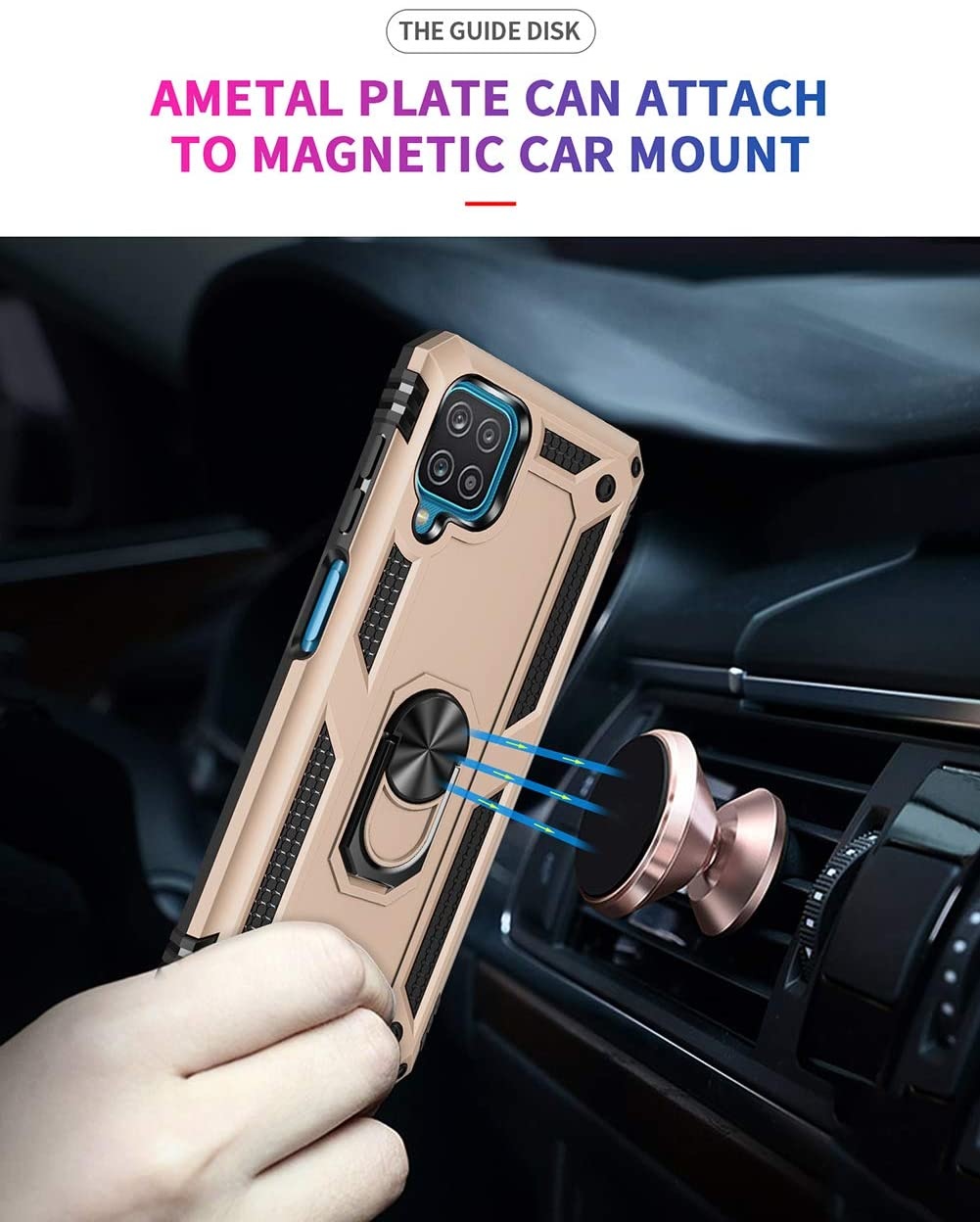 Samsung Galaxy A12 5G Armor TPU Back Cover Met Metalen Ring houder & standaard. Bescherming tegen stof, stoot & vuil en makkelijk in gebruik. De ring houder kan je op verschillende manieren gebruiken, bijvoorbeeld als een handige standaard om je favoriete filmpjes en video's te bekijken.