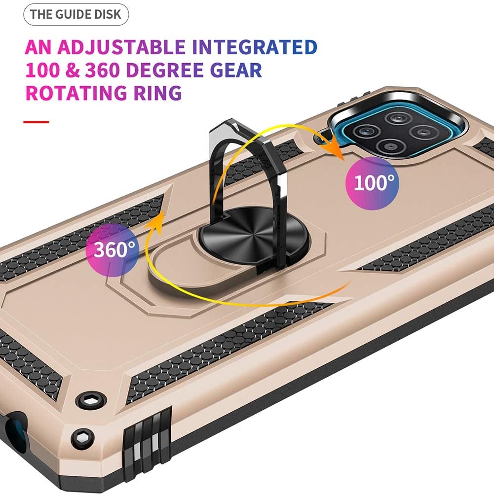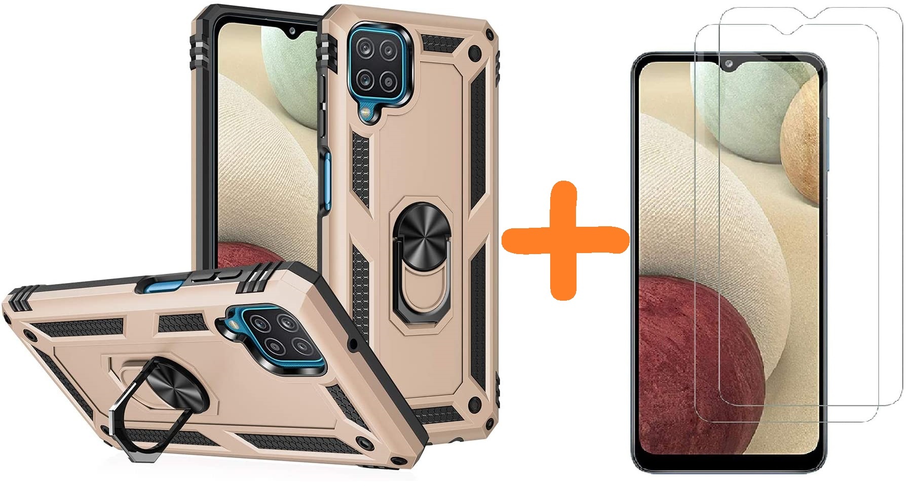 Hoesje Geschikt Voor Samsung Galaxy A12 5G Hoesje kickstand Armor met Ring houder TPU backcover hoesje - Goud met Galaxy A12 screenprotector 2 pack