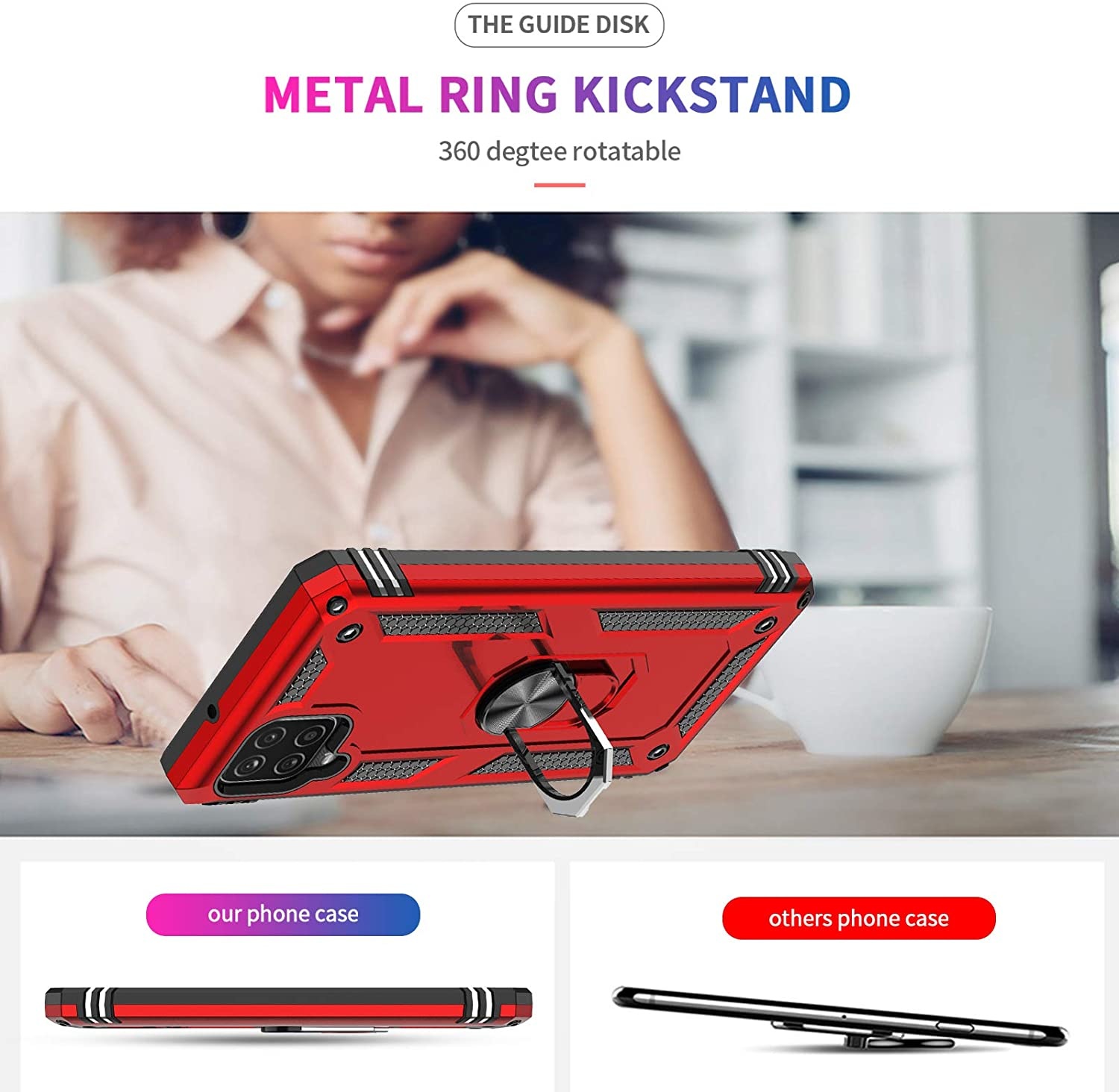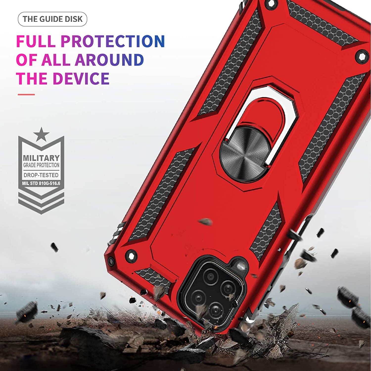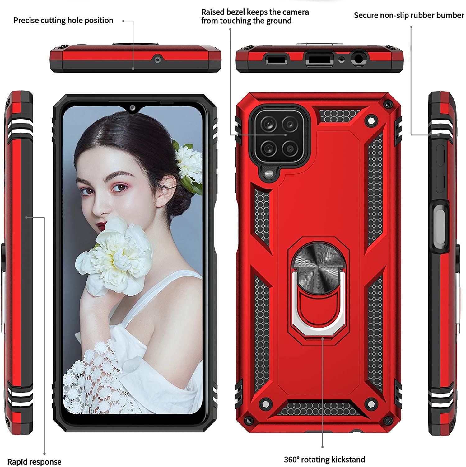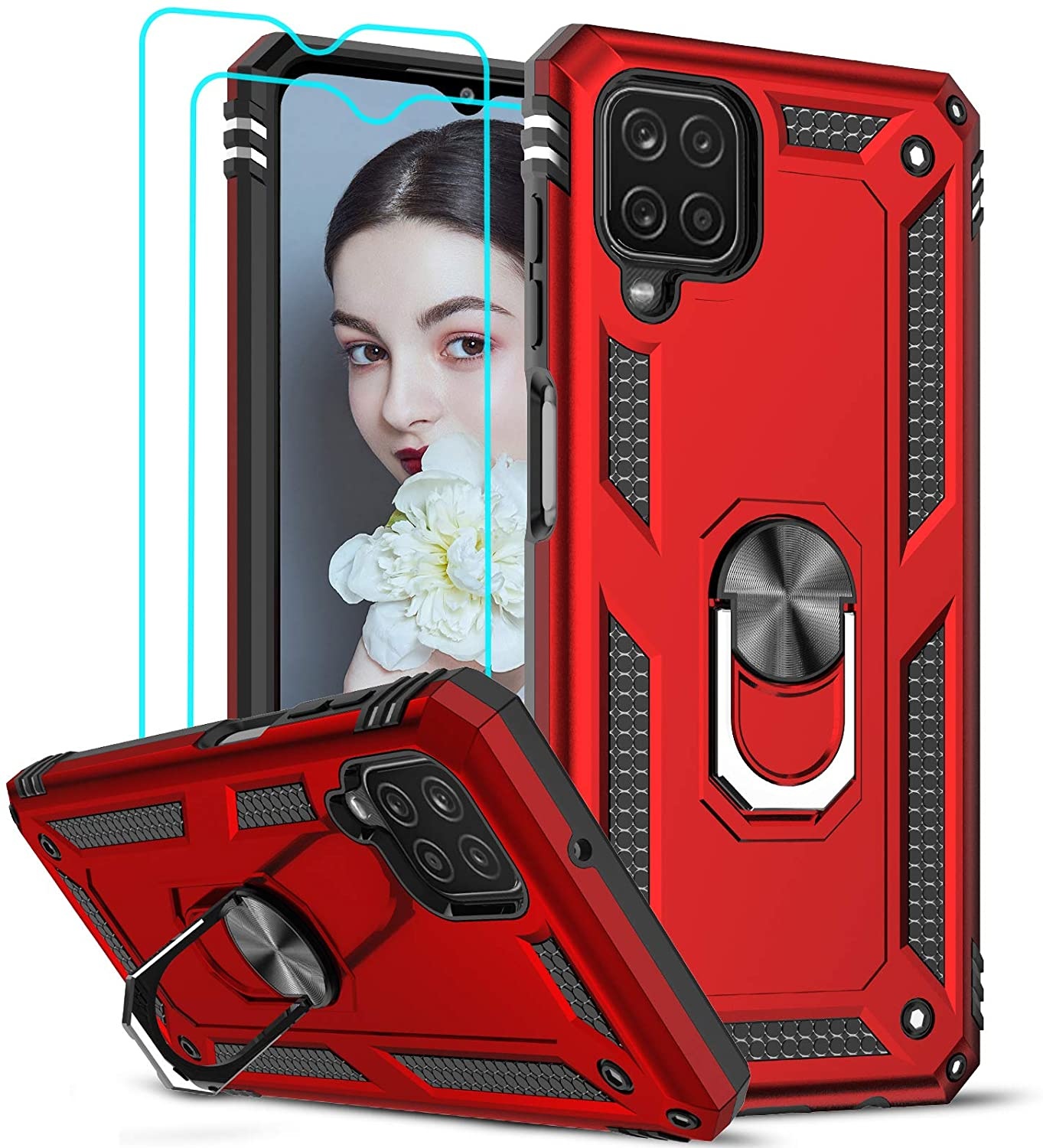 Hoesje Geschikt Voor Samsung Galaxy A12 5G Hoesje kickstand Armor met Ring houder TPU backcover hoesje - Rood met Galaxy A12 screenprotector 2 pack