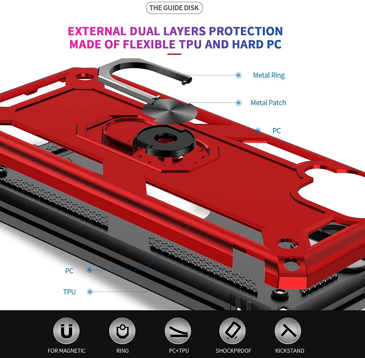 Samsung Galaxy A12 5G Armor TPU Back Cover Met Metalen Ring houder & standaard. Bescherming tegen stof, stoot & vuil en makkelijk in gebruik. De ring houder kan je op verschillende manieren gebruiken, bijvoorbeeld als een handige standaard om je favoriete filmpjes en video's te bekijken.