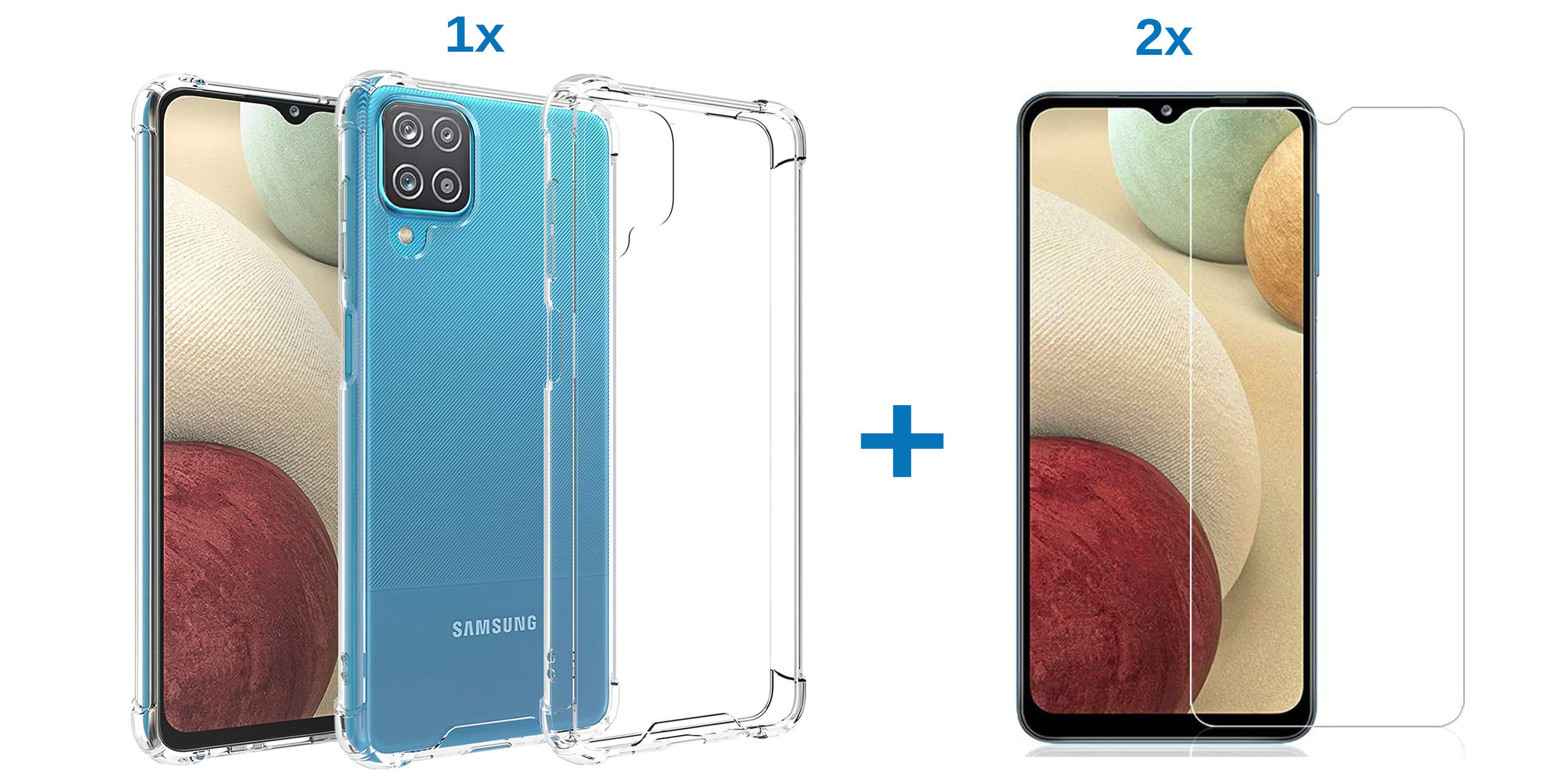 Hoesje Geschikt Voor Samsung Galaxy a12 hoesje shockproof case - transparant TPU - Hoesje Geschikt Voor Samsung Galaxy a12 hoesje - 2x Hoesje Geschikt Voor Samsung Galaxy a12 screenprotector screen protector