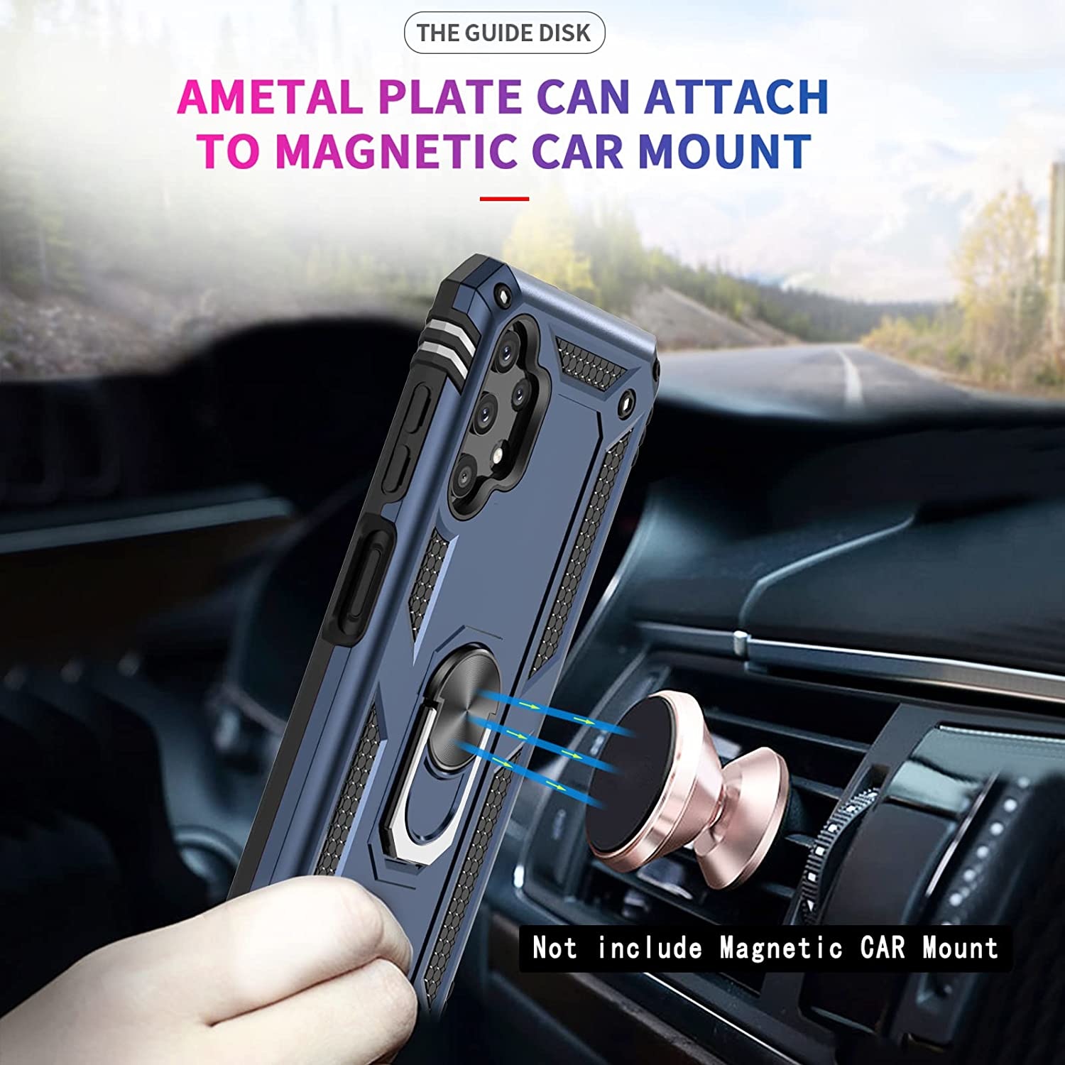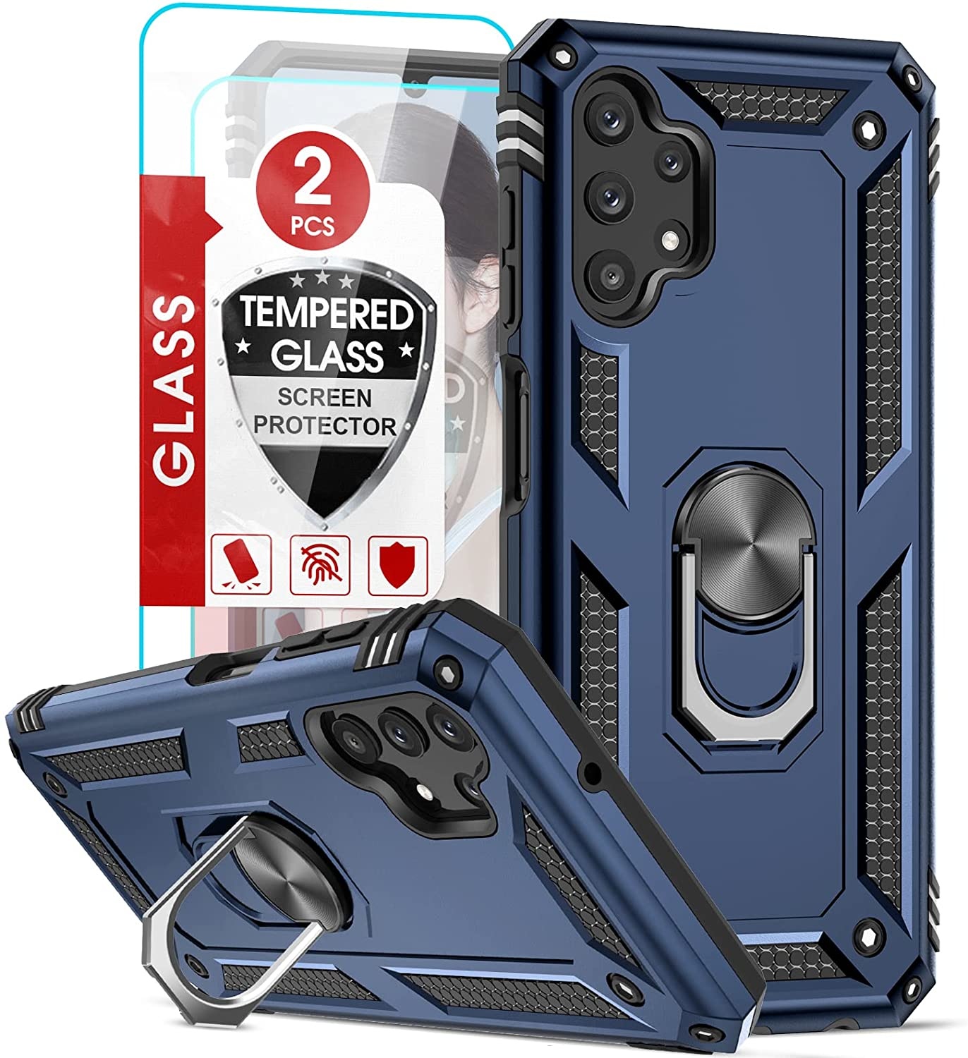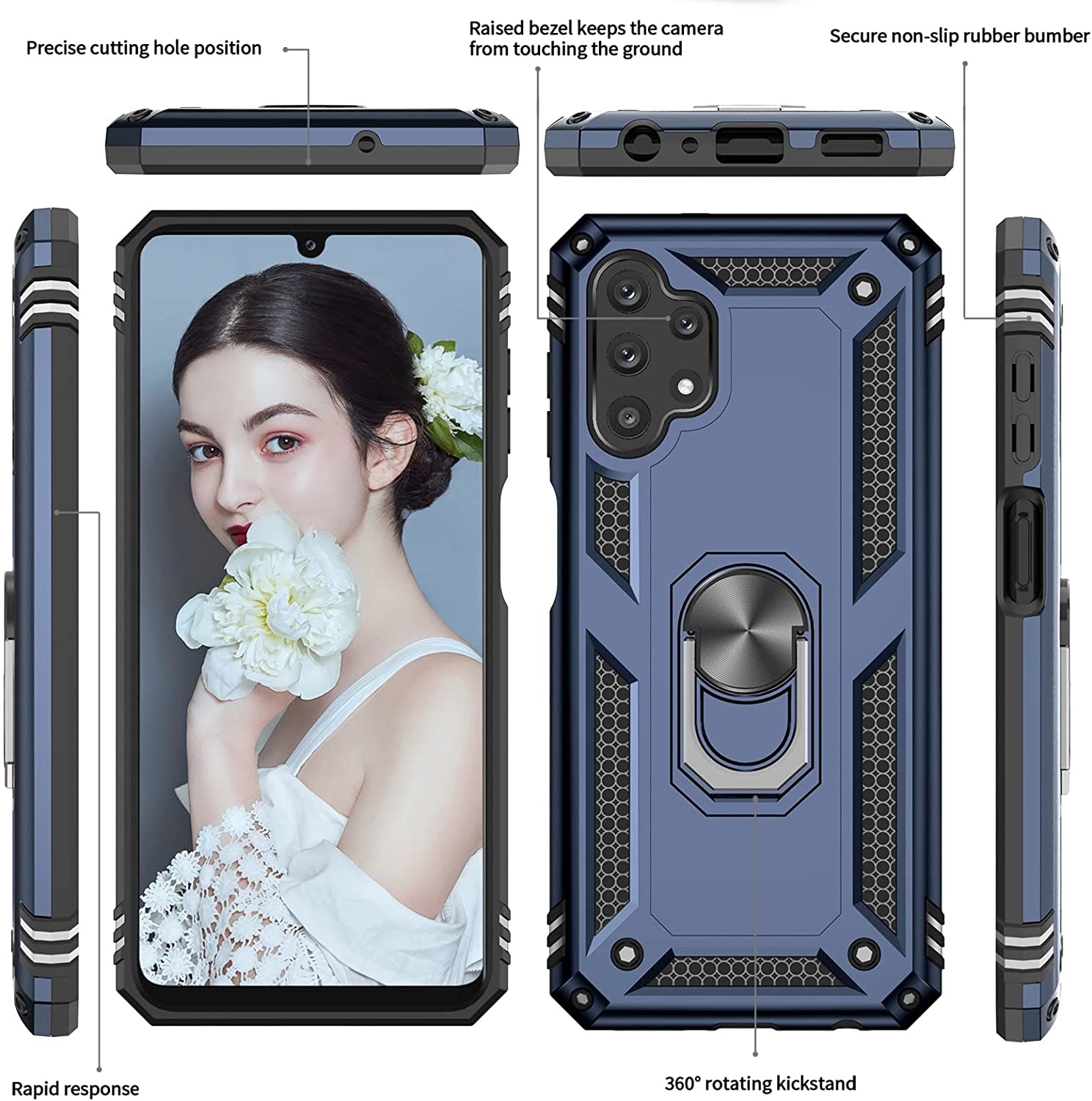 Samsung A13 4G Hoesje Hybrid Armor case Blauw - Samsung Galaxy A13 4G hoesje kickstand Ring houder TPU backcover Anti-Shock hoesje - met screenprotector Galaxy A13 4G - 2 pack