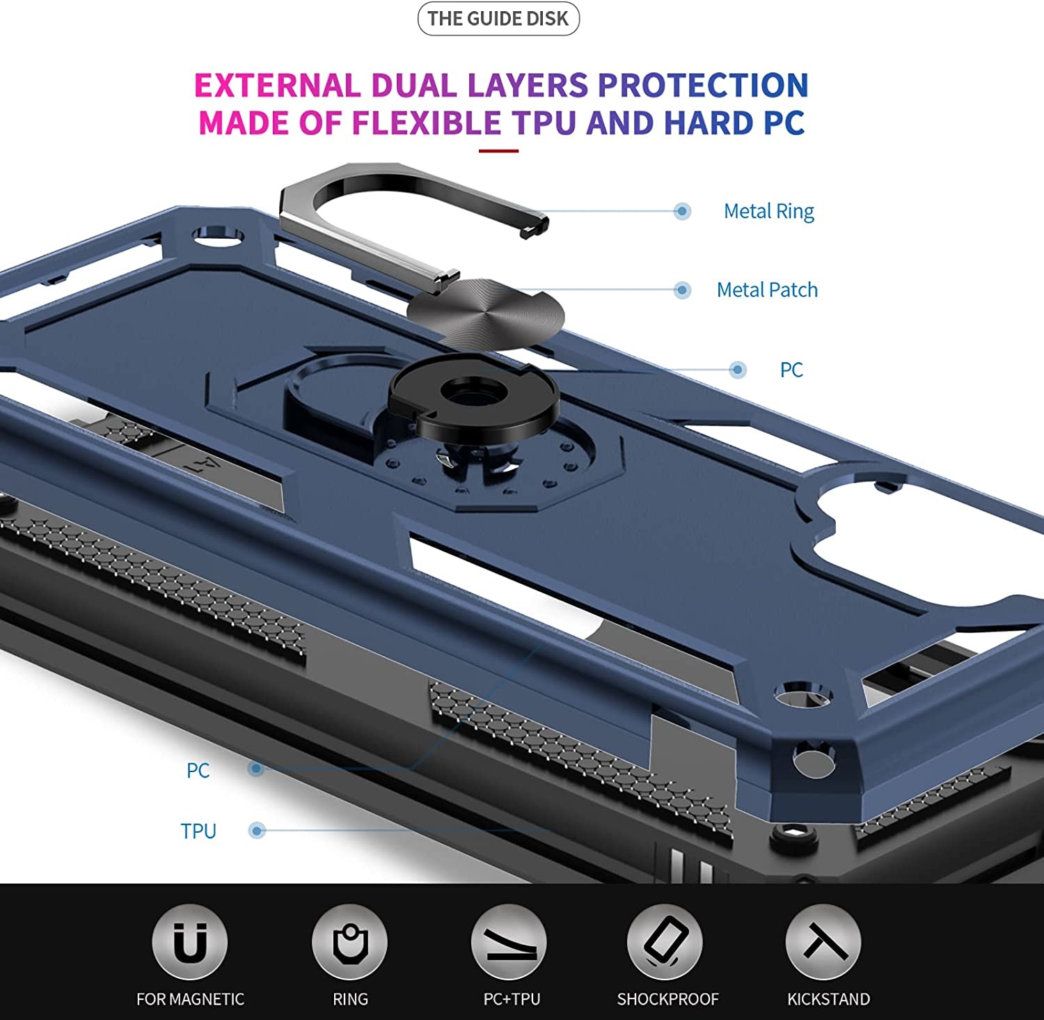 Samsung Galaxy A13 4G Armor TPU Back Cover Met Metalen Ring houder & standaard. Bescherming tegen stof, stoot & vuil en makkelijk in gebruik. De Samsung Galaxy A13 4G ring houder kan je op verschillende manieren gebruiken, bijvoorbeeld als een handige standaard om je favoriete filmpjes en video's te bekijken.
