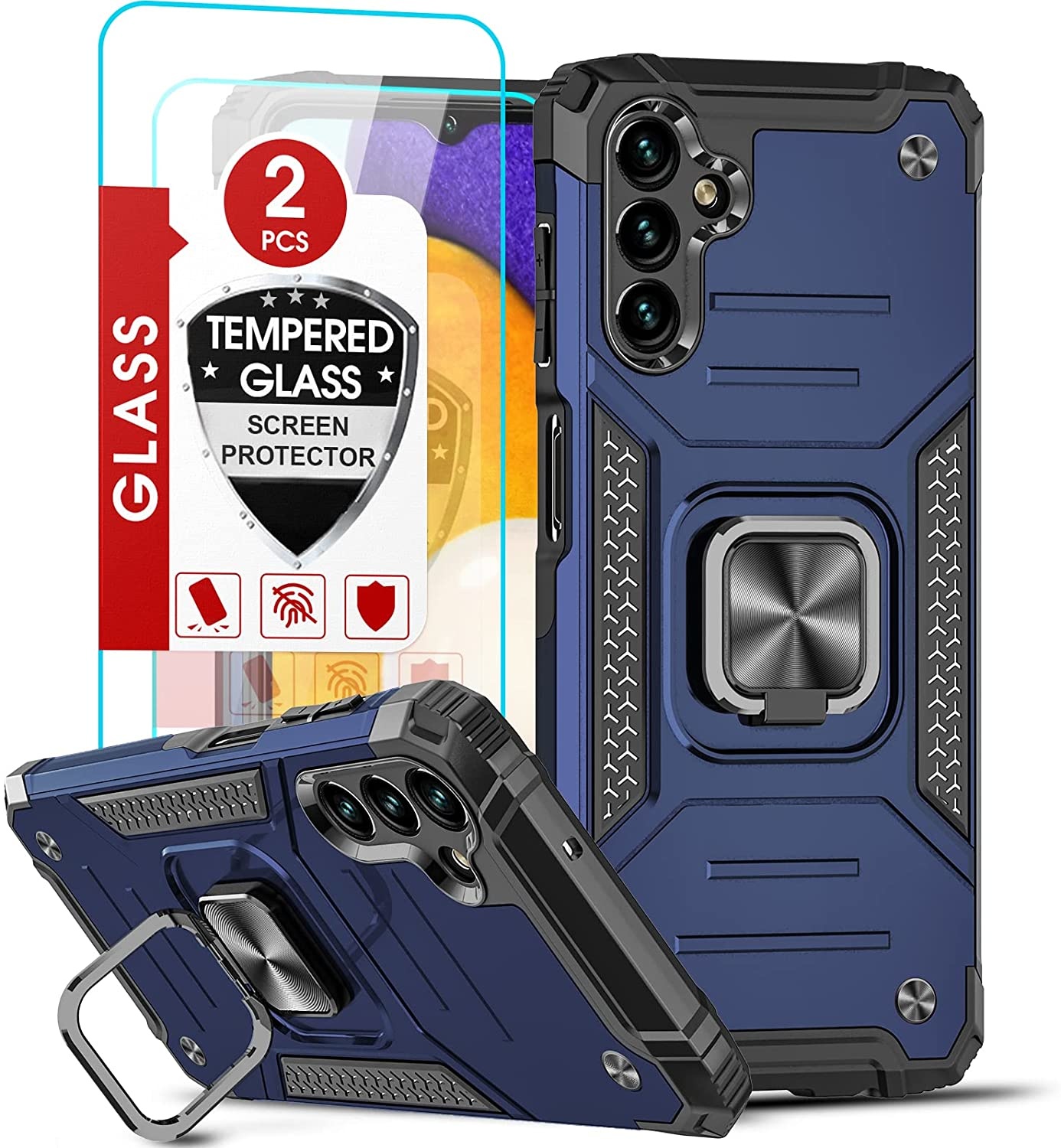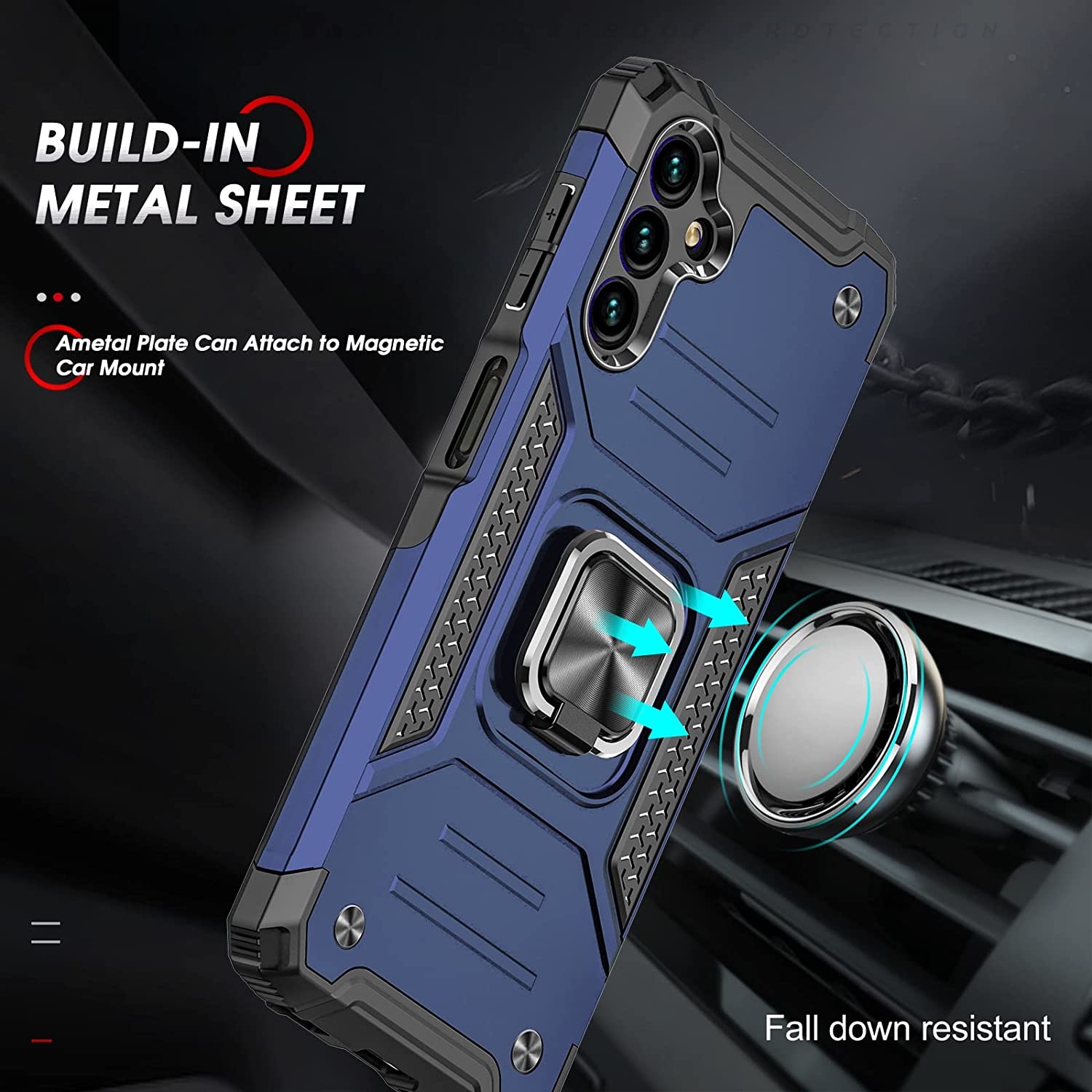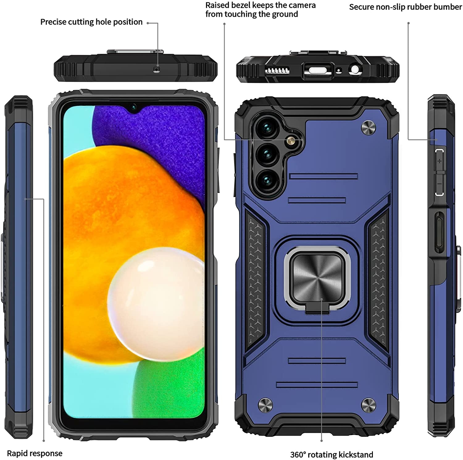 Hoesje Geschikt Voor Samsung Galaxy A13 5G / A04s Hoesje – Ring houder - Magnetisch Auto Mount – Met 2x screenprotector – gehard glas – Blauw