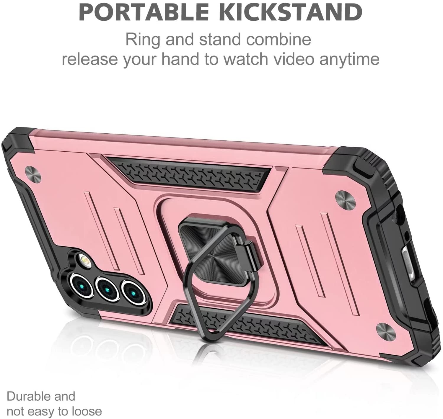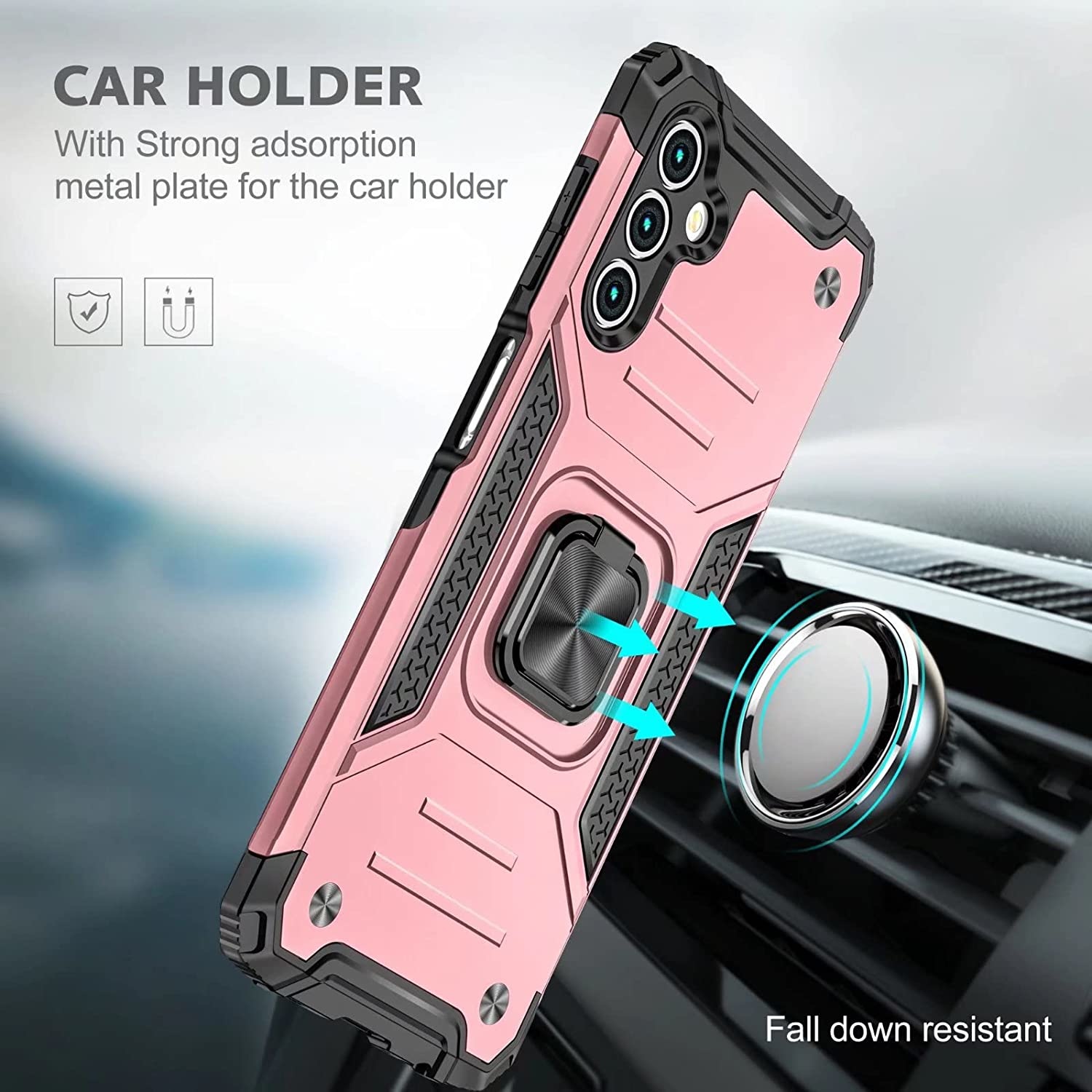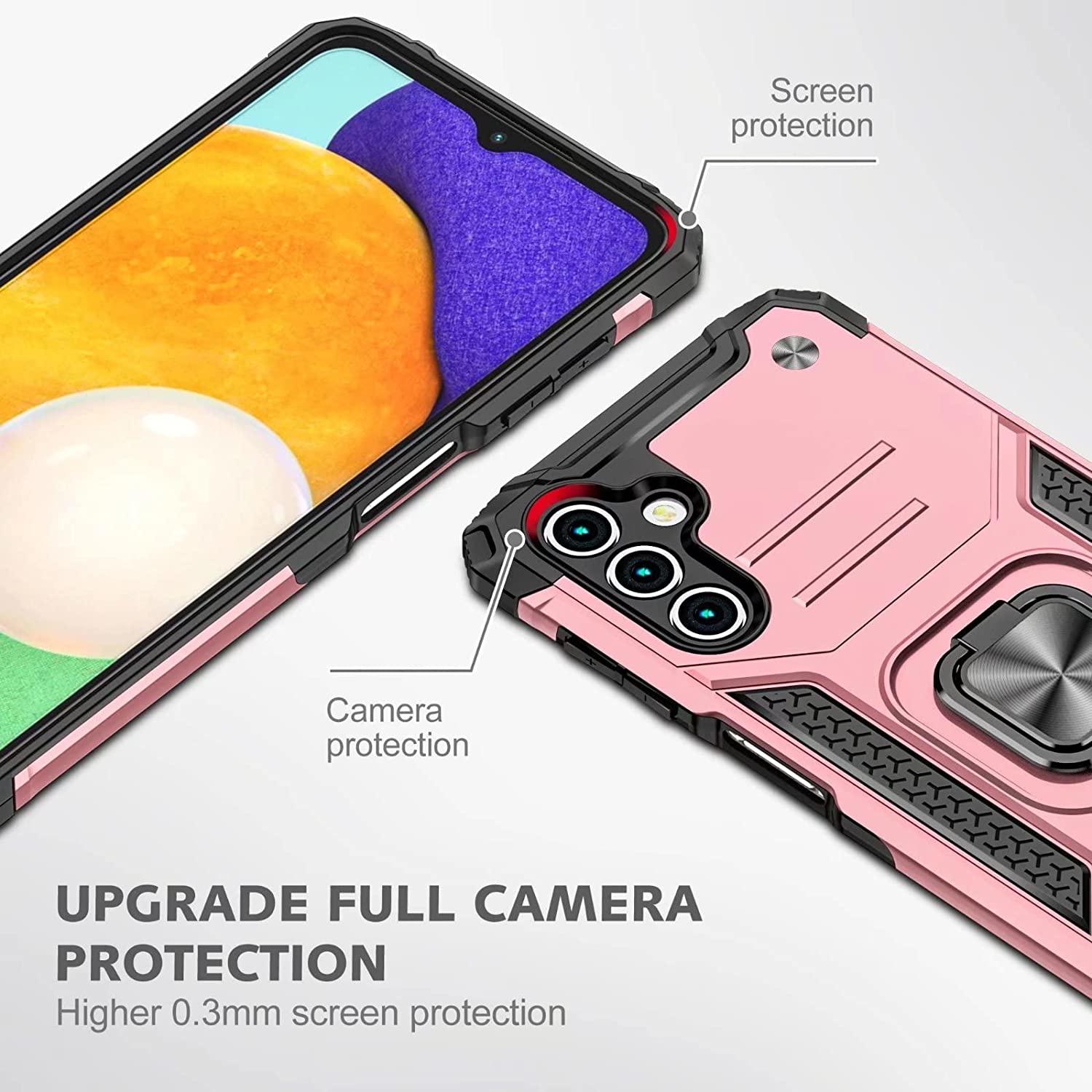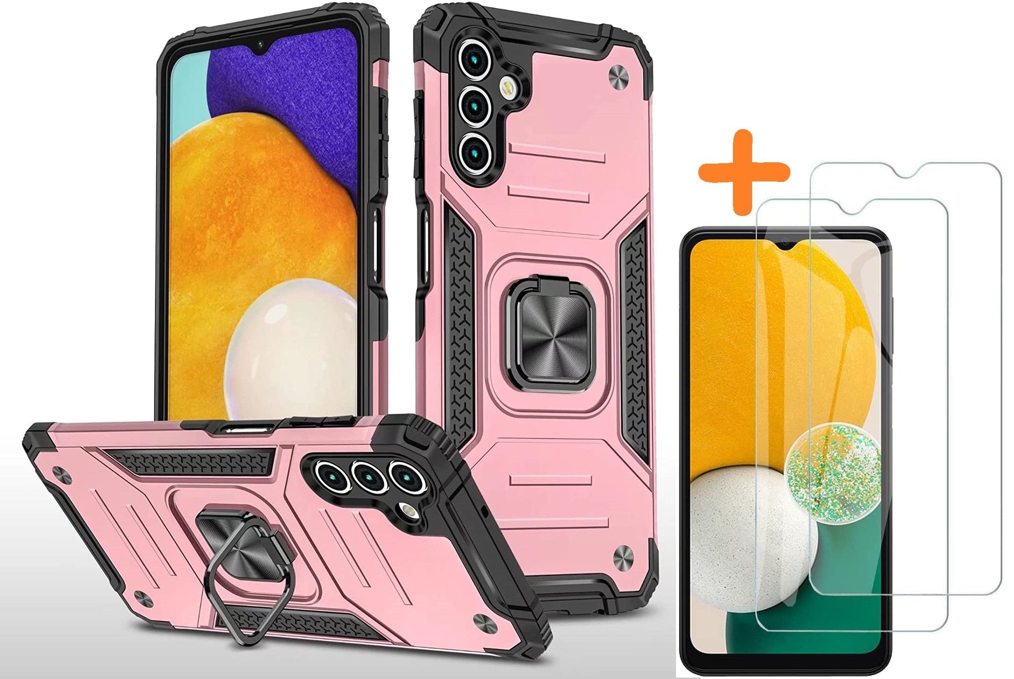 Hoesje Geschikt Voor Samsung Galaxy A13 5G / A04s Hoesje – Ring houder - Magnetisch Auto Mount – Met 2x screenprotector – gehard glas – Rosegoud