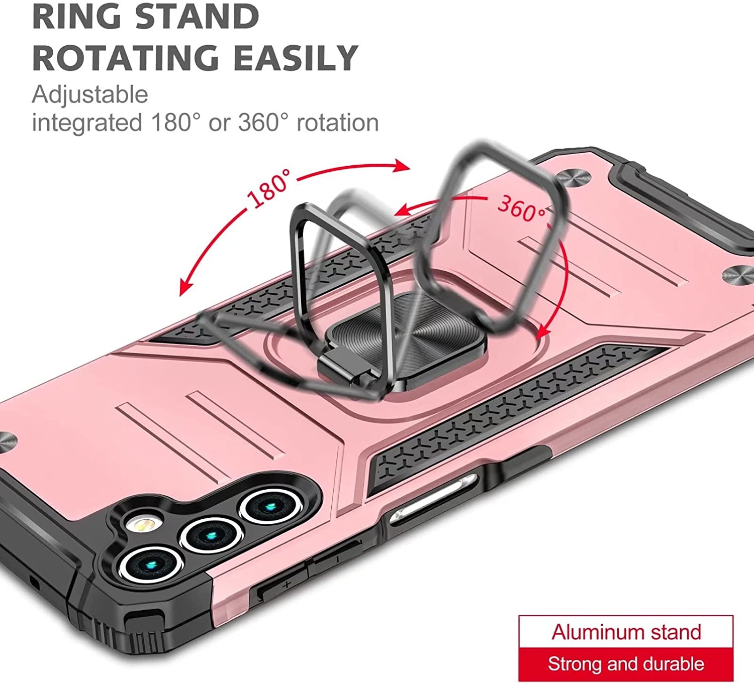 De Ntech Samsung Galaxy A13 5G / A04s metalen standaard kan 360° draaien, is gemakkelijk te draaien en stevig op de case. De ingebouwde standaard biedt u het gemak van handsfree video's en films kijken met het gewenste comfort en stabiliteit. Bovendien, ingebouwde metalen magnetische plaat voor stabiele adsorptie, die direct kan worden geadsorbeerd aan de magnetische houder voor autohouder. (Niet inclusief de magnetische houder voor autohouder).