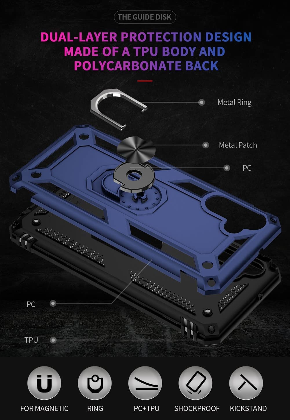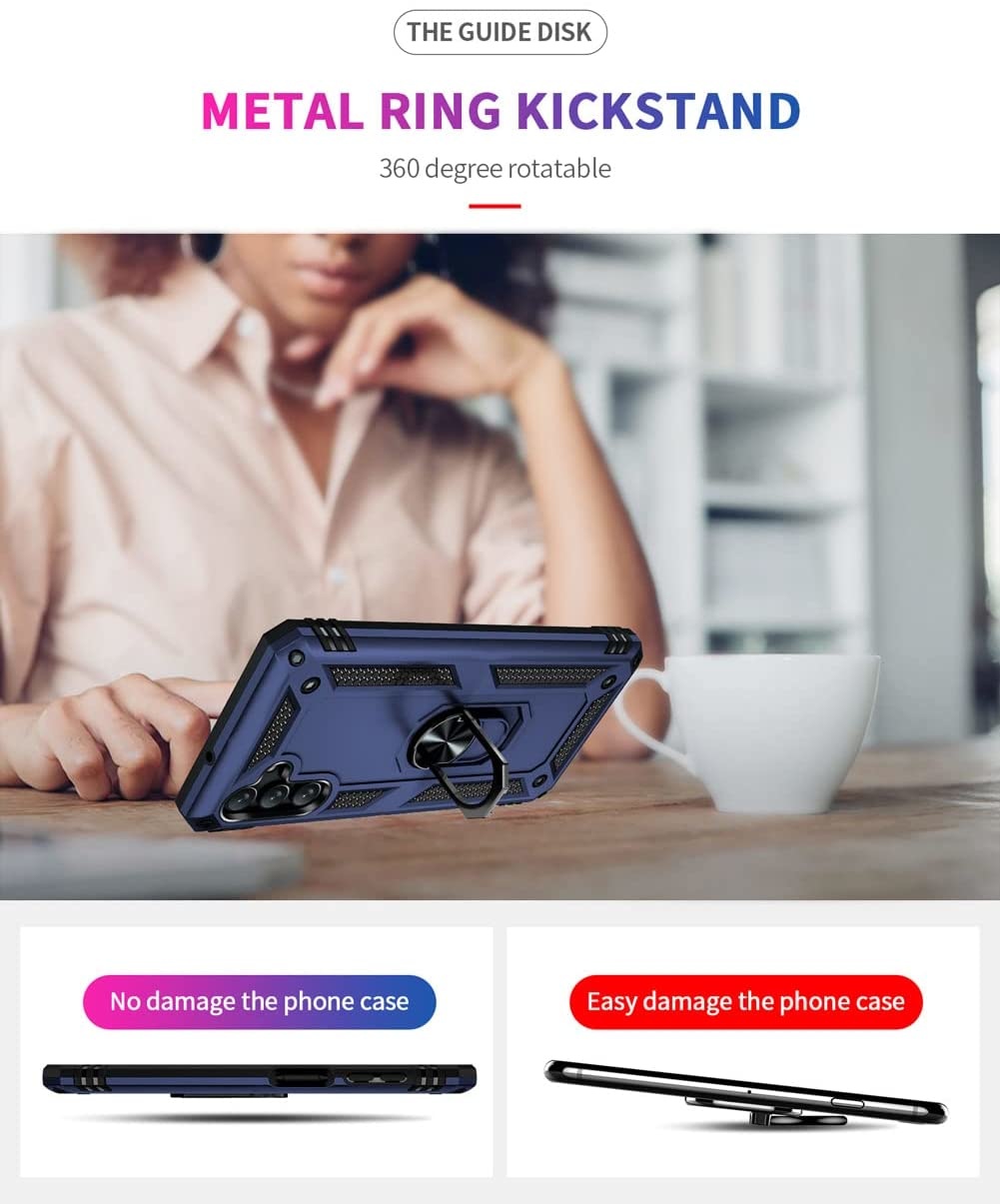 Samsung Galaxy A13 5G / A04s Armor TPU Back Cover Met Metalen Ring houder & standaard. Bescherming tegen stof, stoot & vuil en makkelijk in gebruik. De Samsung Galaxy A13 5G / A04s ring houder kan je op verschillende manieren gebruiken, bijvoorbeeld als een handige standaard om je favoriete filmpjes en video's te bekijken.