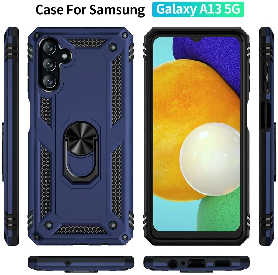 Hoesje Geschikt Voor Samsung Galaxy A13 5G / A04s Hoesje met Ring Houder – TPU backcover – Met 2x screenprotector gehard glas – Blauw