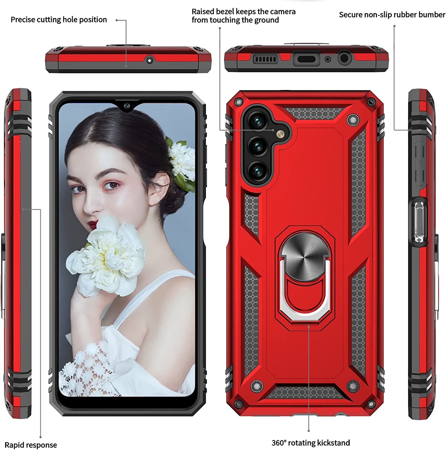 Samsung Galaxy A13 5G / A04s Armor TPU Back Cover Met Metalen Ring houder & standaard. Bescherming tegen stof, stoot & vuil en makkelijk in gebruik. De Samsung Galaxy A13 5G / A04s ring houder kan je op verschillende manieren gebruiken, bijvoorbeeld als een handige standaard om je favoriete filmpjes en video's te bekijken.