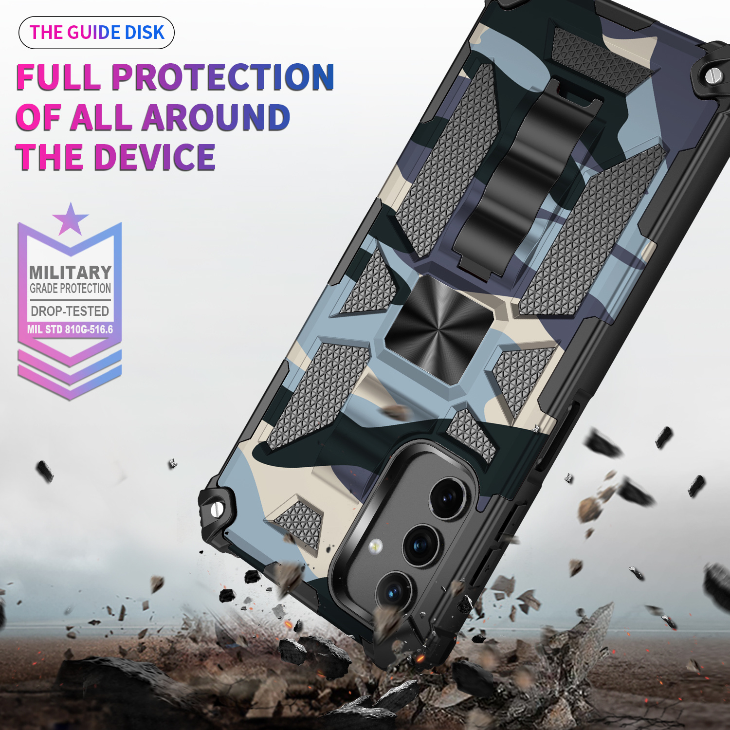 Samsung A13 hoesje backcover armor case met ring houder Camouflage Marine Blauw